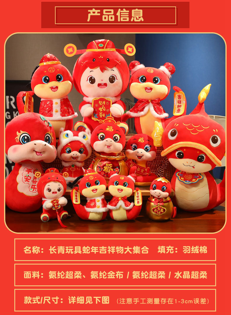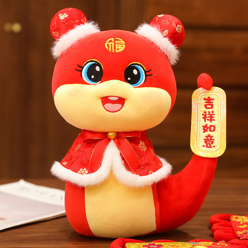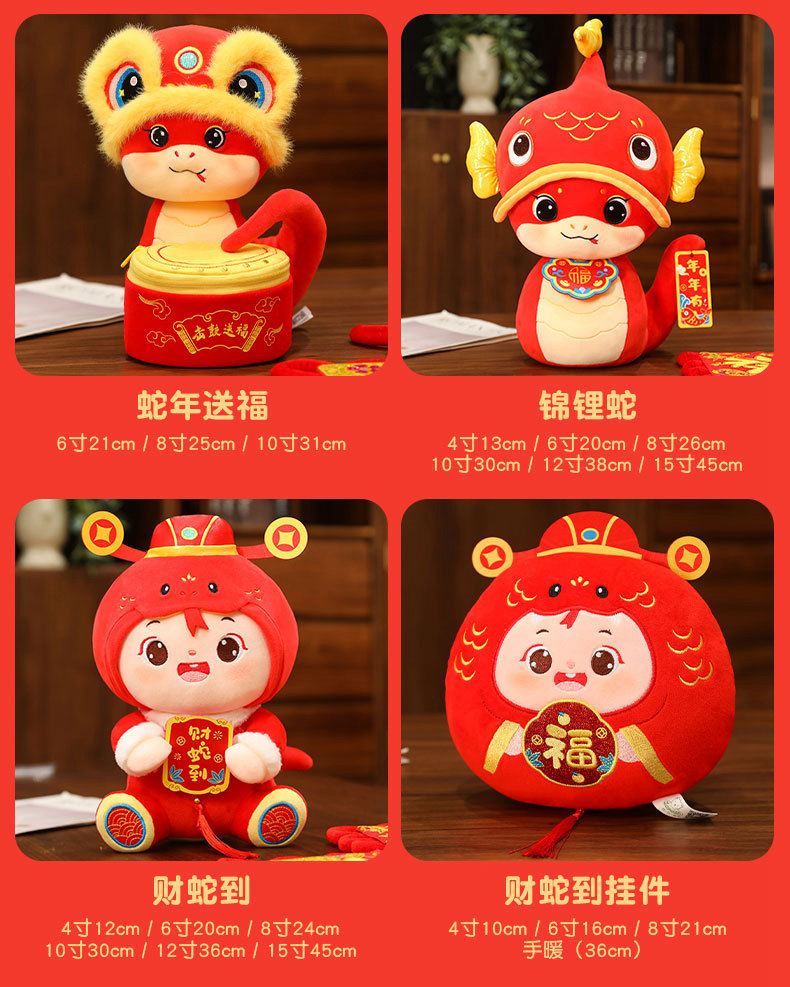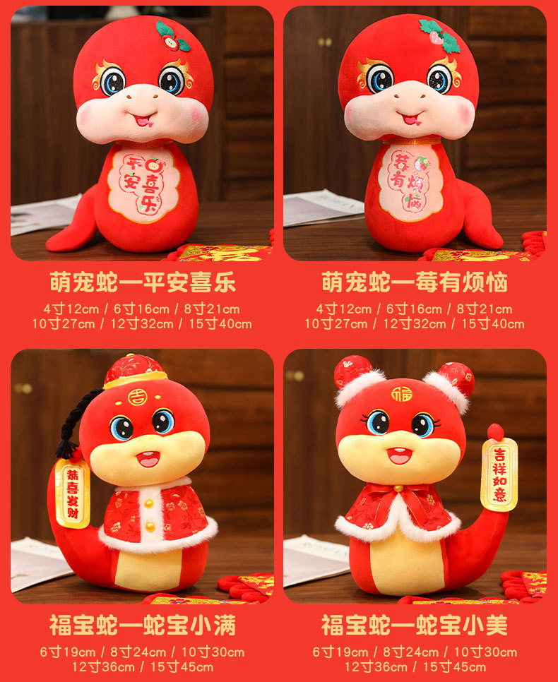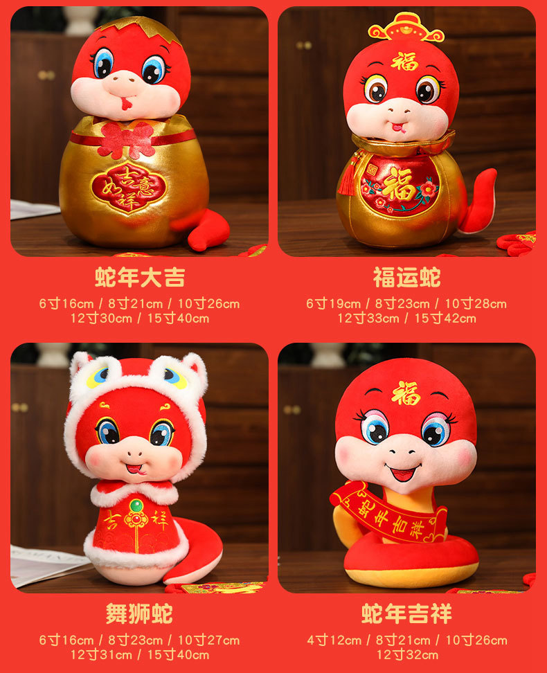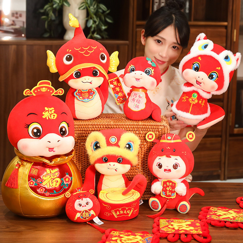 2025红色生肖蛇毛绒玩具蛇年吉祥物挂件挂饰公司年会活动礼品玩偶