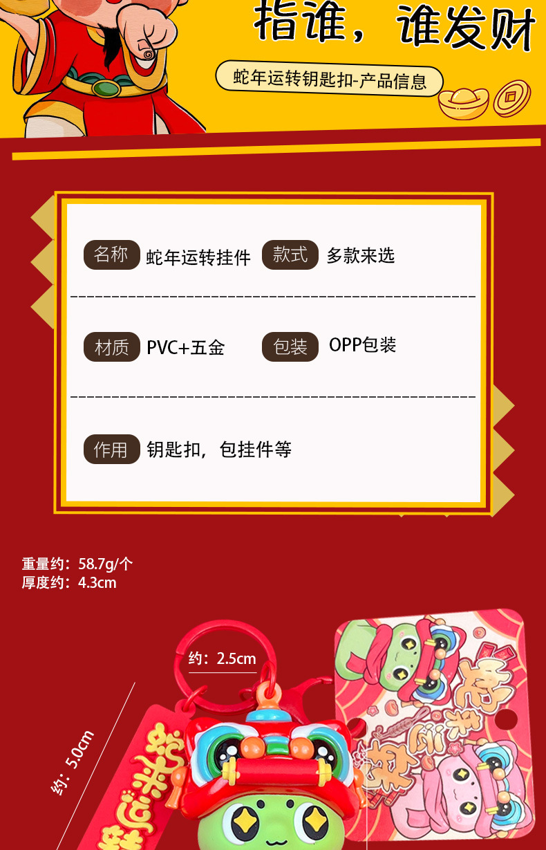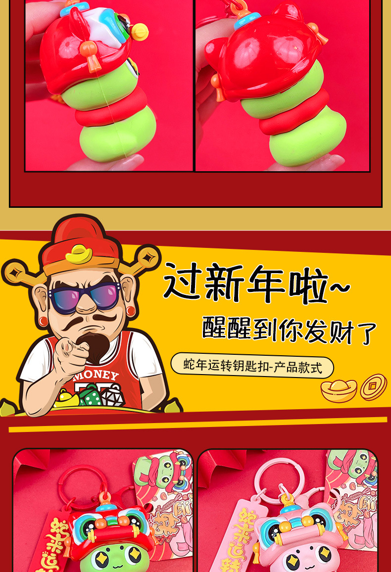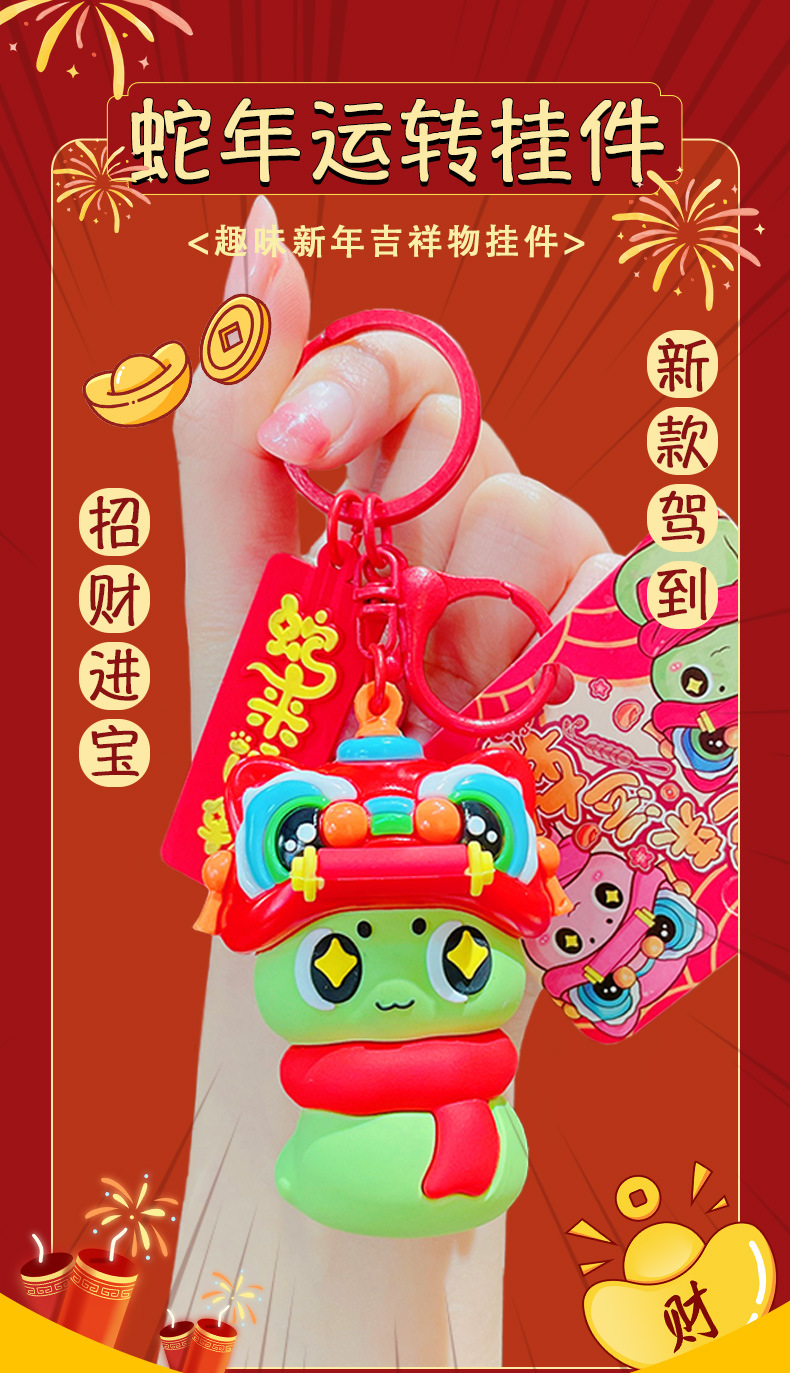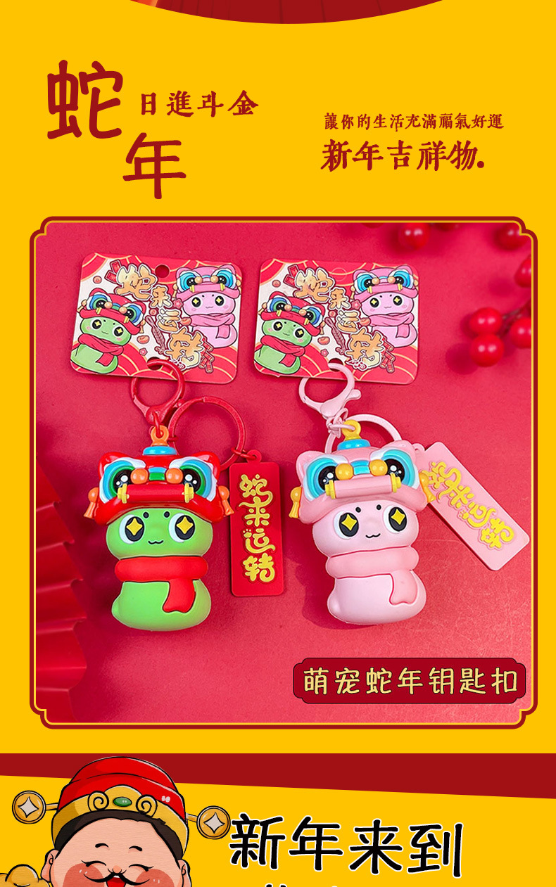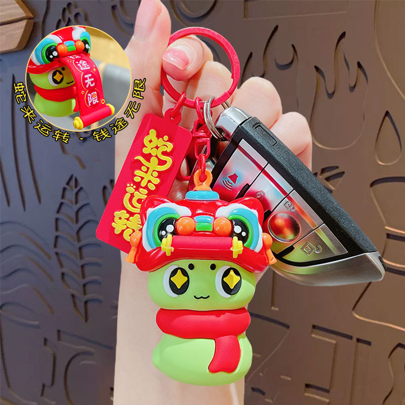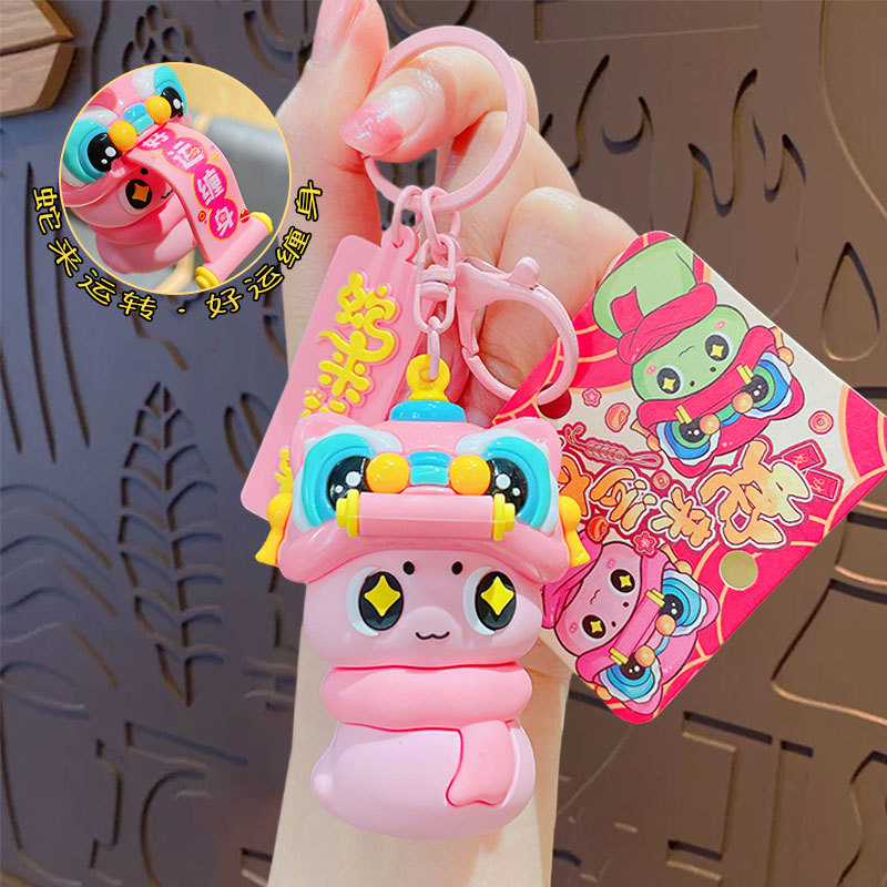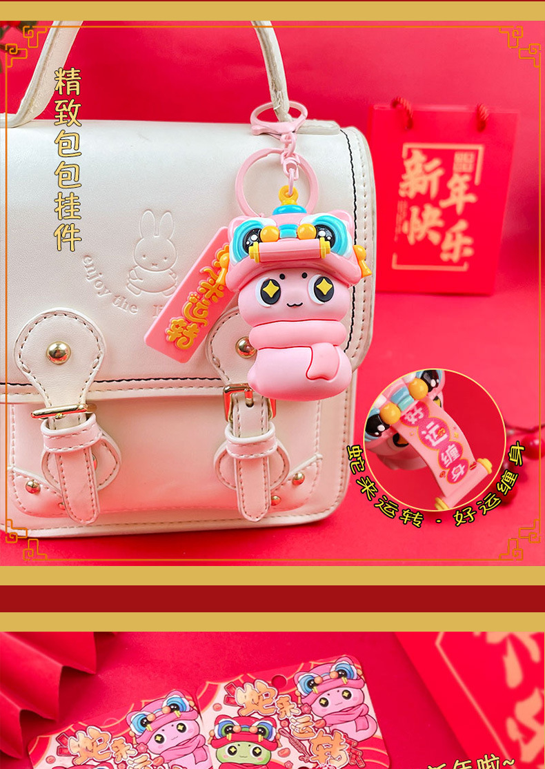 卡通国潮新年蛇来运转公仔钥匙扣书包挂件情侣包包挂饰蛇年小礼品