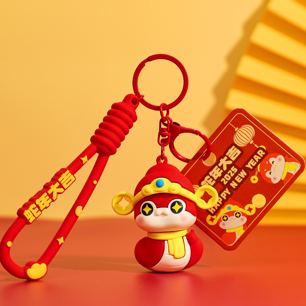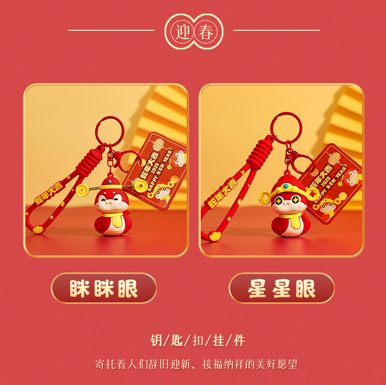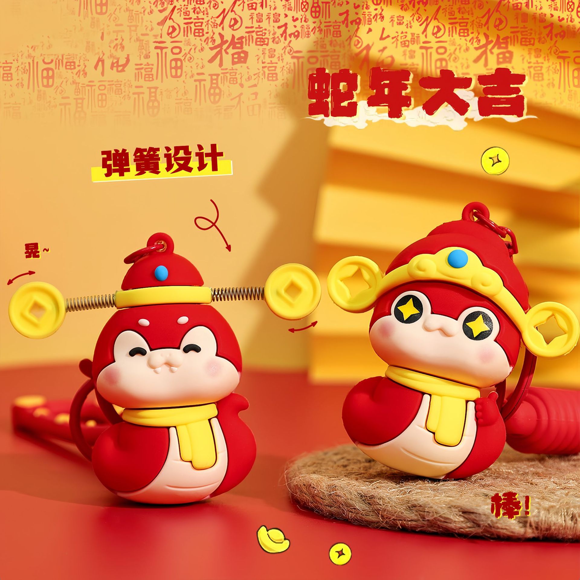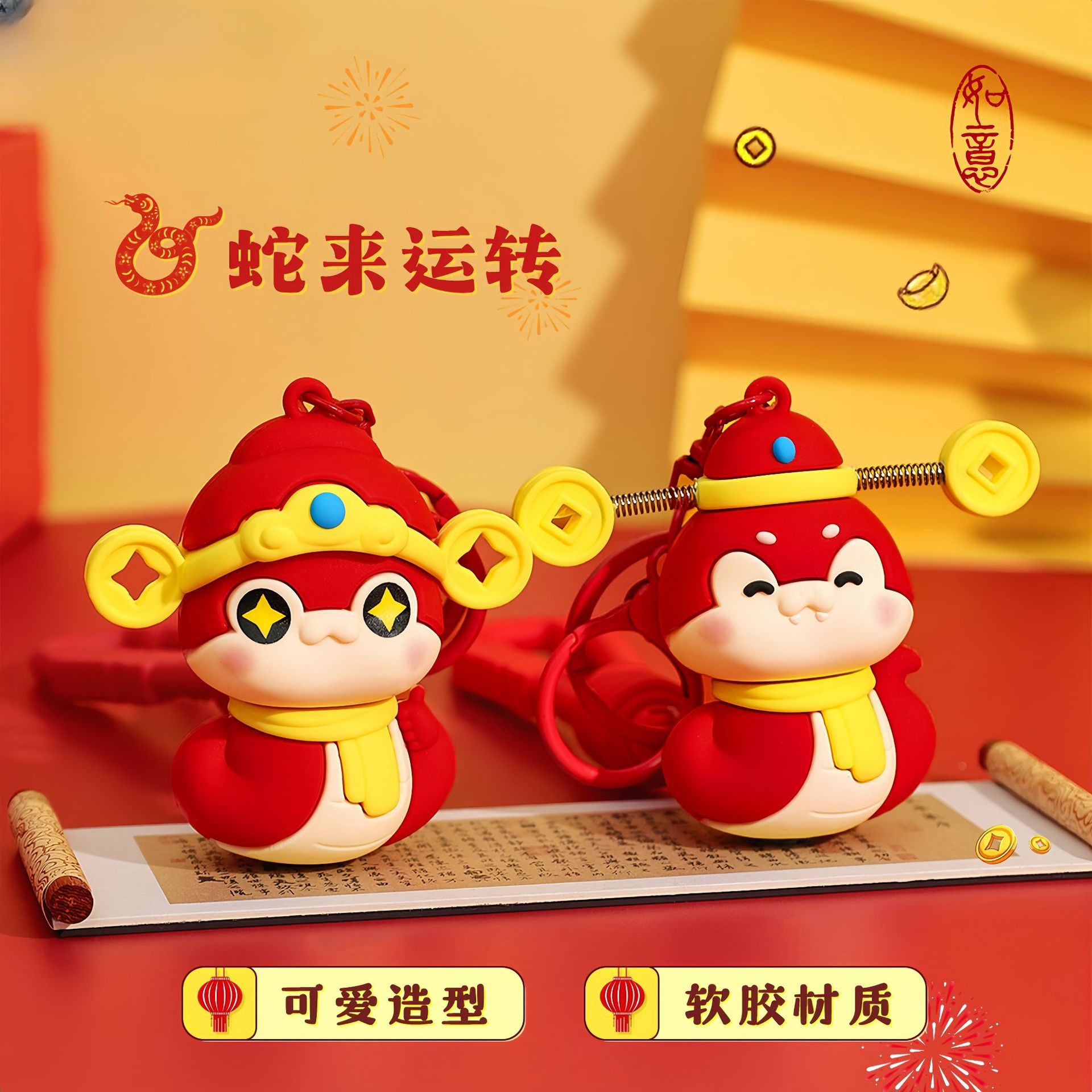 原创正版蛇年卡通钥匙扣可爱发财蛇情侣包包挂件新年娃娃机小礼品