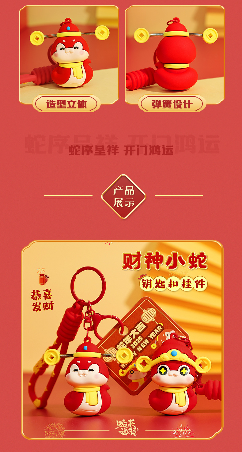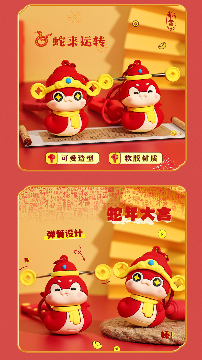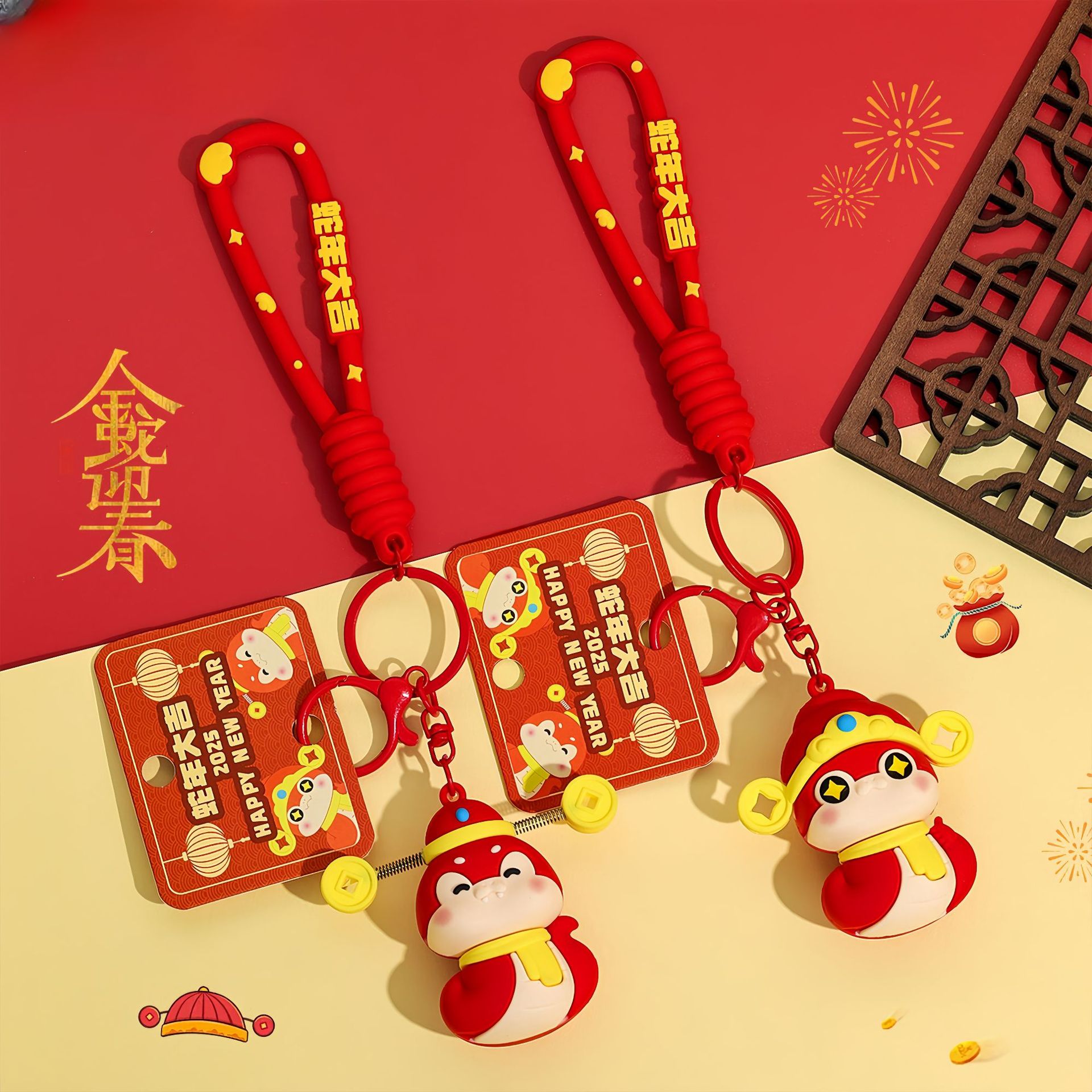 原创正版蛇年卡通钥匙扣可爱发财蛇情侣包包挂件新年娃娃机小礼品
