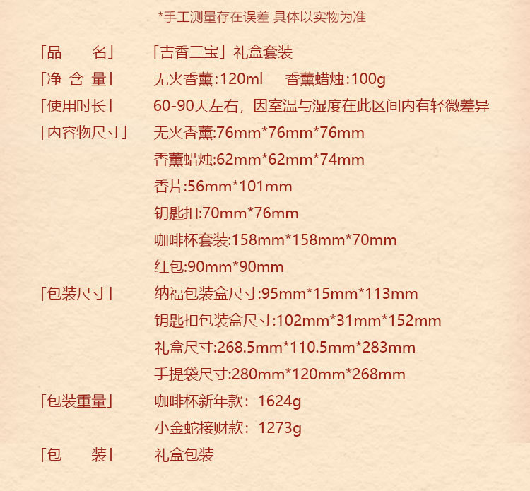 | jixiang sanbao light luxury (fanlin cedar and elegant white tea)(吉香三宝轻奢款(梵林雪松与雅韵白茶)) | USD $10.17 | 3000 set available |