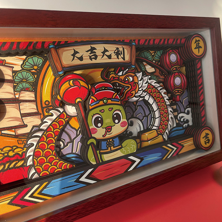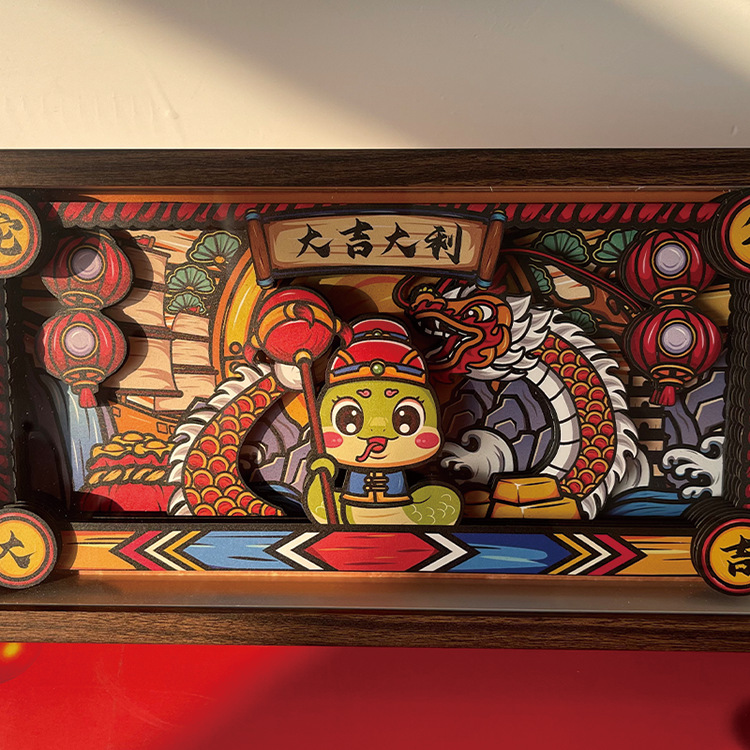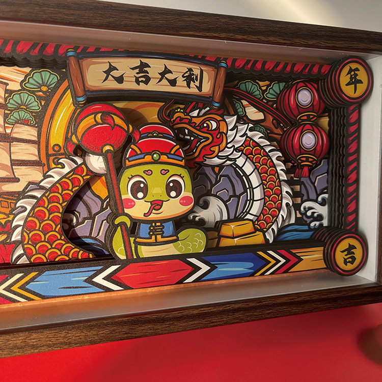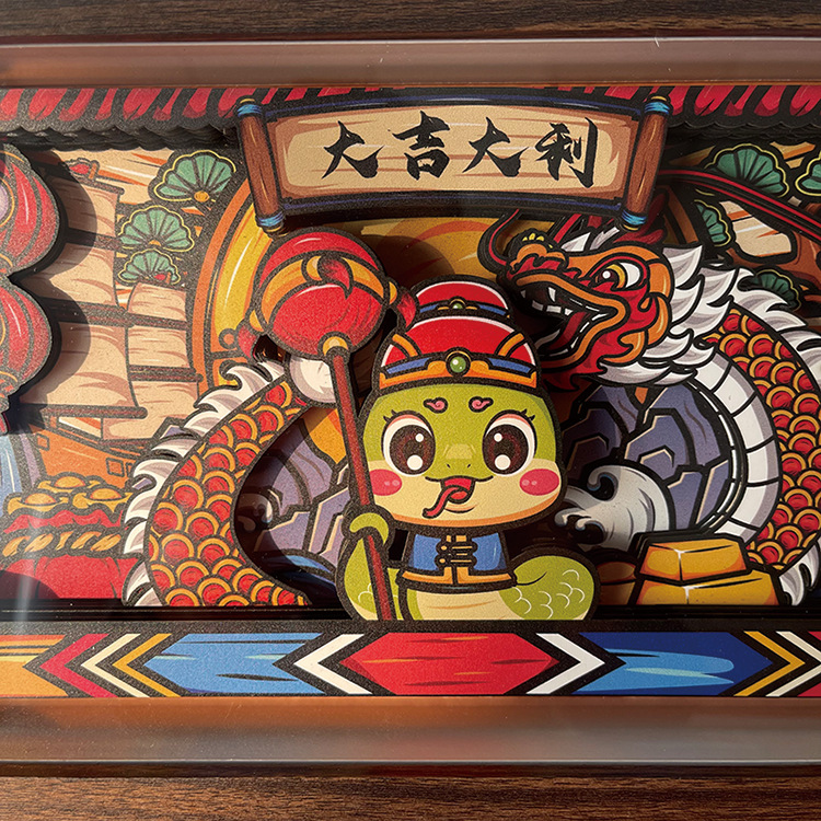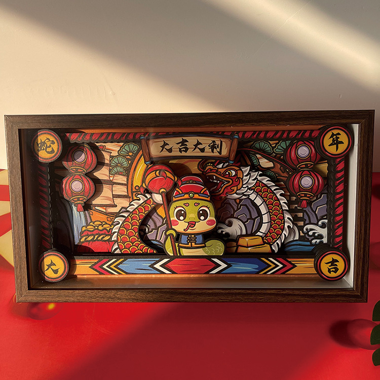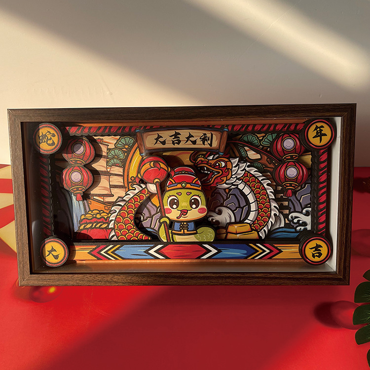 新年国风相框摆台装饰蛇年大吉立体相框摆件桌面装扮展示框