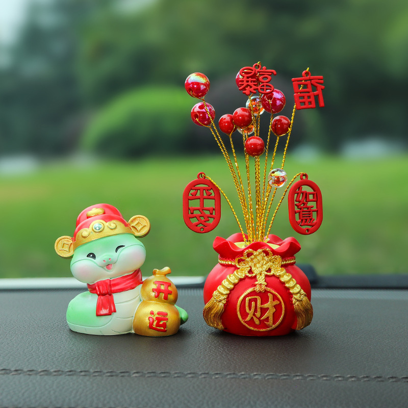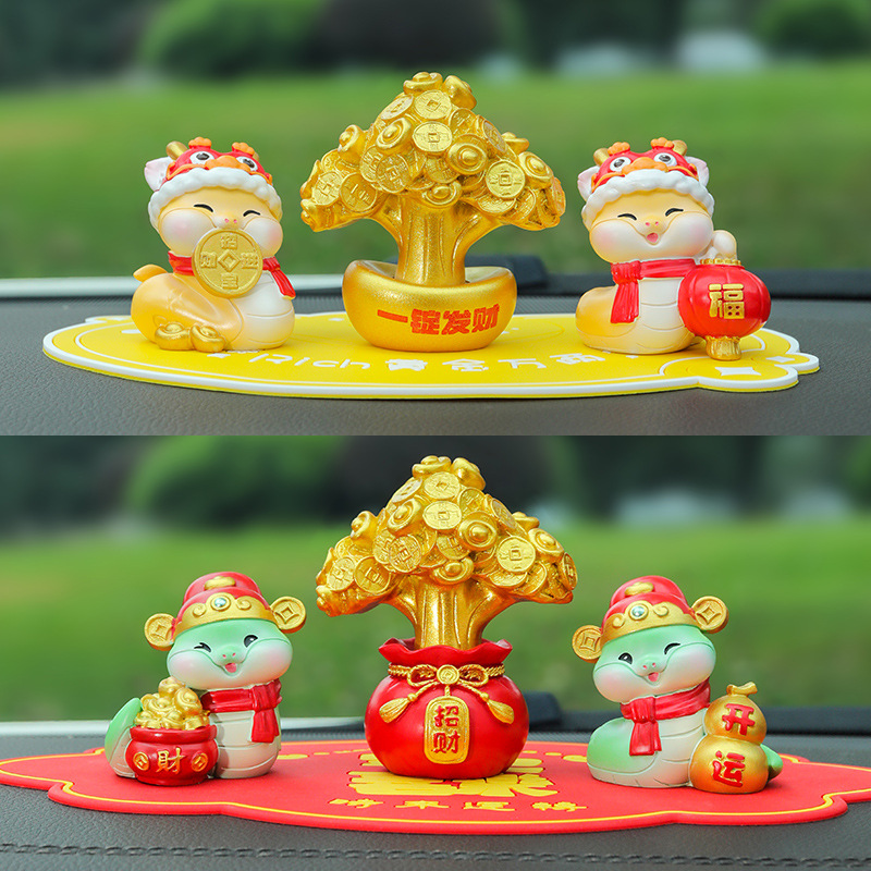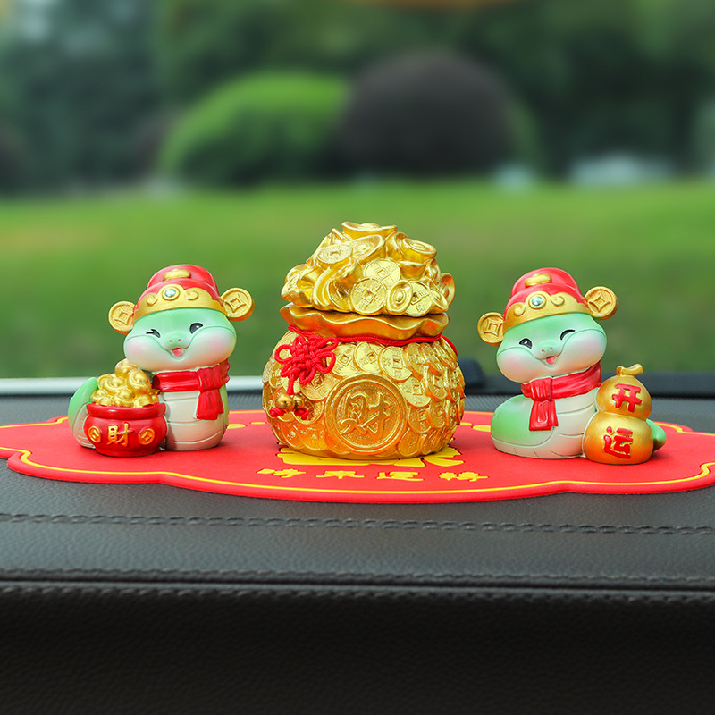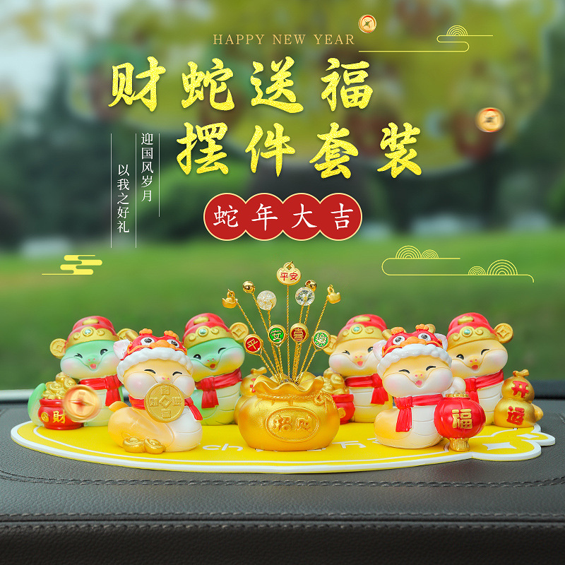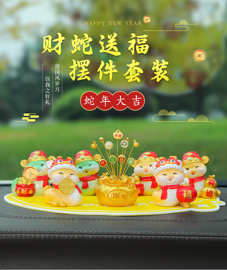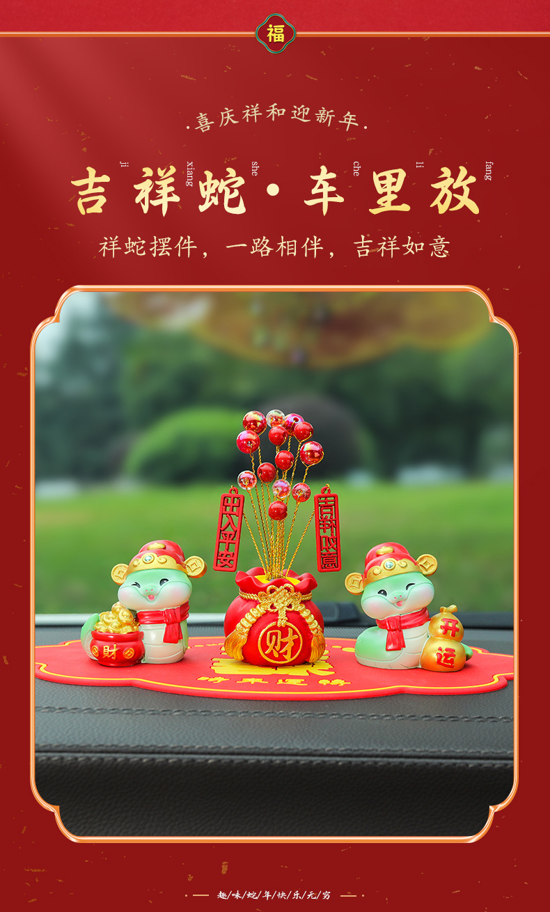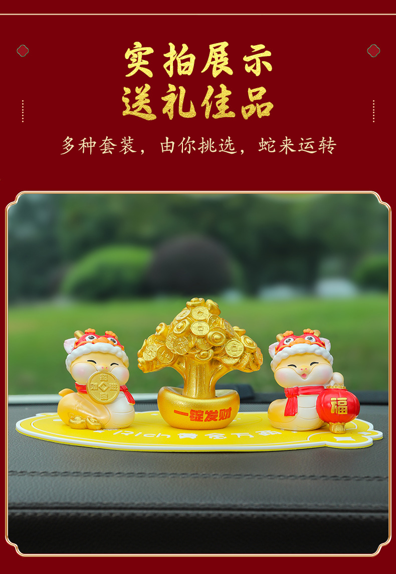 财蛇送福新年汽车摆件创意车载中控台装饰汽车用品生肖蛇年礼品