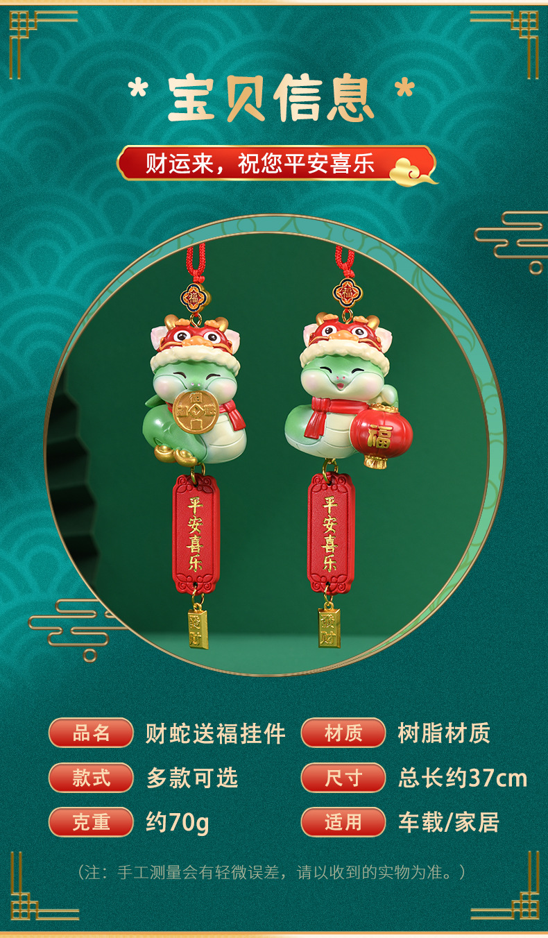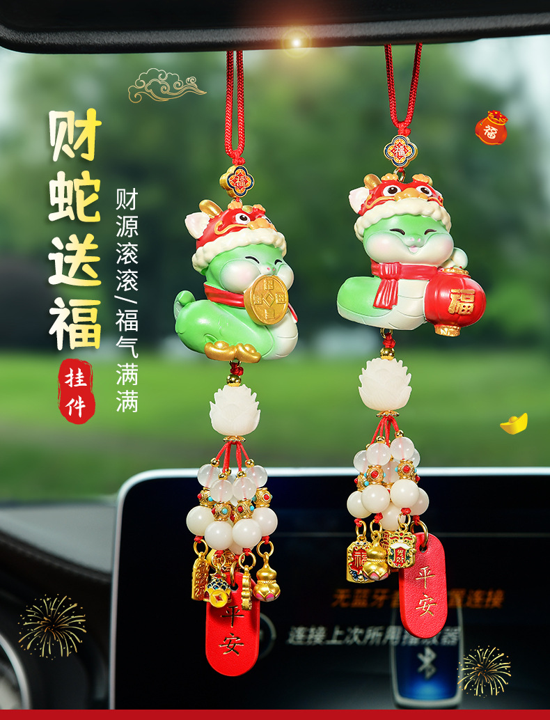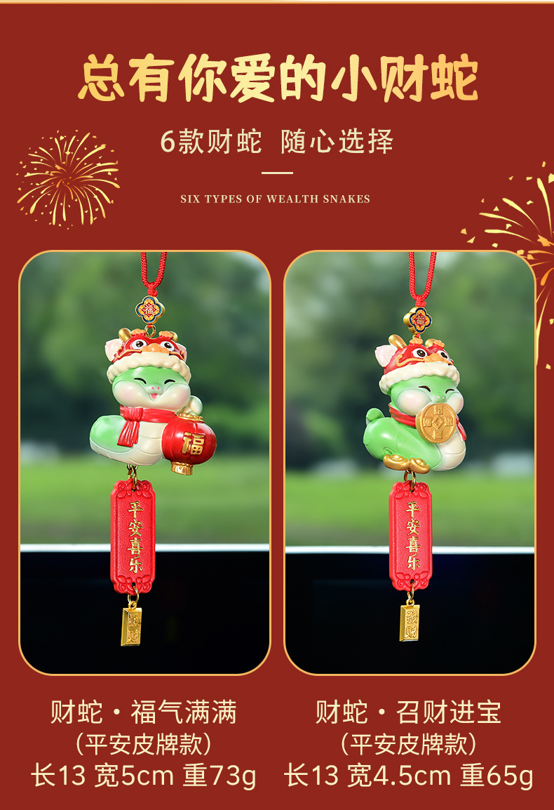蛇年财蛇送福吉祥物汽车挂件车内车载后视镜装饰新年礼物礼品
