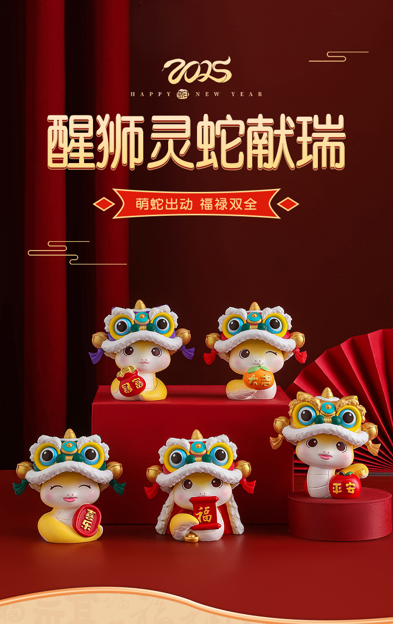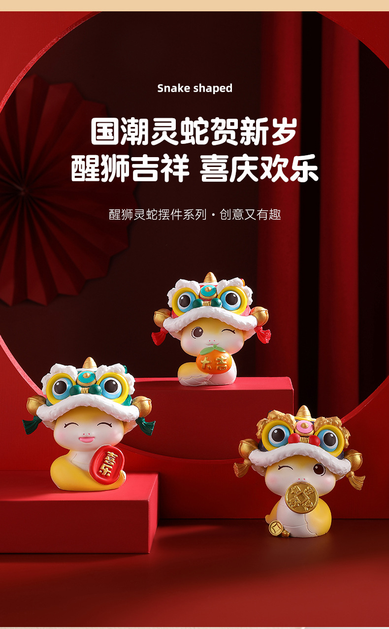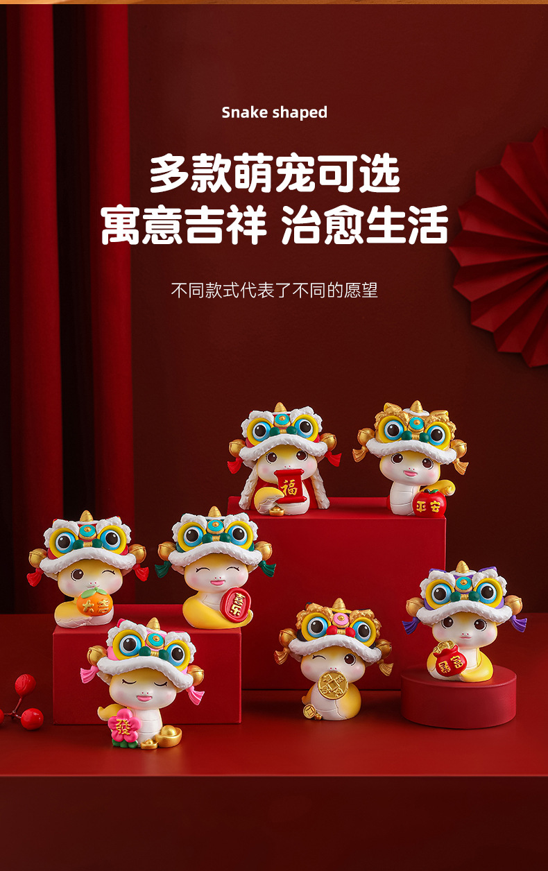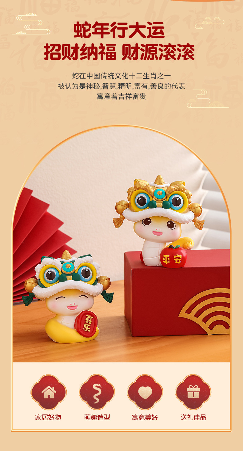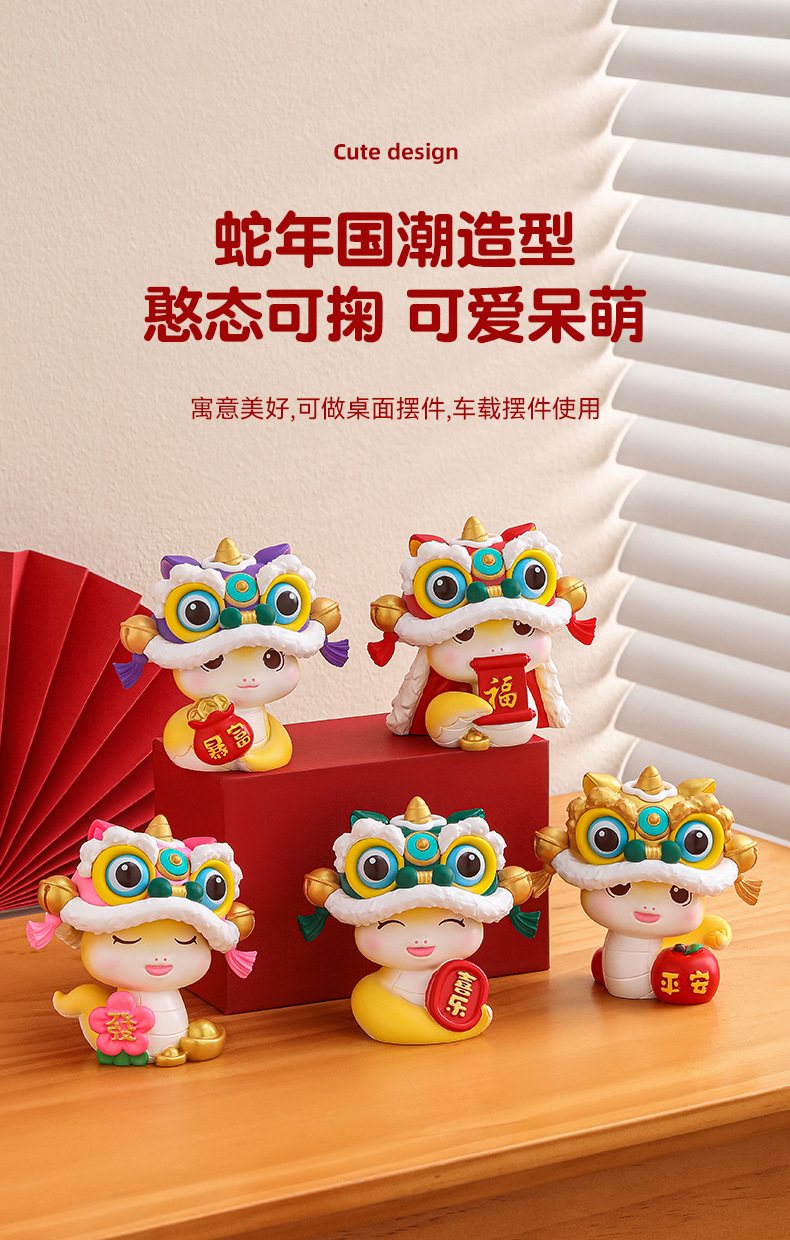 新年款创意生肖蛇年树脂公仔家居摆件汽车中控台蛋糕烘培装饰摆件