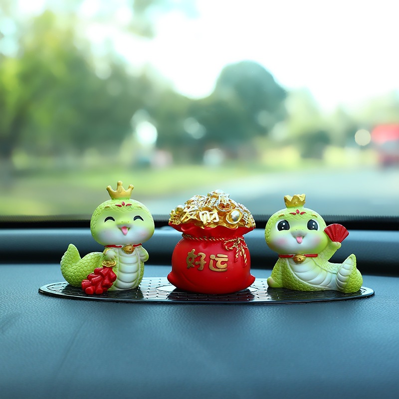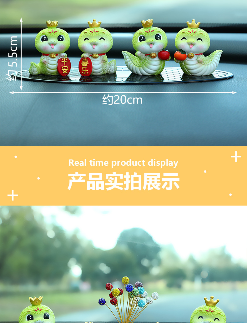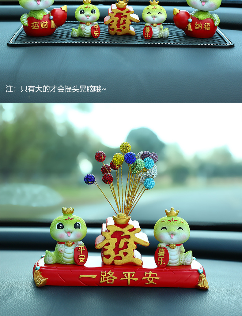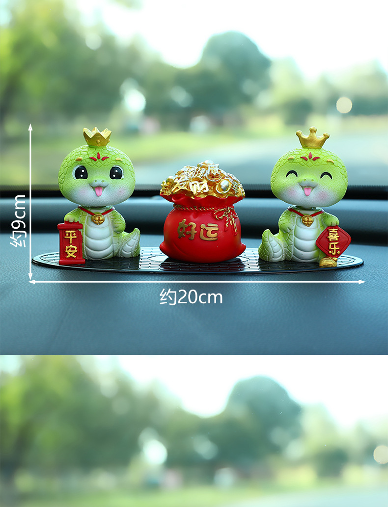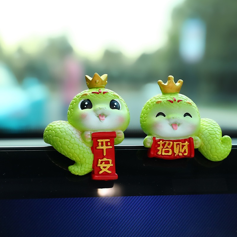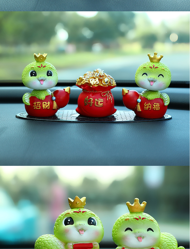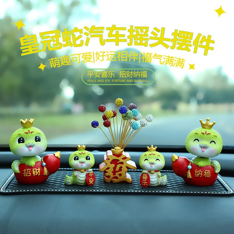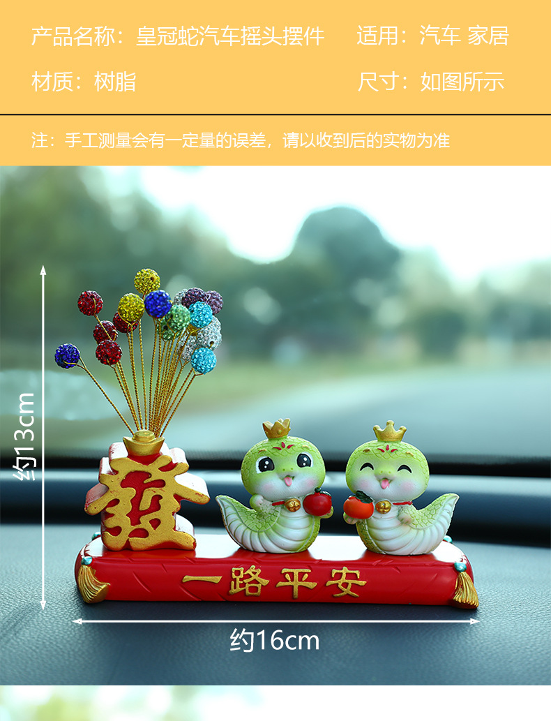 摇头皇冠小蛇汽车摆件蛇年生肖吉祥物车内卡通可爱车载树脂装饰品