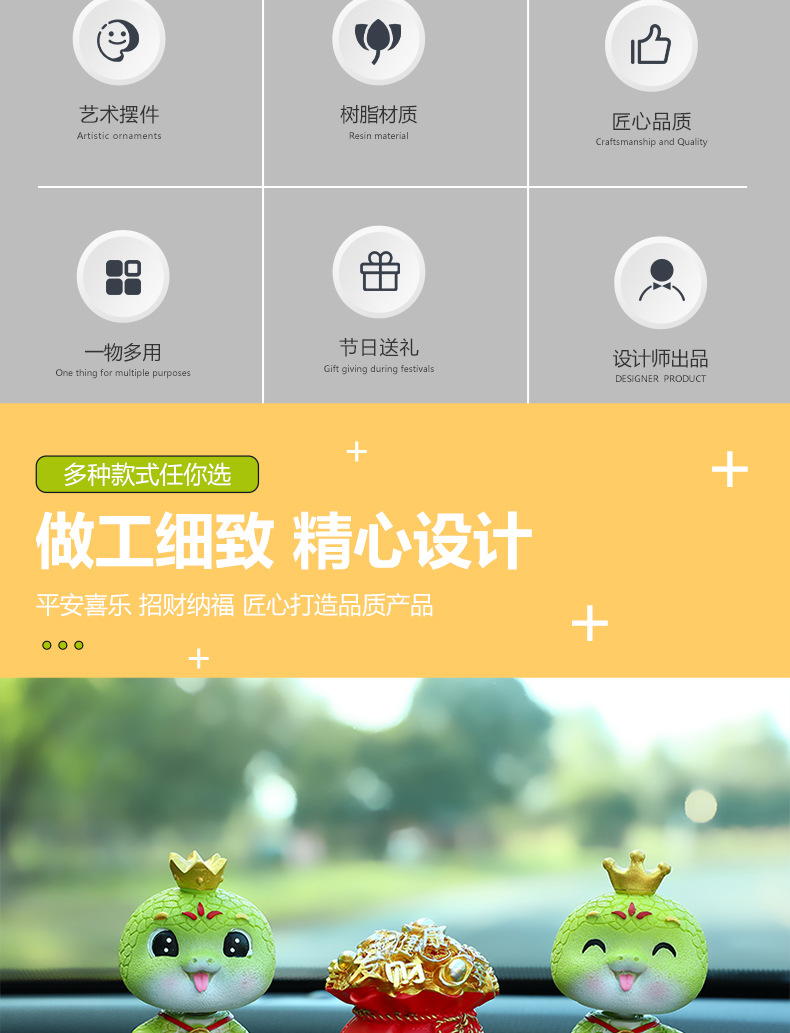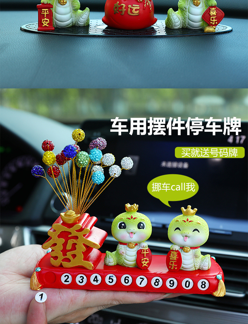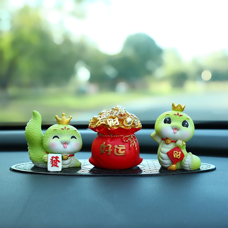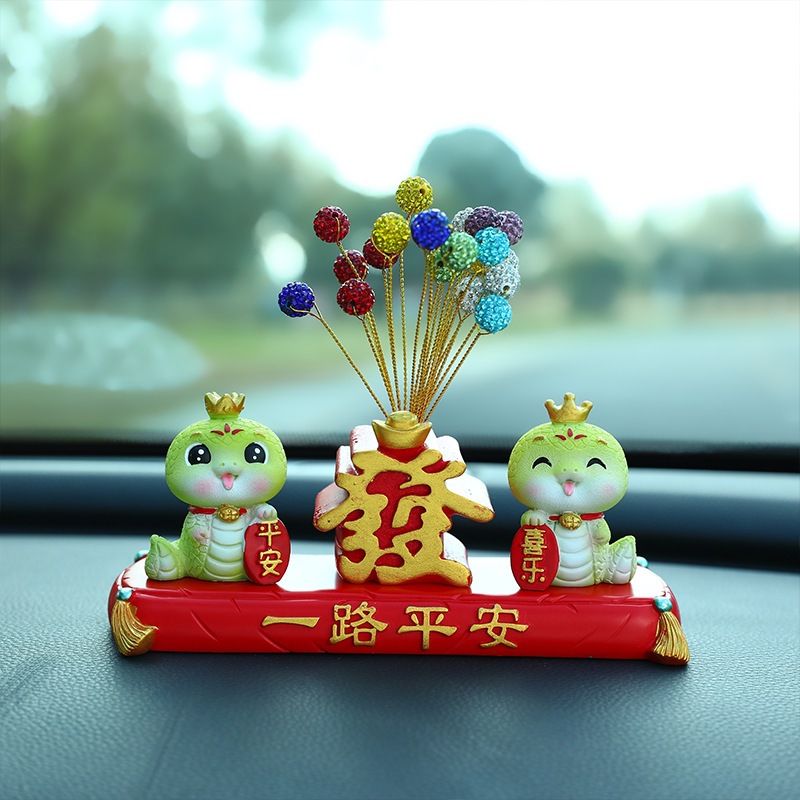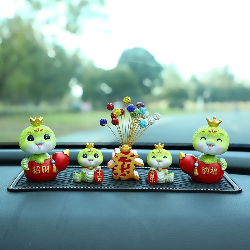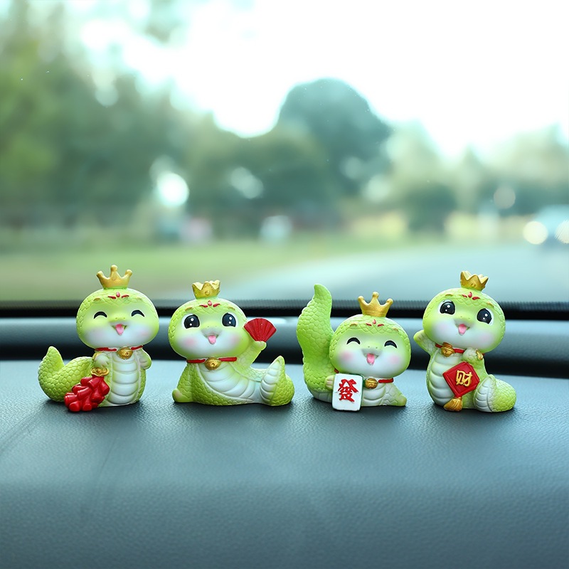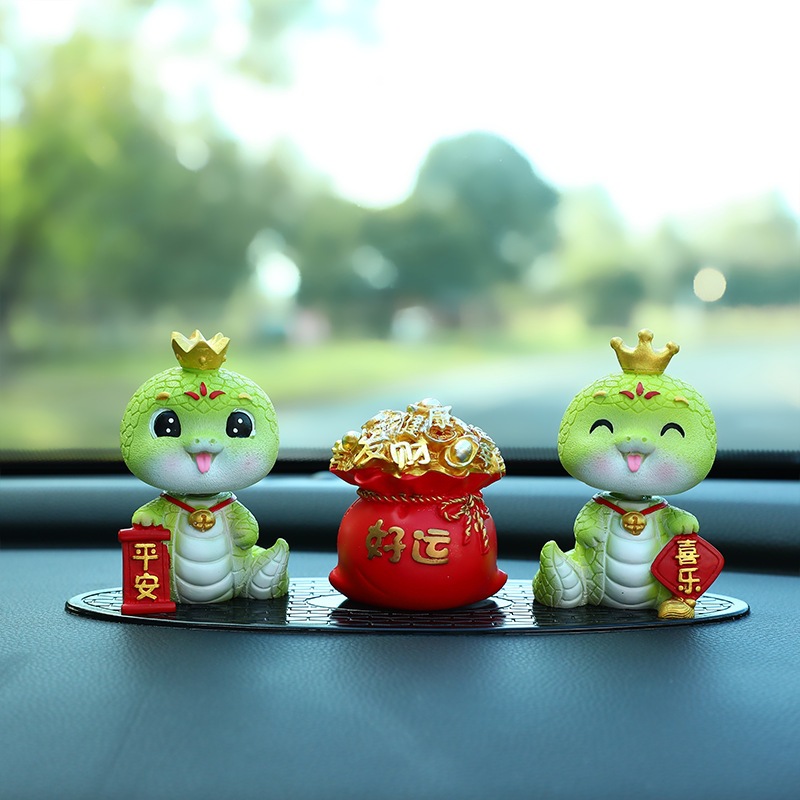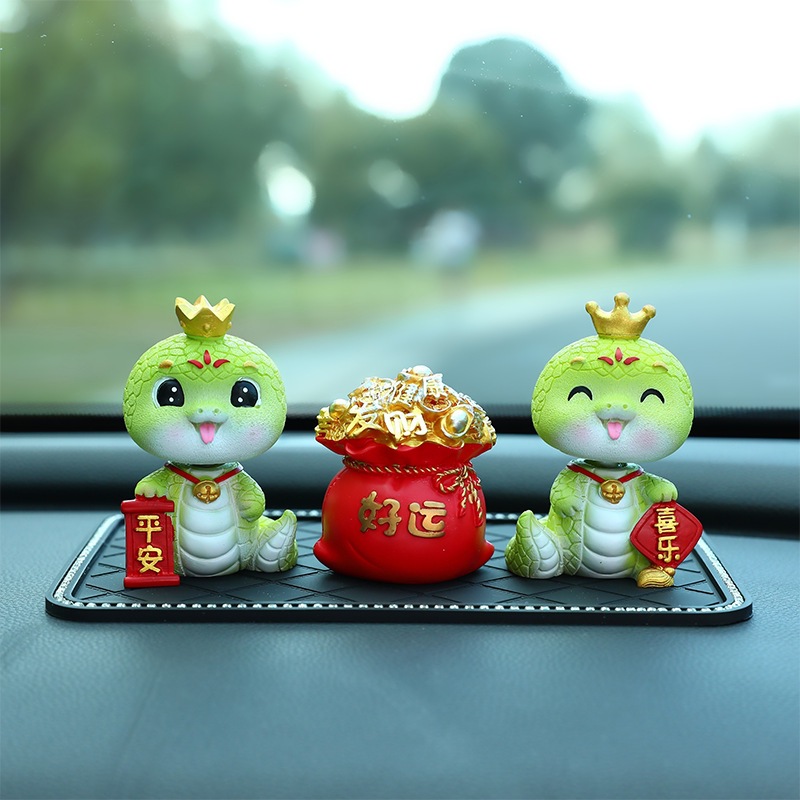 摇头皇冠小蛇汽车摆件蛇年生肖吉祥物车内卡通可爱车载树脂装饰品