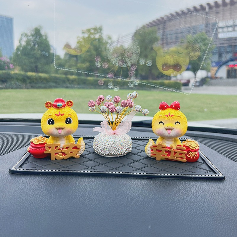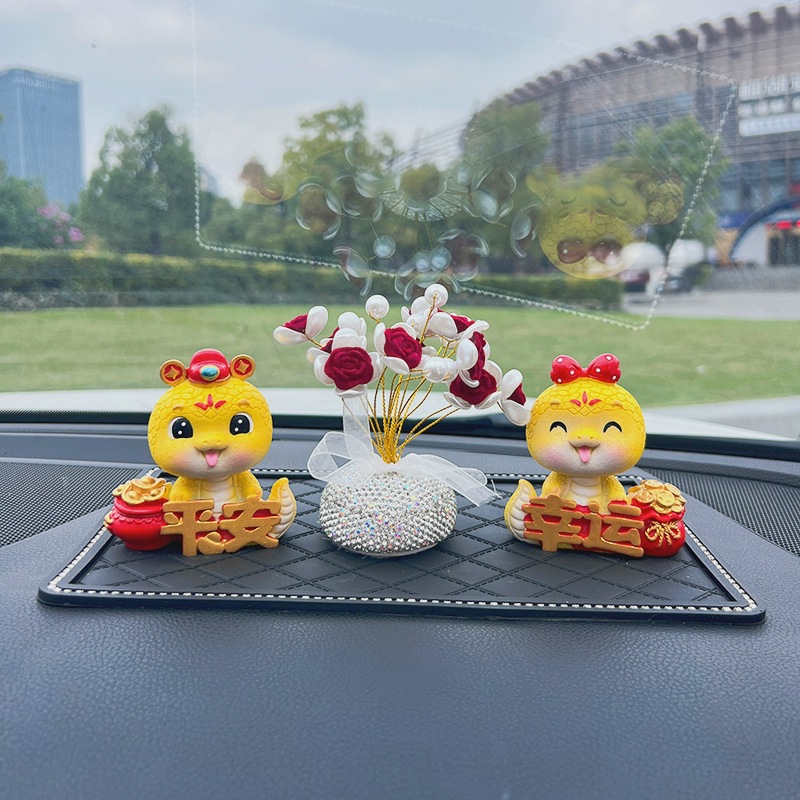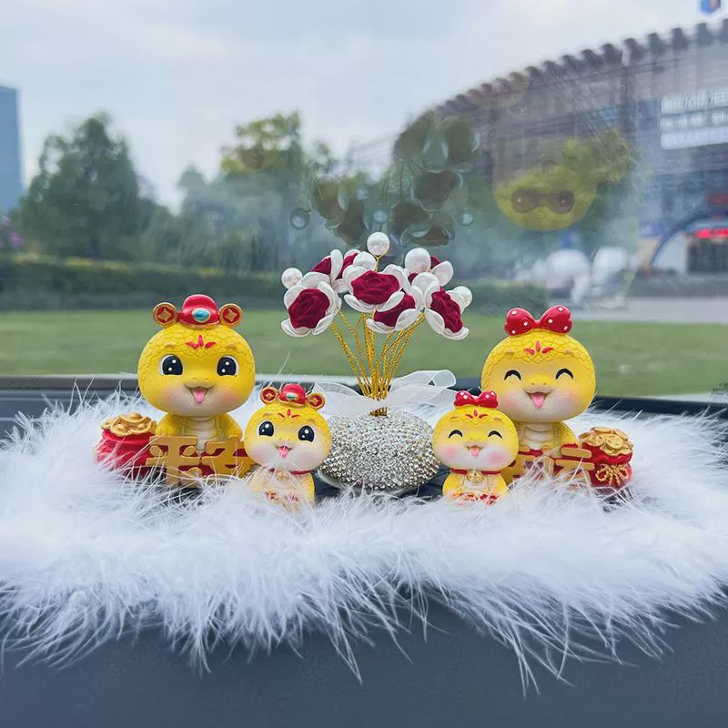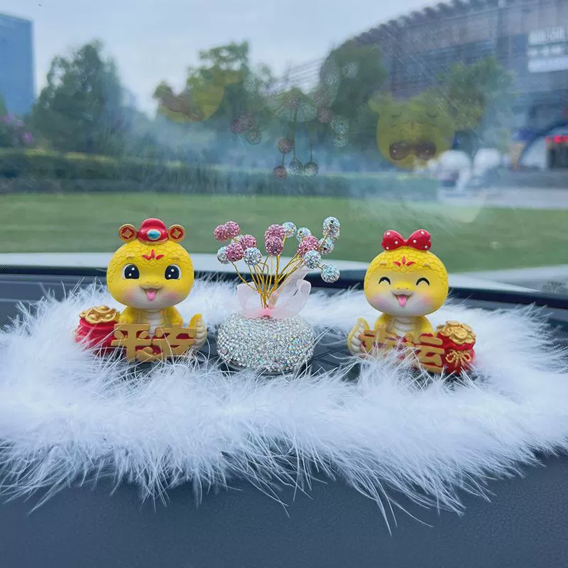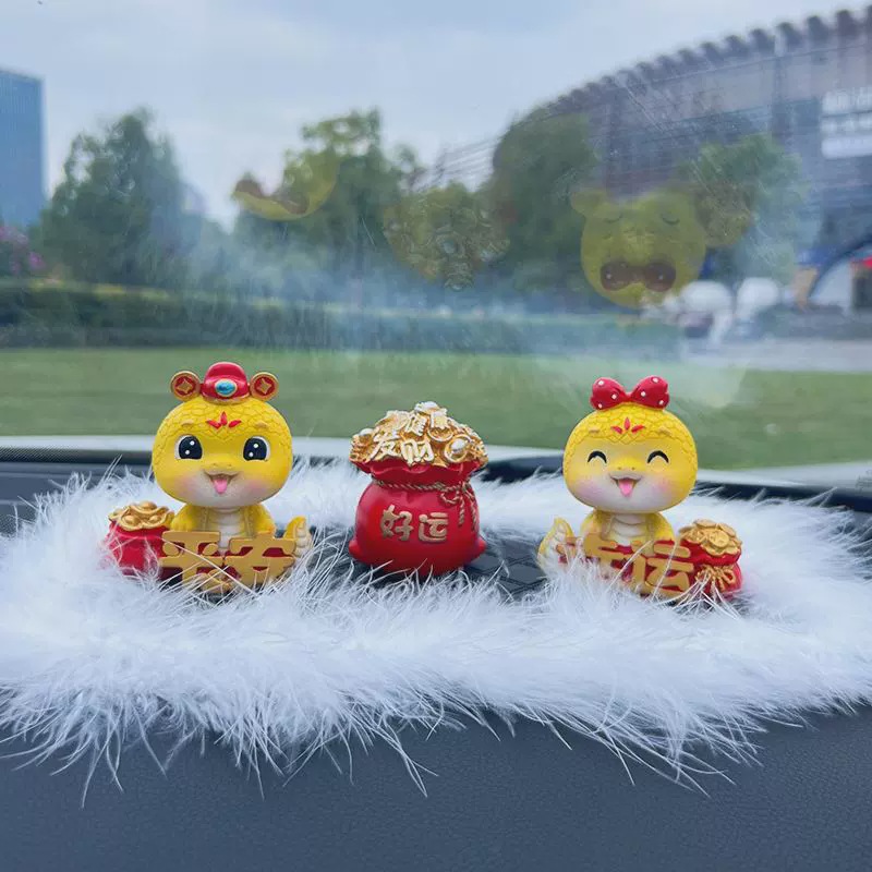 蛇年公仔吉祥物本命年汽车摆件电动车内饰中控台车载装饰用品