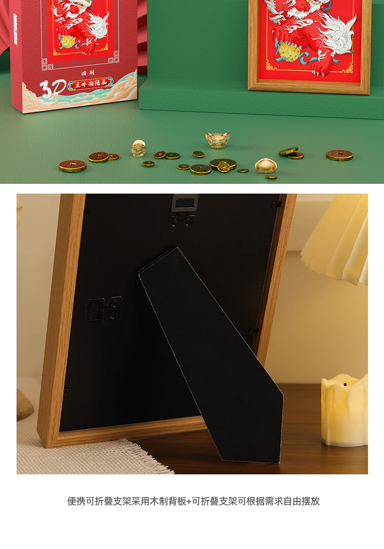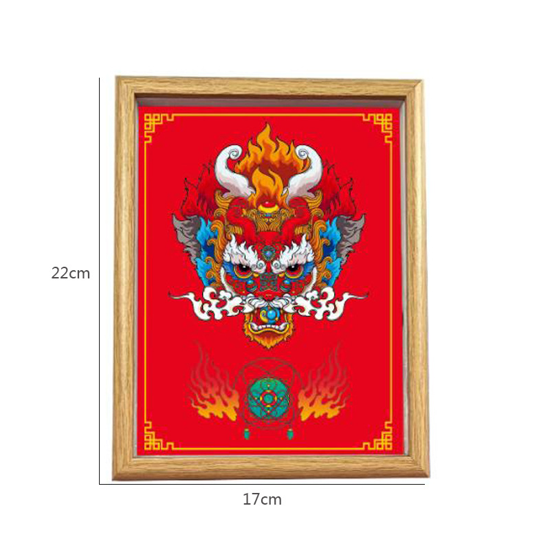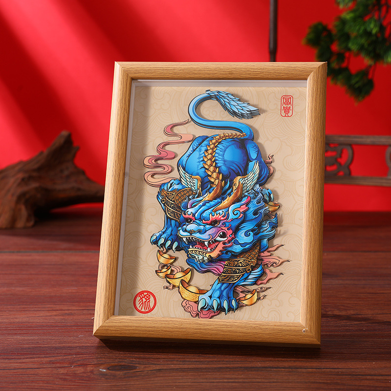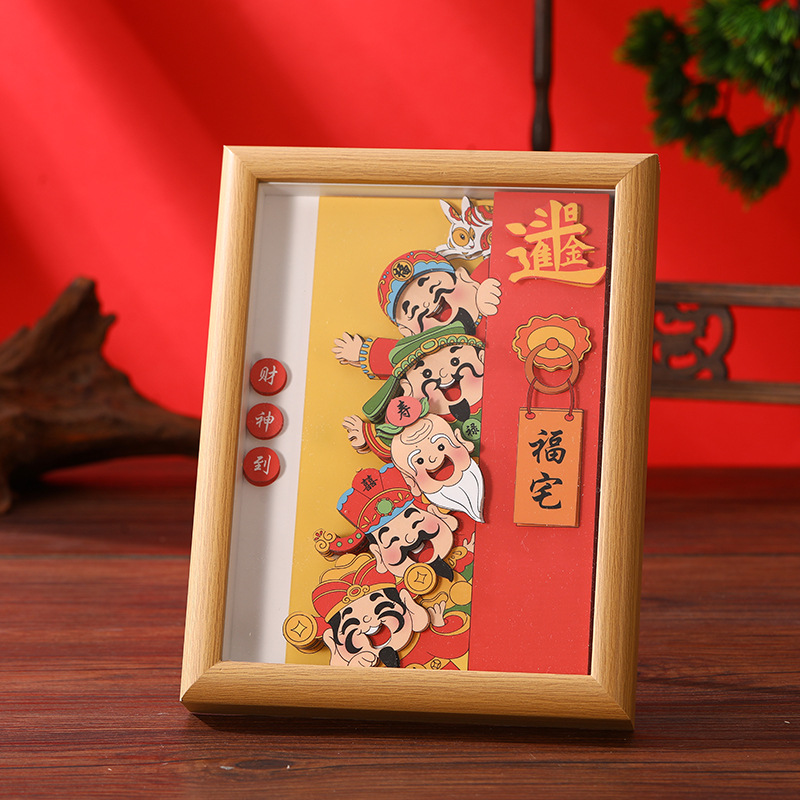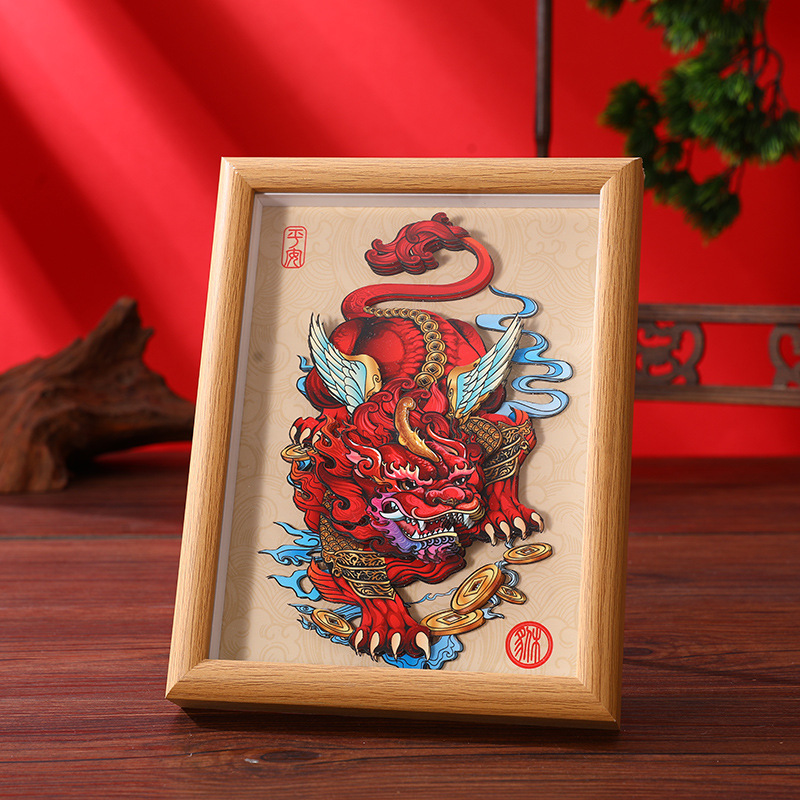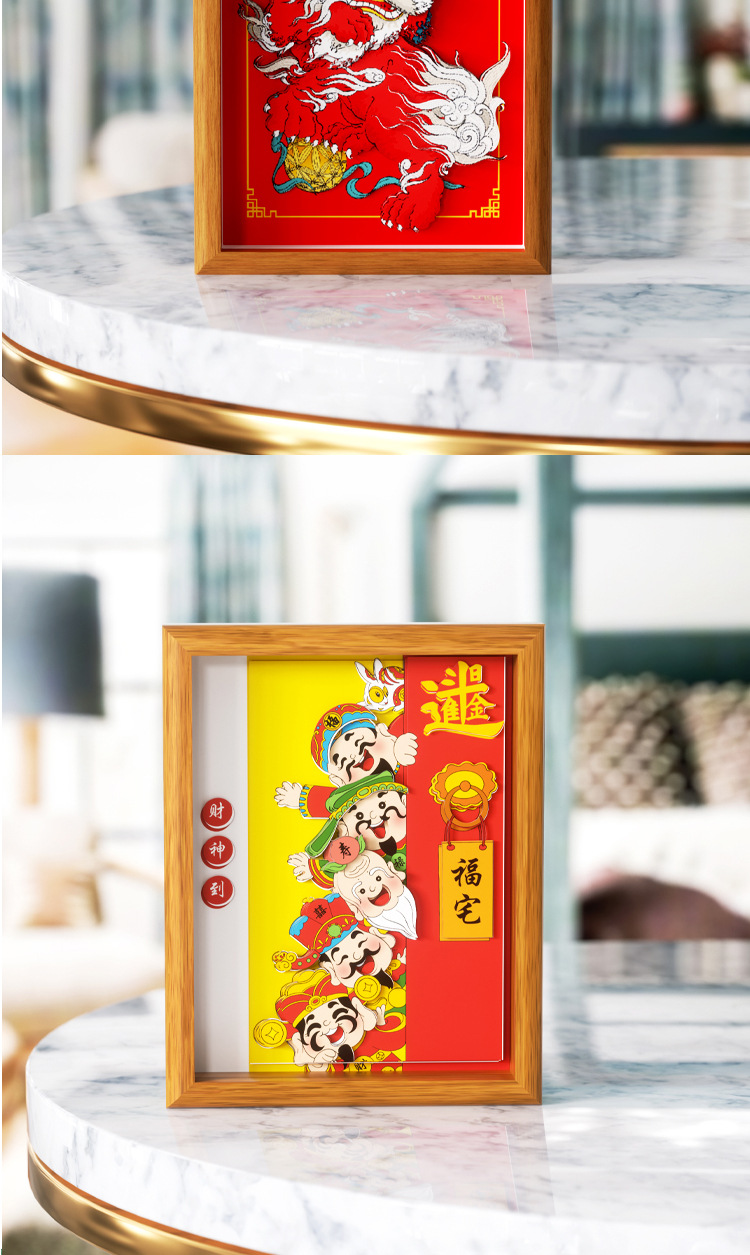 国潮新中式醒狮貔貅财神木质相框摆台立体diy装饰画摆件厂家批发