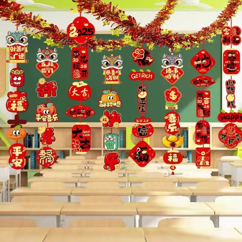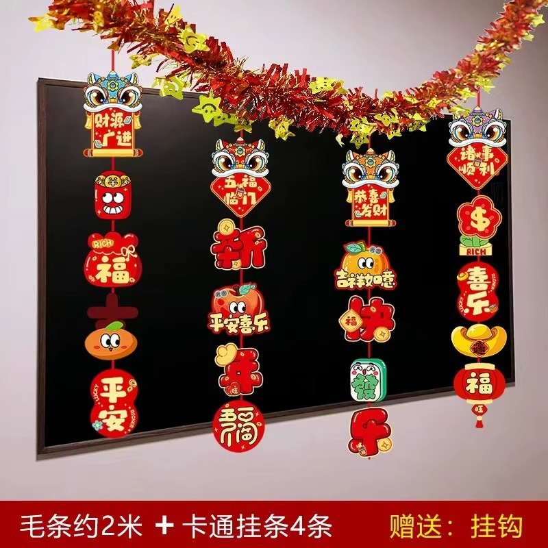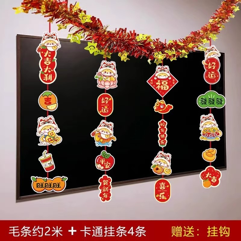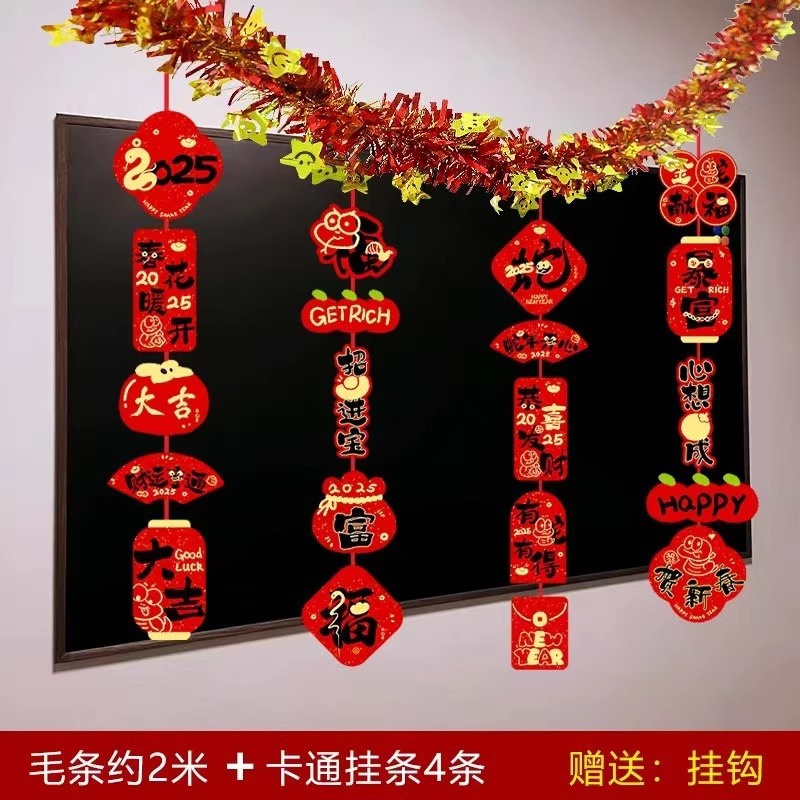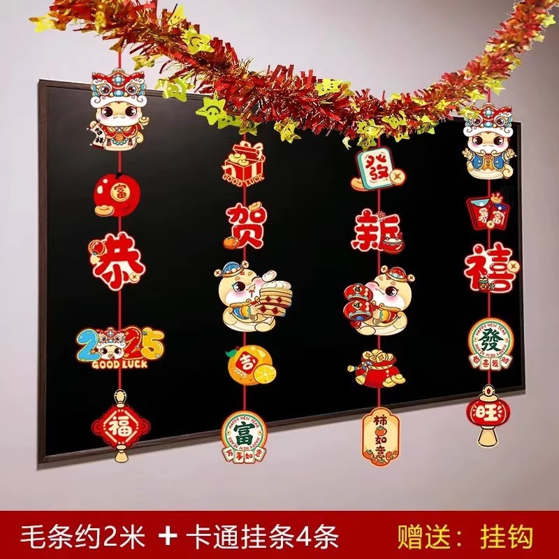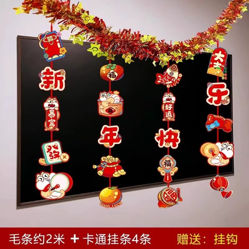 2025蛇年元旦新年毛条装饰品拉花场景布置教室背景墙过年氛围挂饰