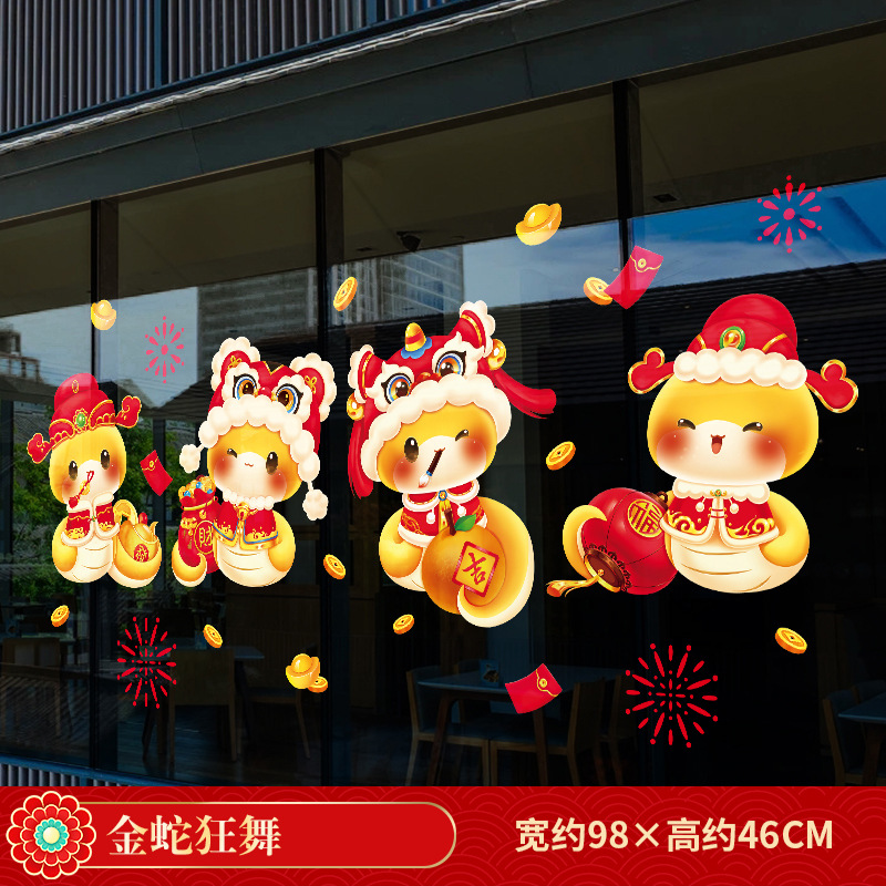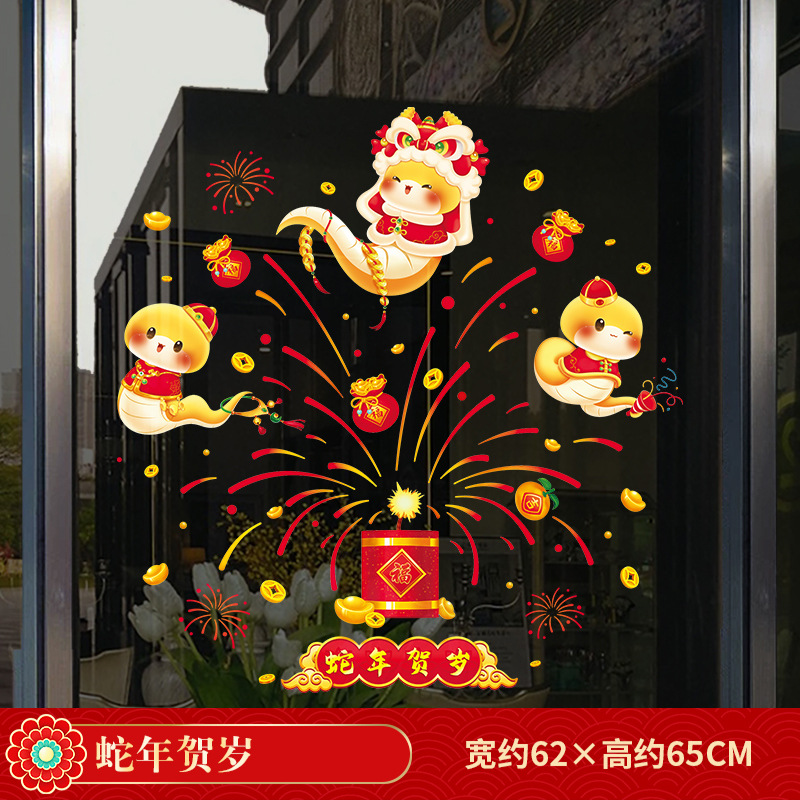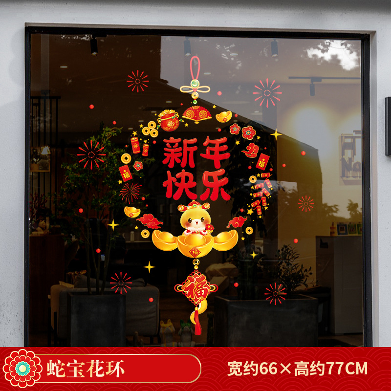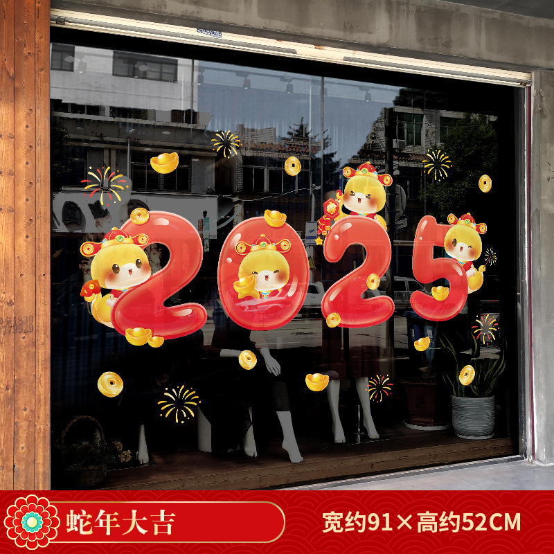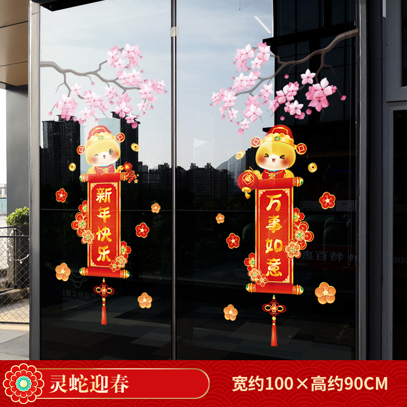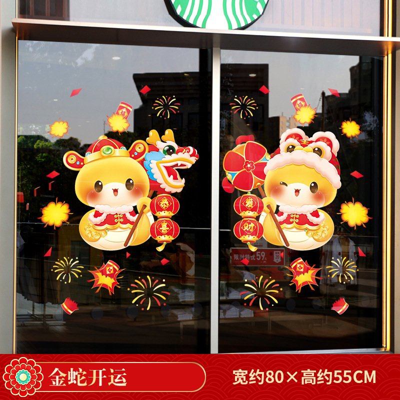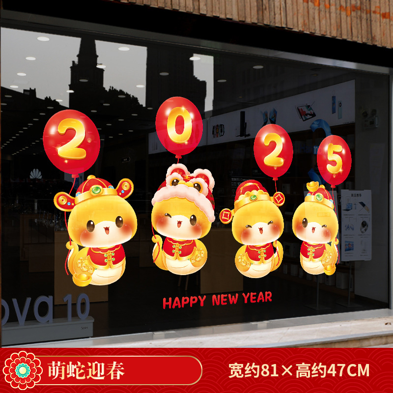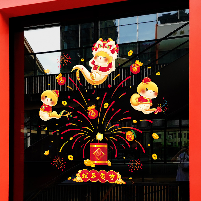 2025 snake new year stickers new year new year shop shopping window glass decorative electrostatic sticker door sticker window flower paste