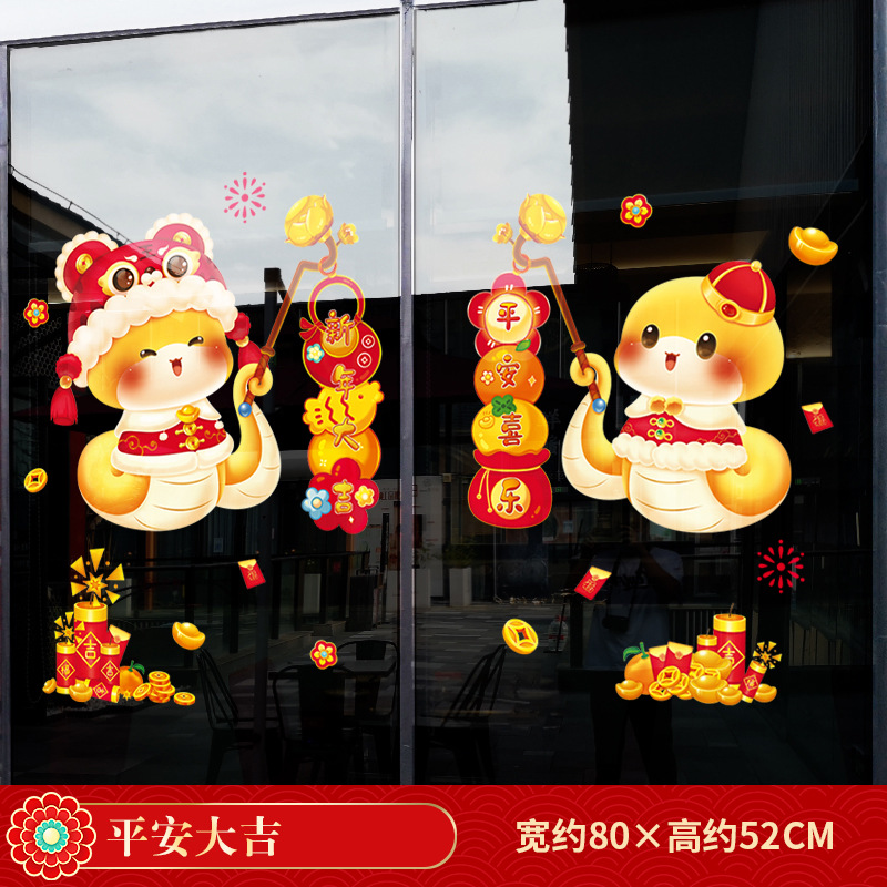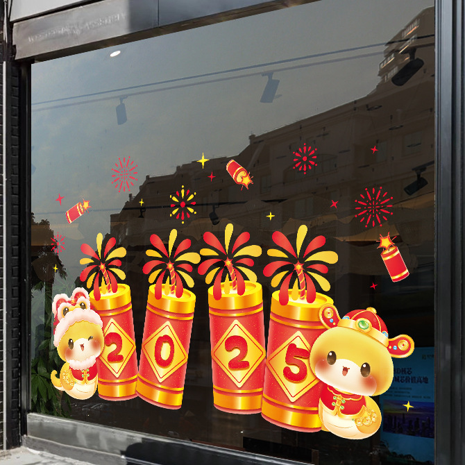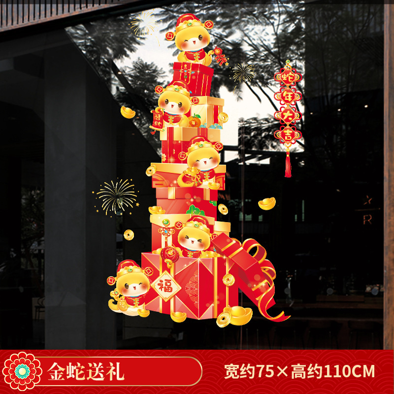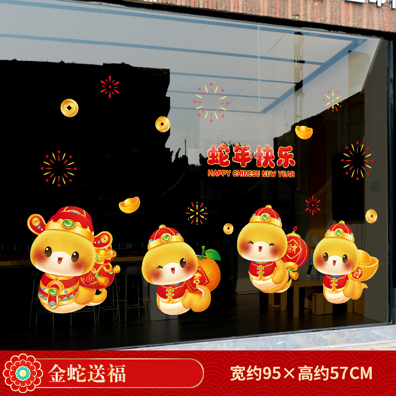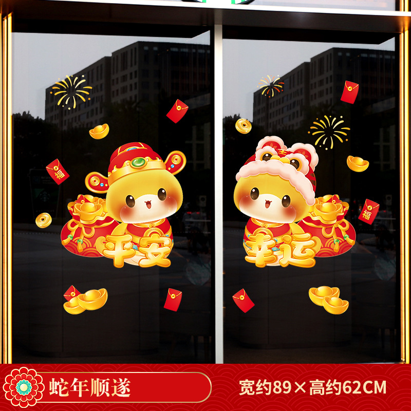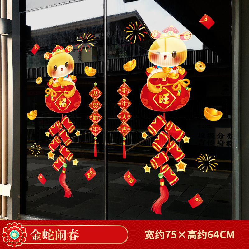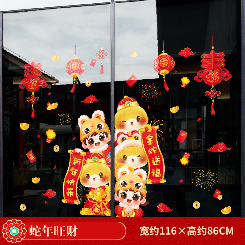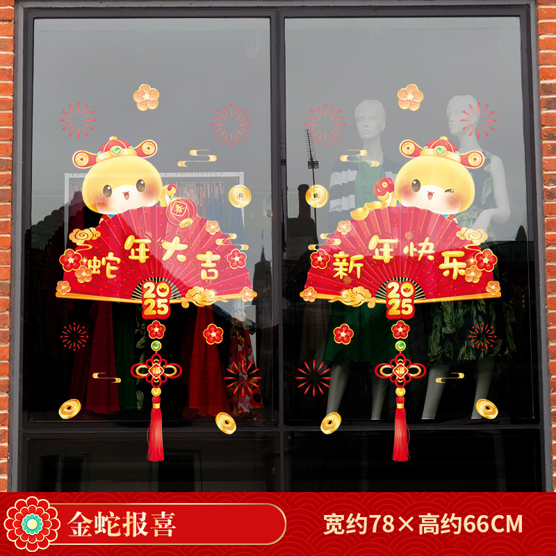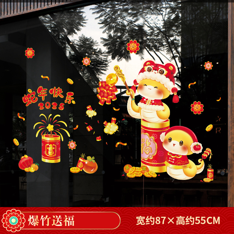 2025 snake new year stickers new year new year shop shopping window glass decorative electrostatic sticker door sticker window flower paste