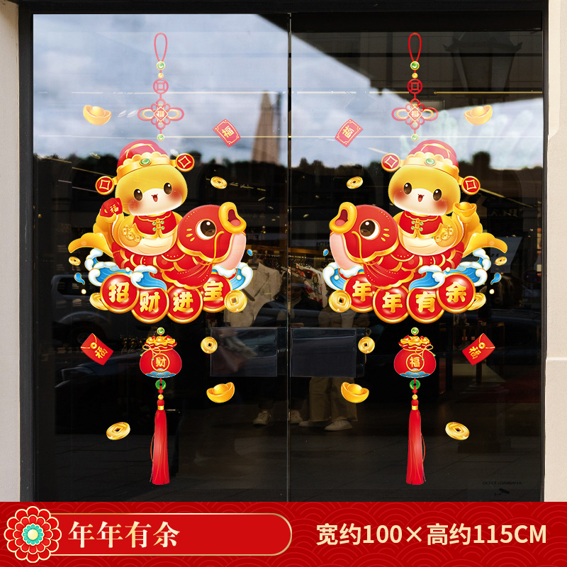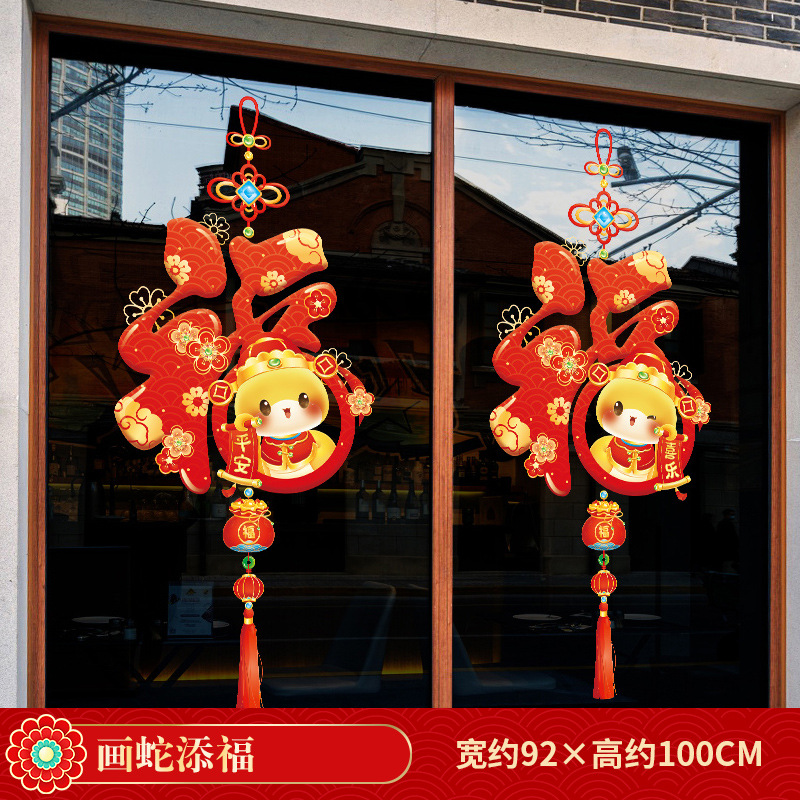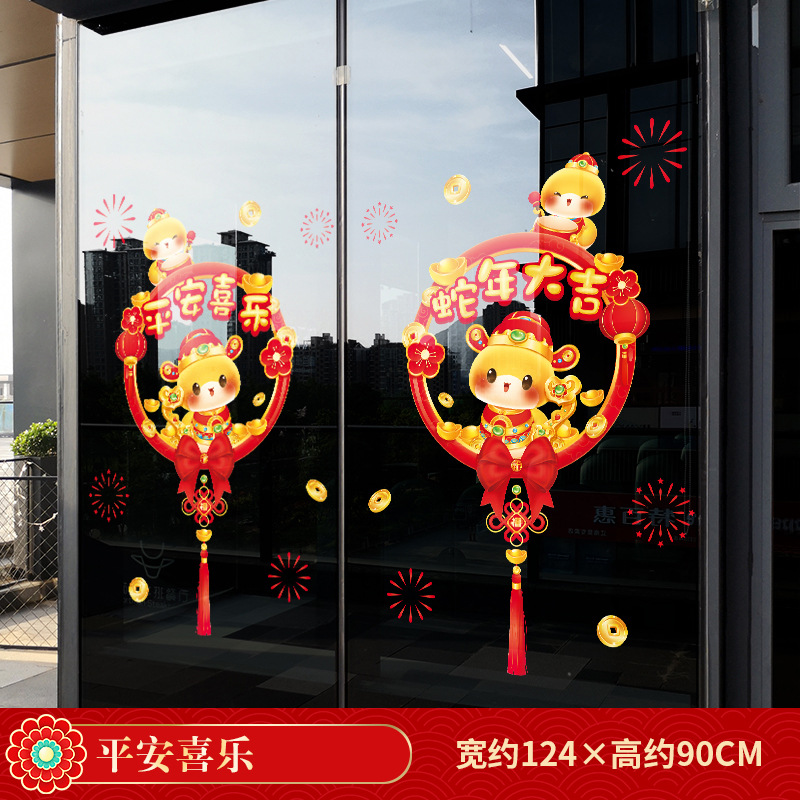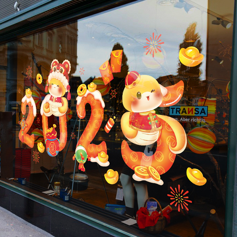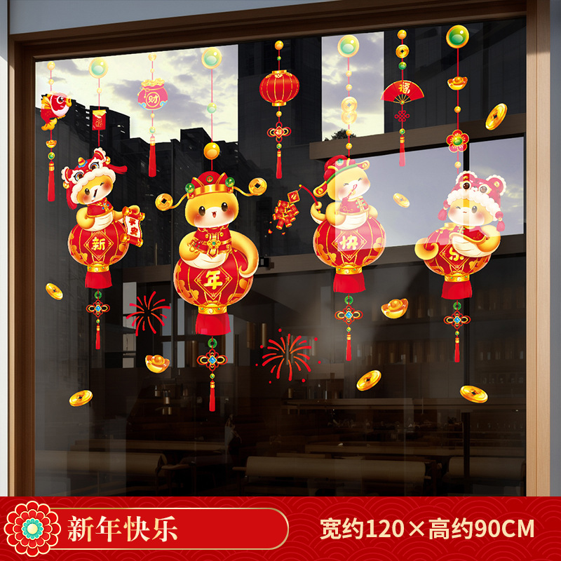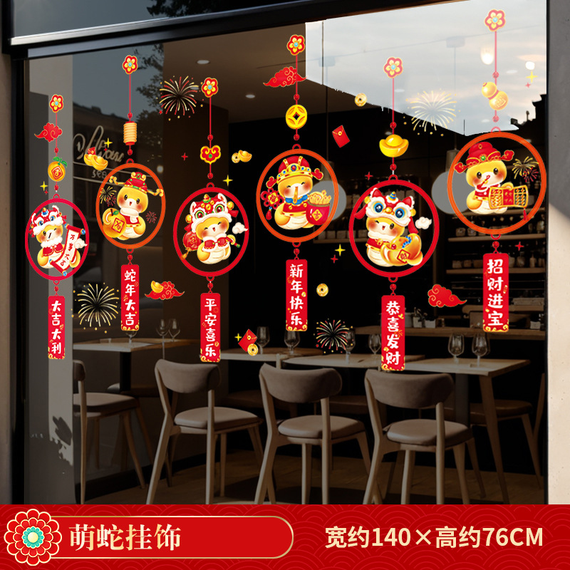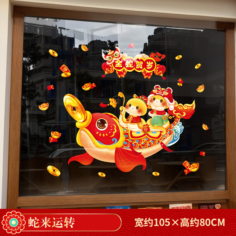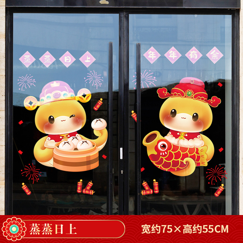 2025 snake new year stickers new year new year shop shopping window glass decorative electrostatic sticker door sticker window flower paste
