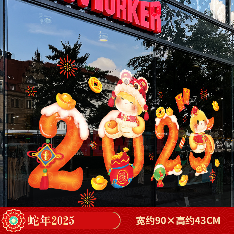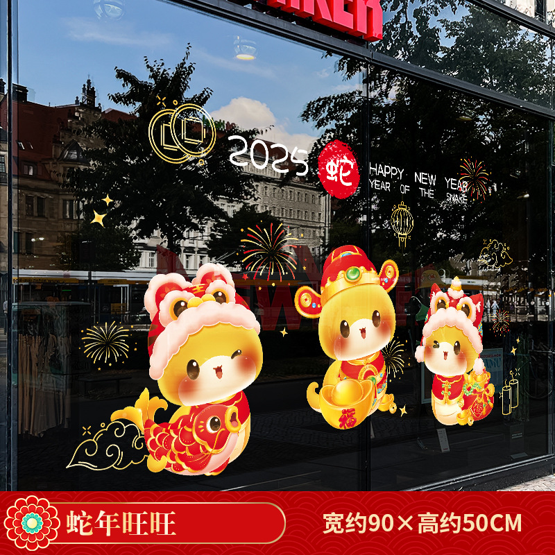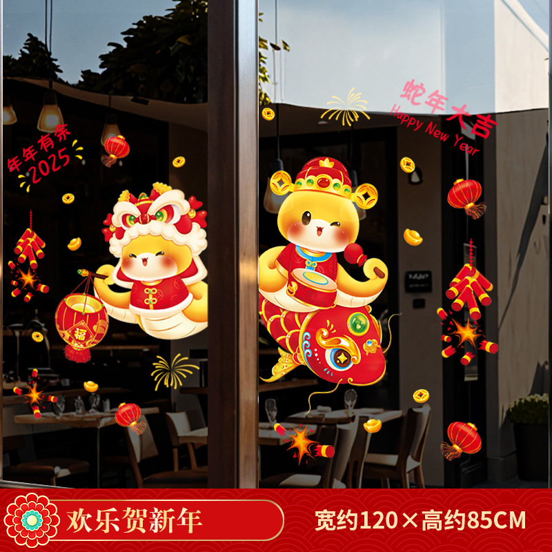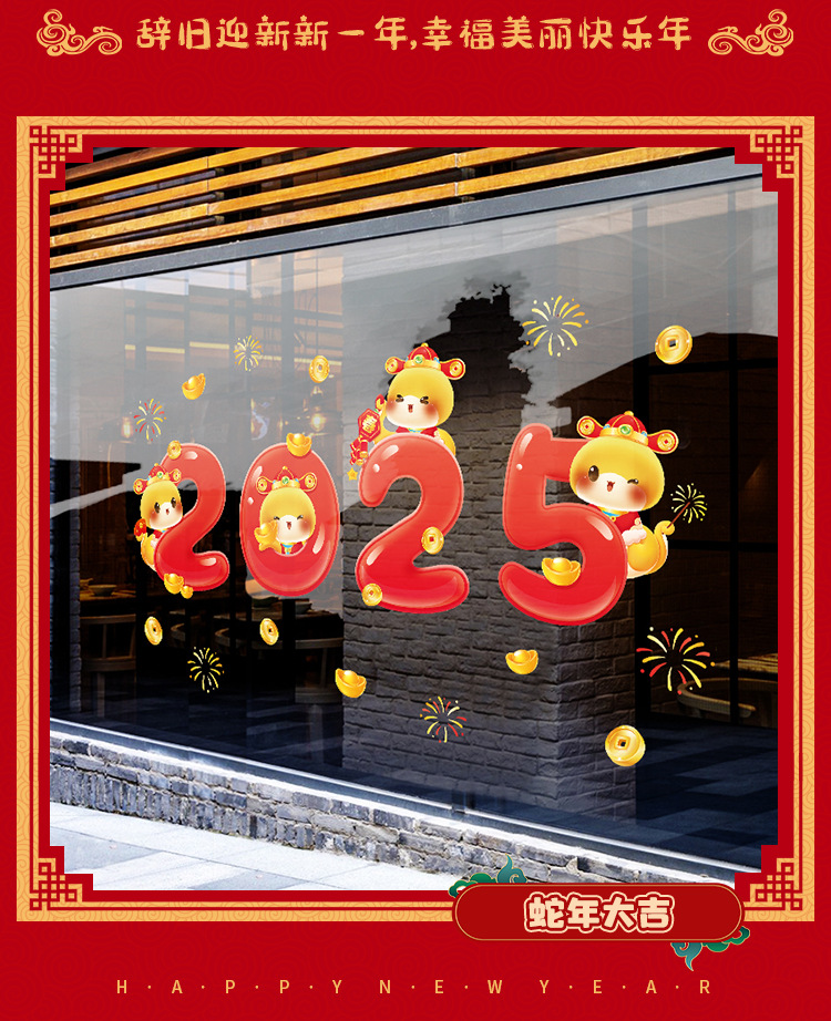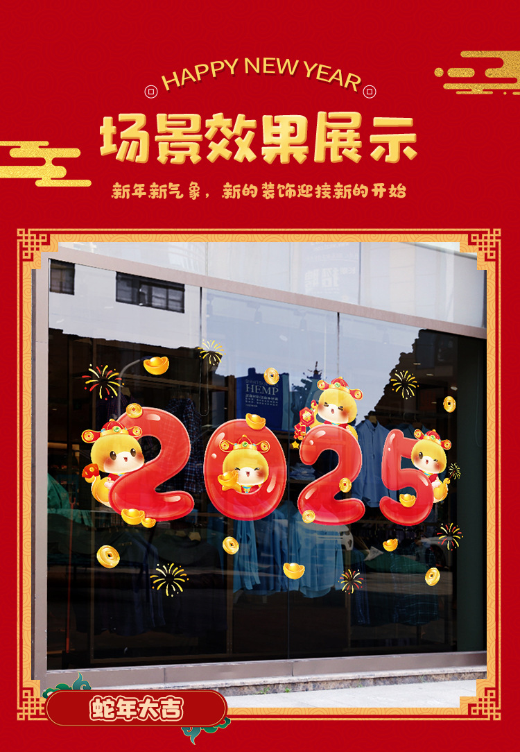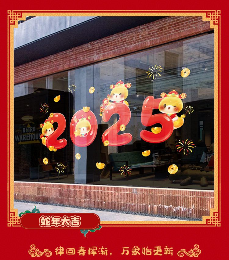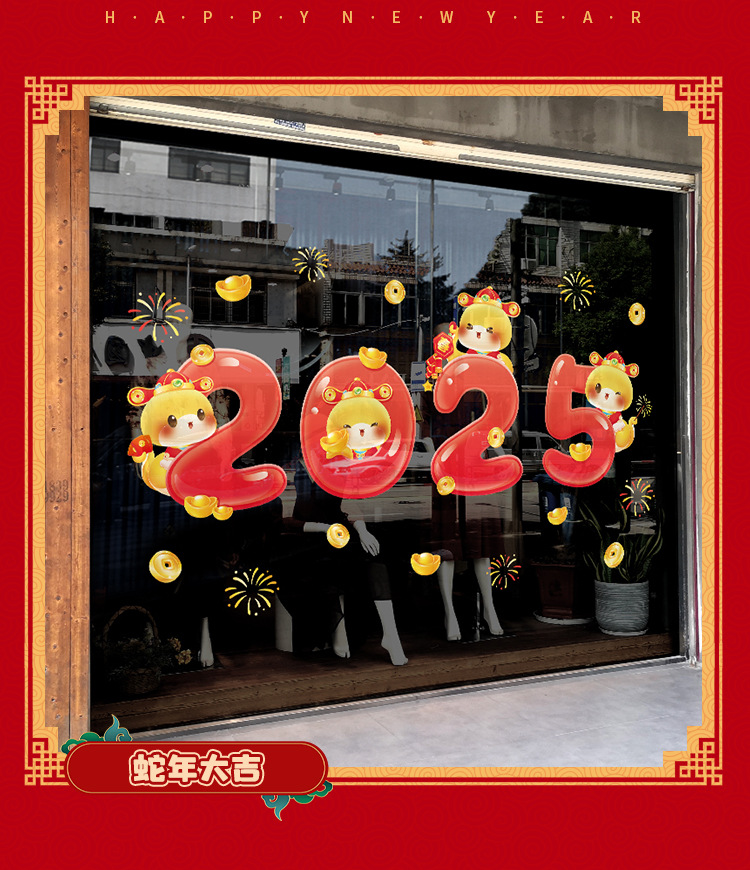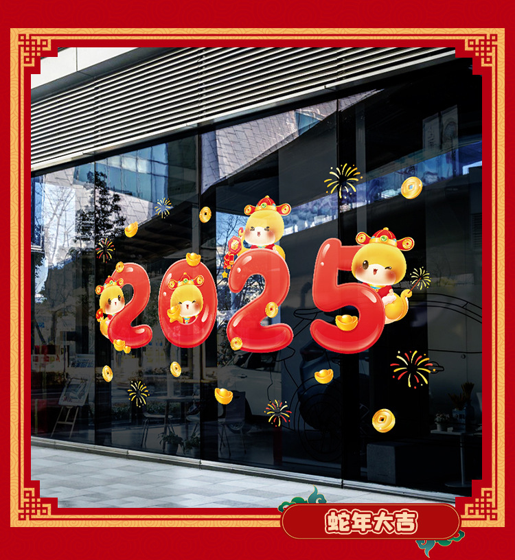 2025蛇年新年贴纸过年元旦店铺商场橱窗玻璃装饰静电贴门贴窗花贴
