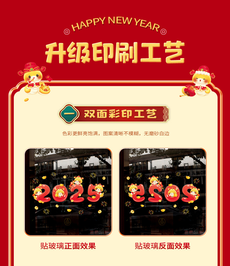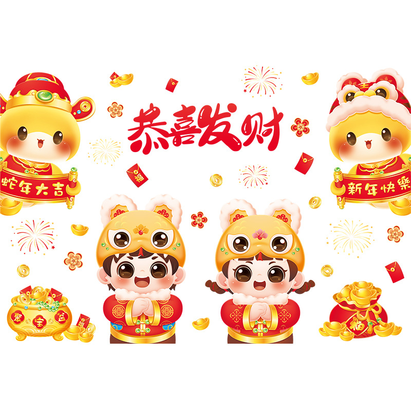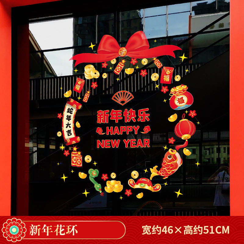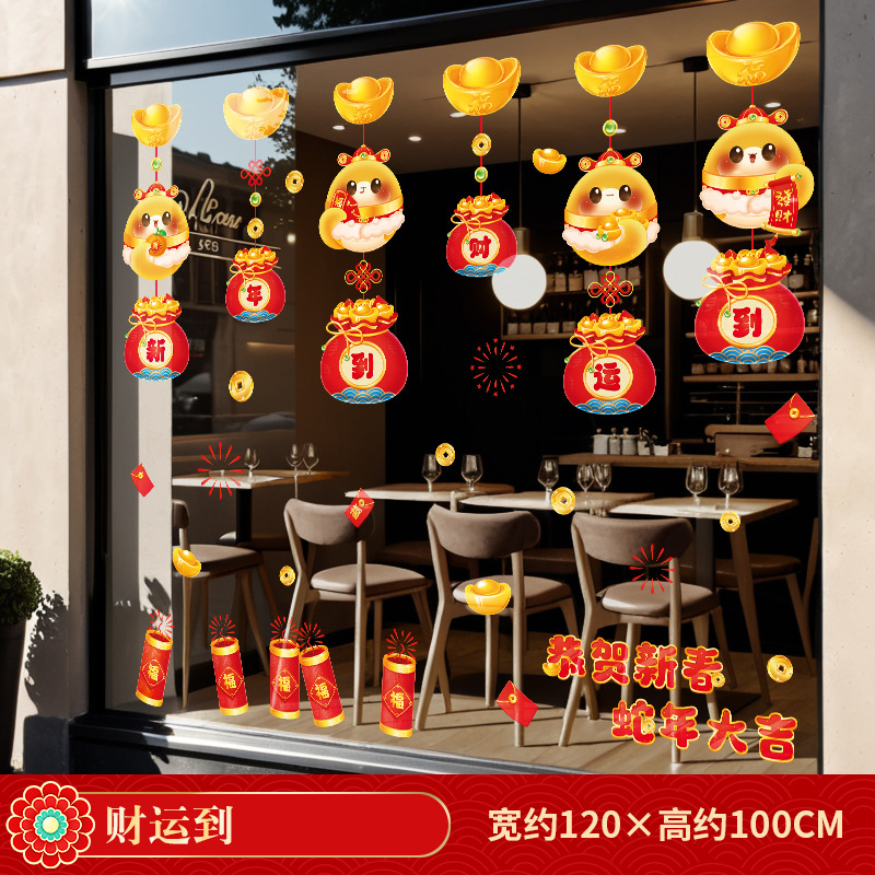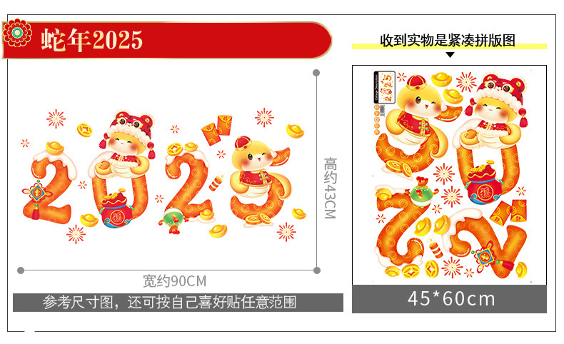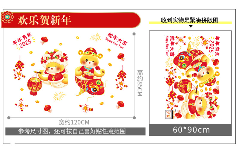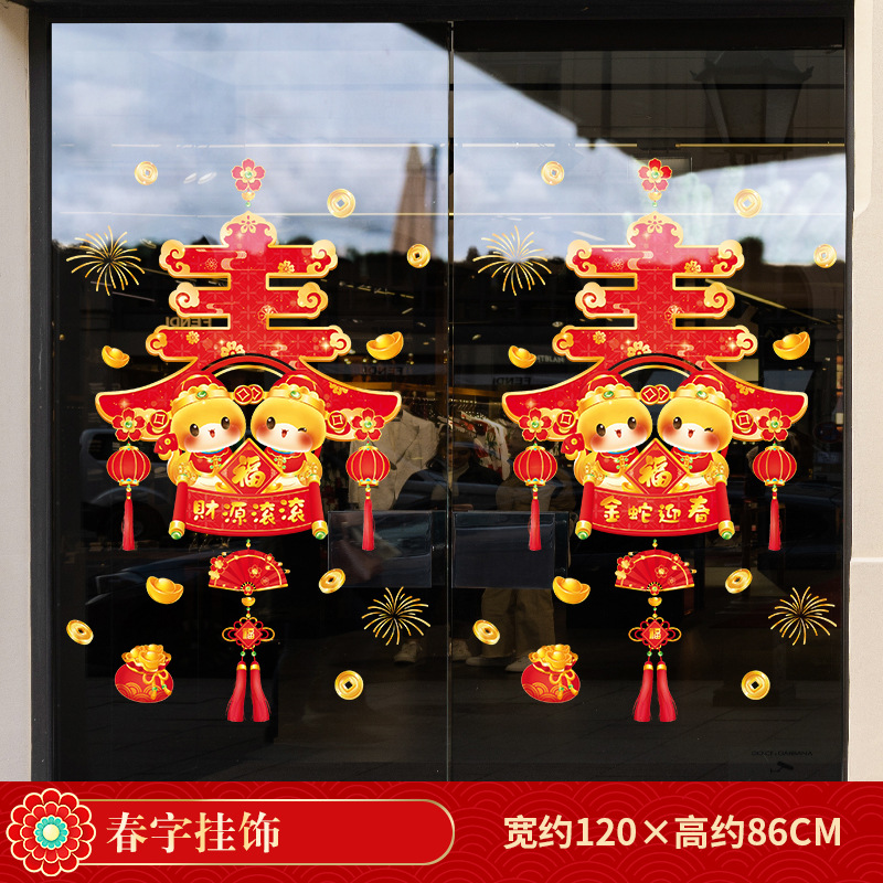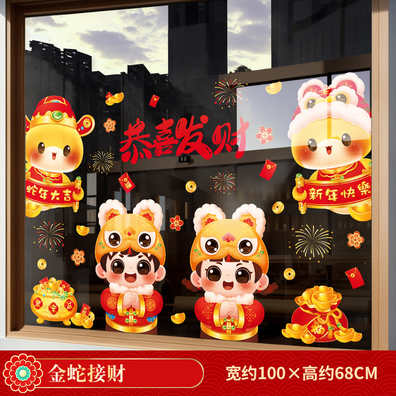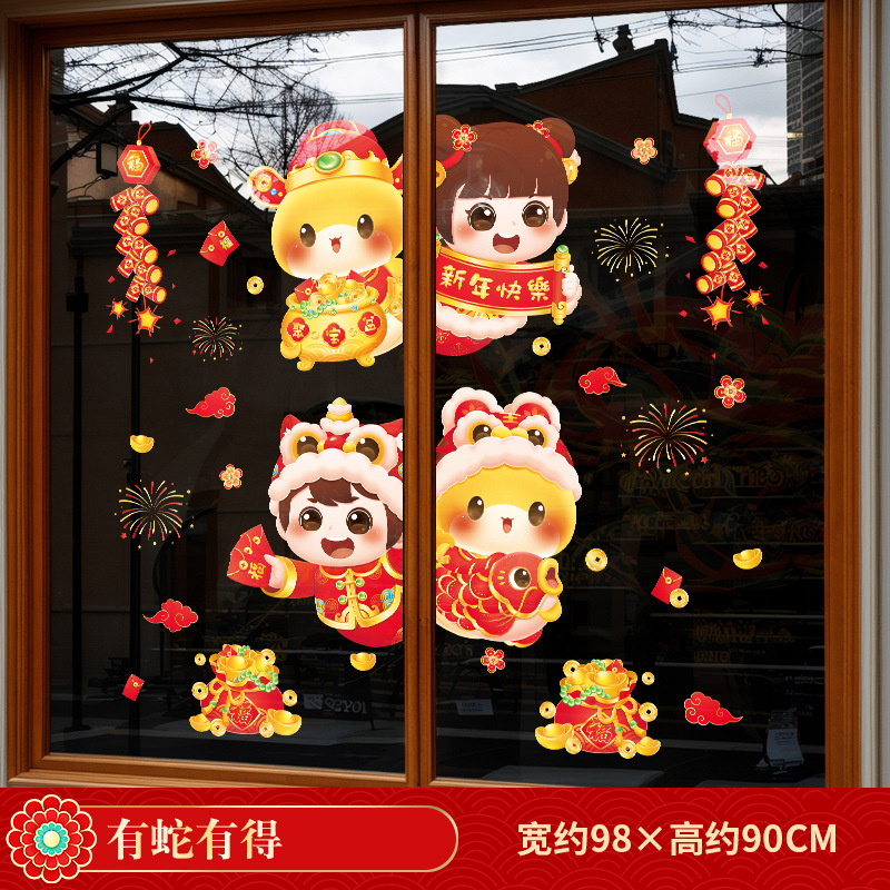 2025蛇年新年贴纸过年元旦店铺商场橱窗玻璃装饰静电贴门贴窗花贴