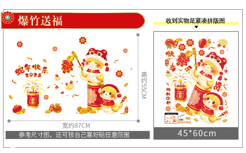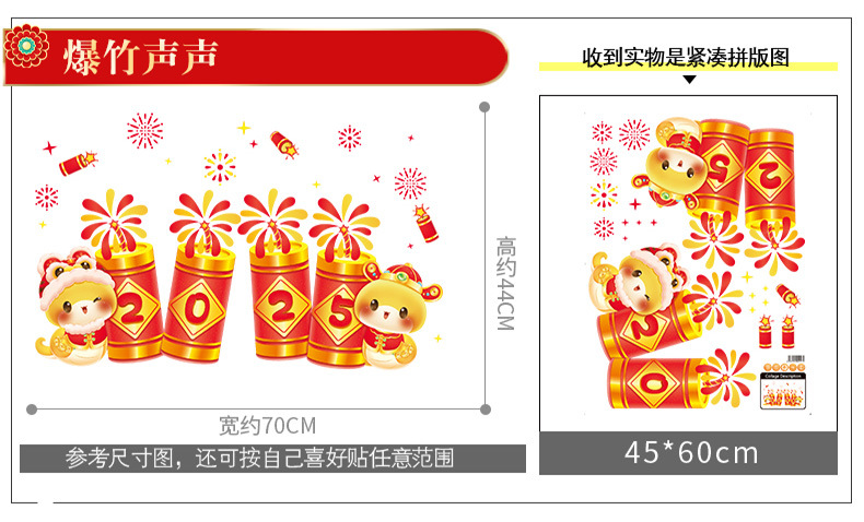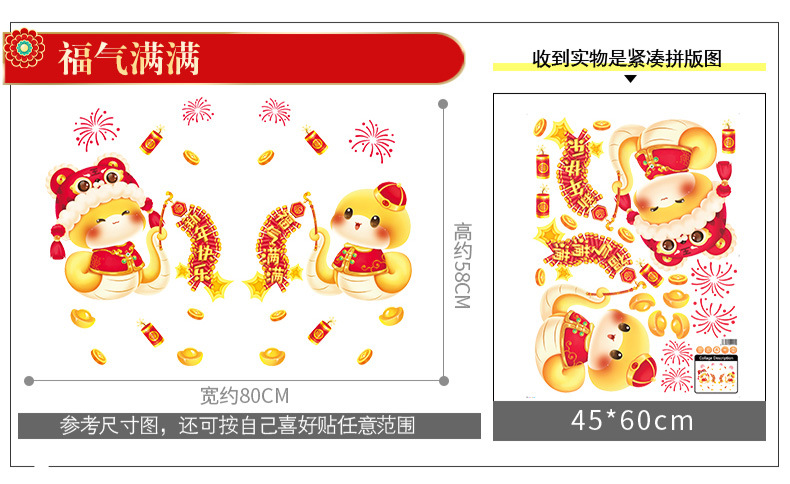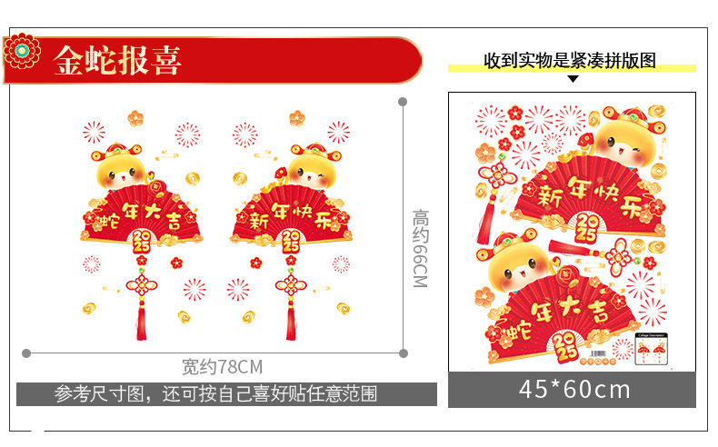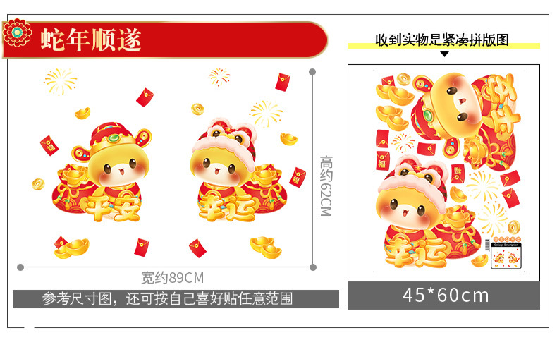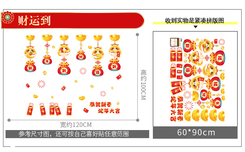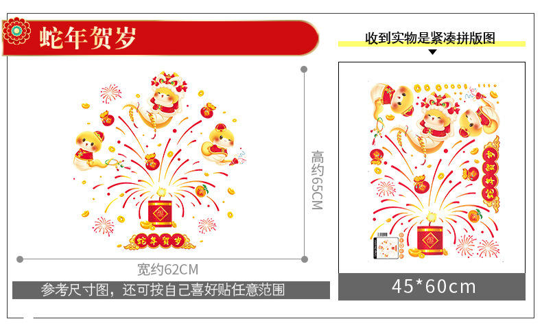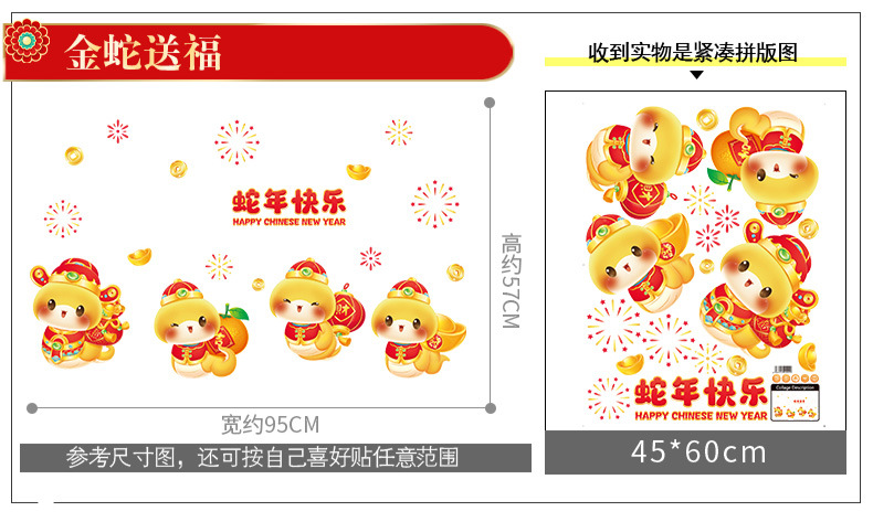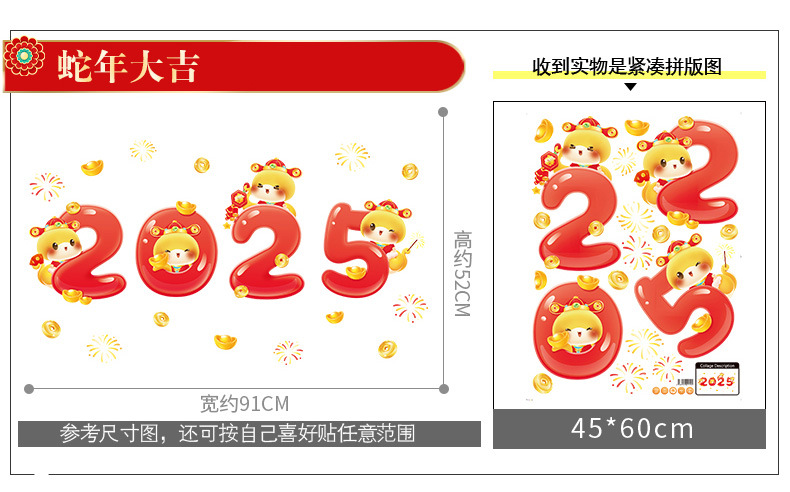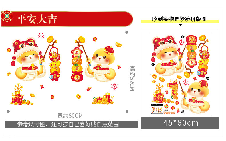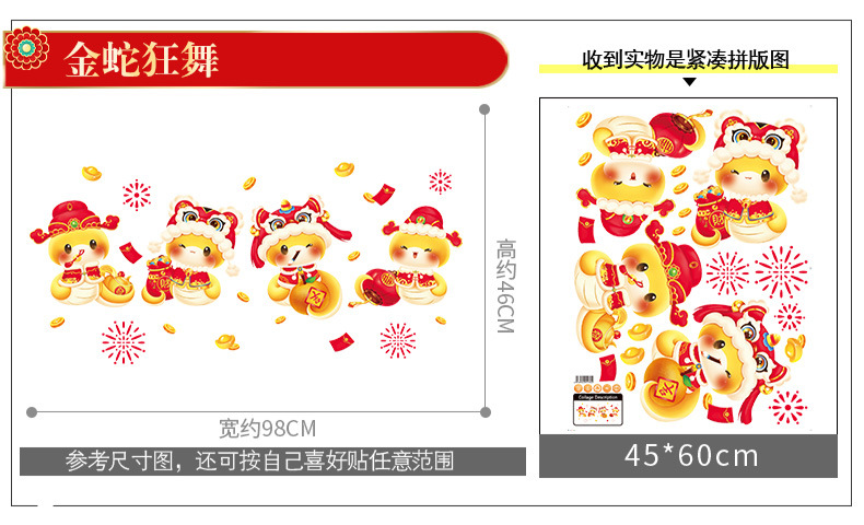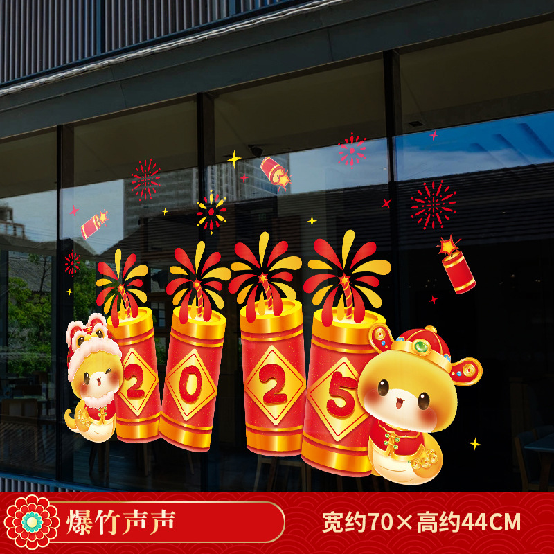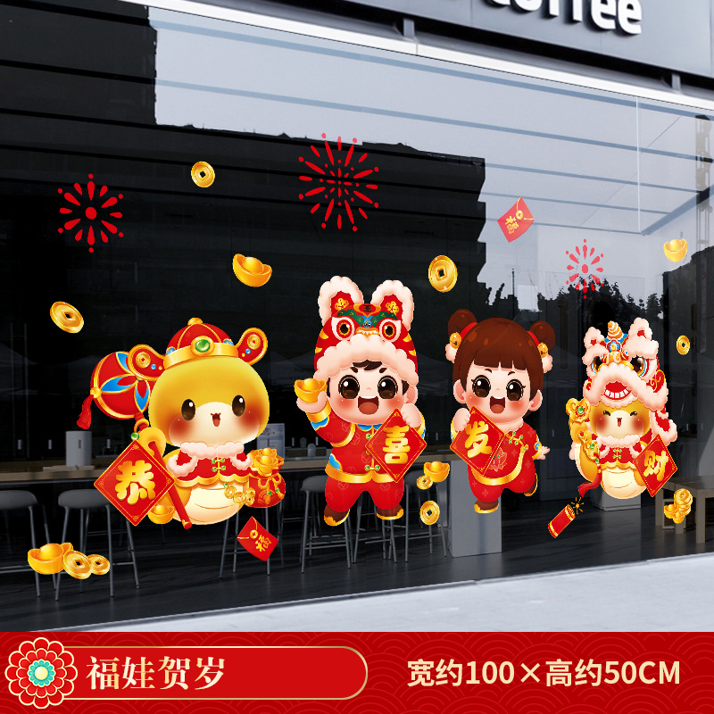 2025蛇年新年贴纸过年元旦店铺商场橱窗玻璃装饰静电贴门贴窗花贴