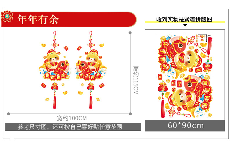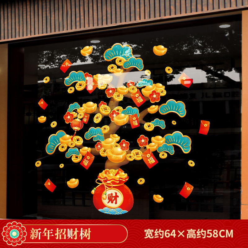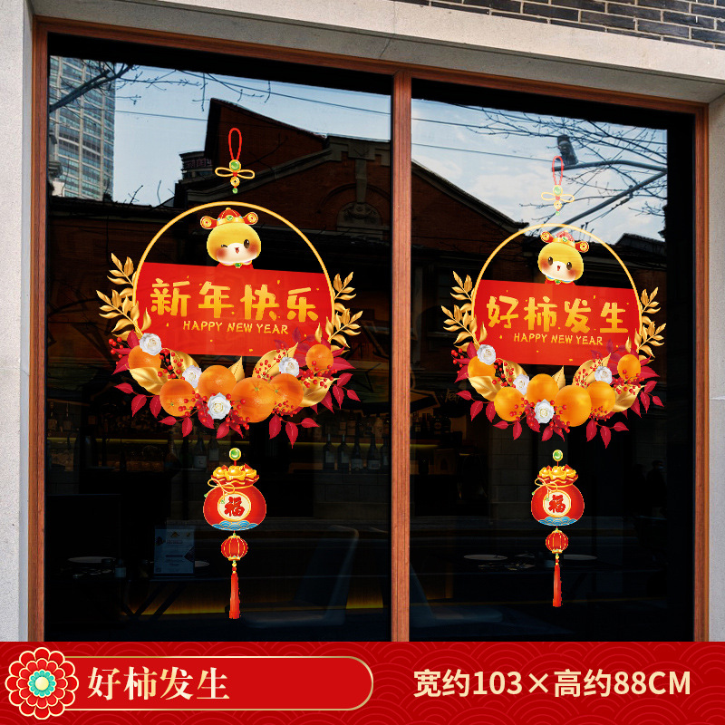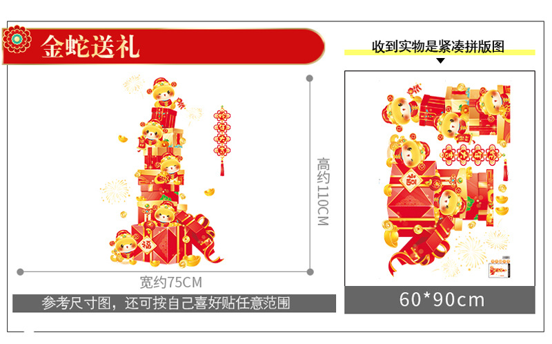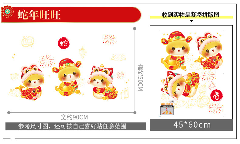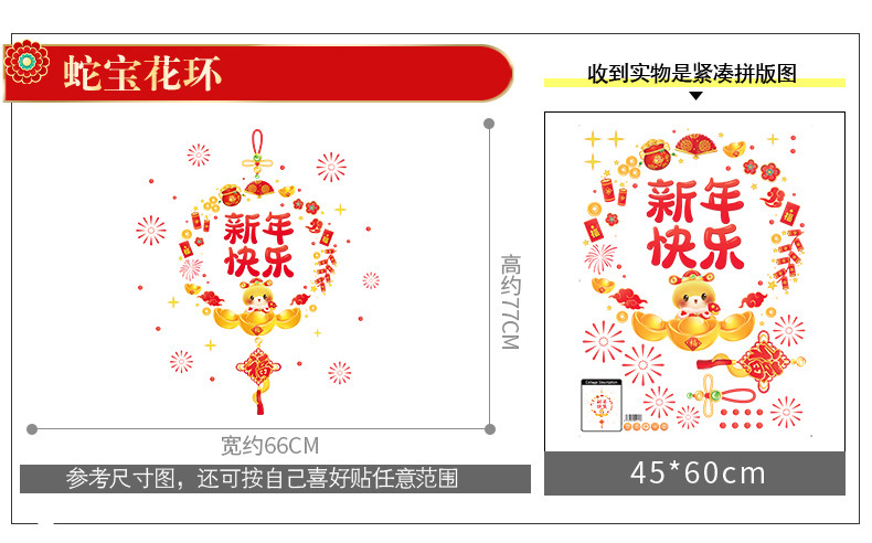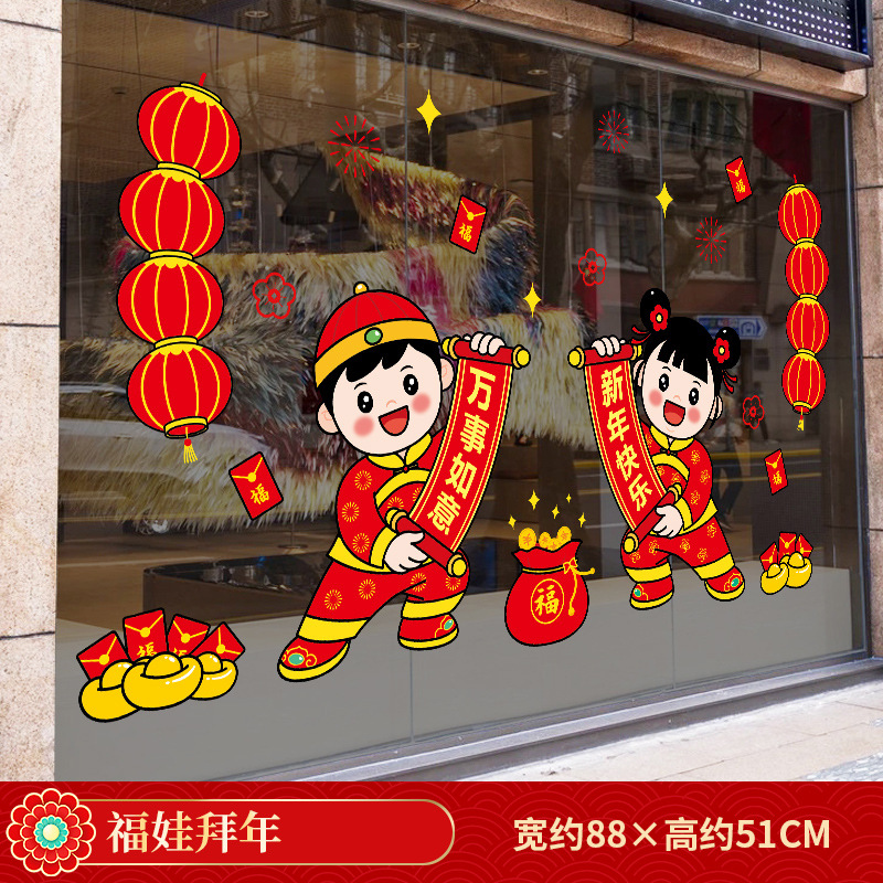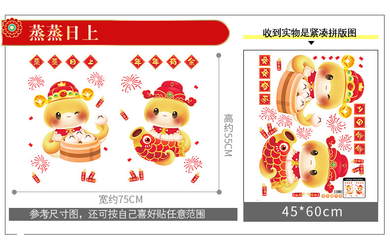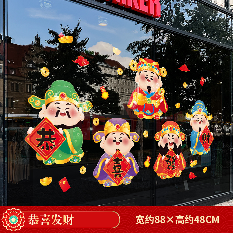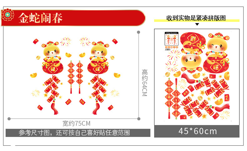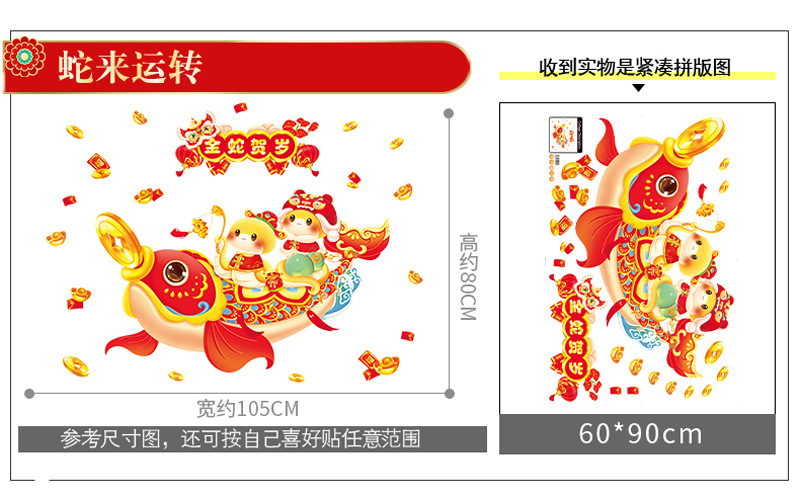 2025蛇年新年贴纸过年元旦店铺商场橱窗玻璃装饰静电贴门贴窗花贴