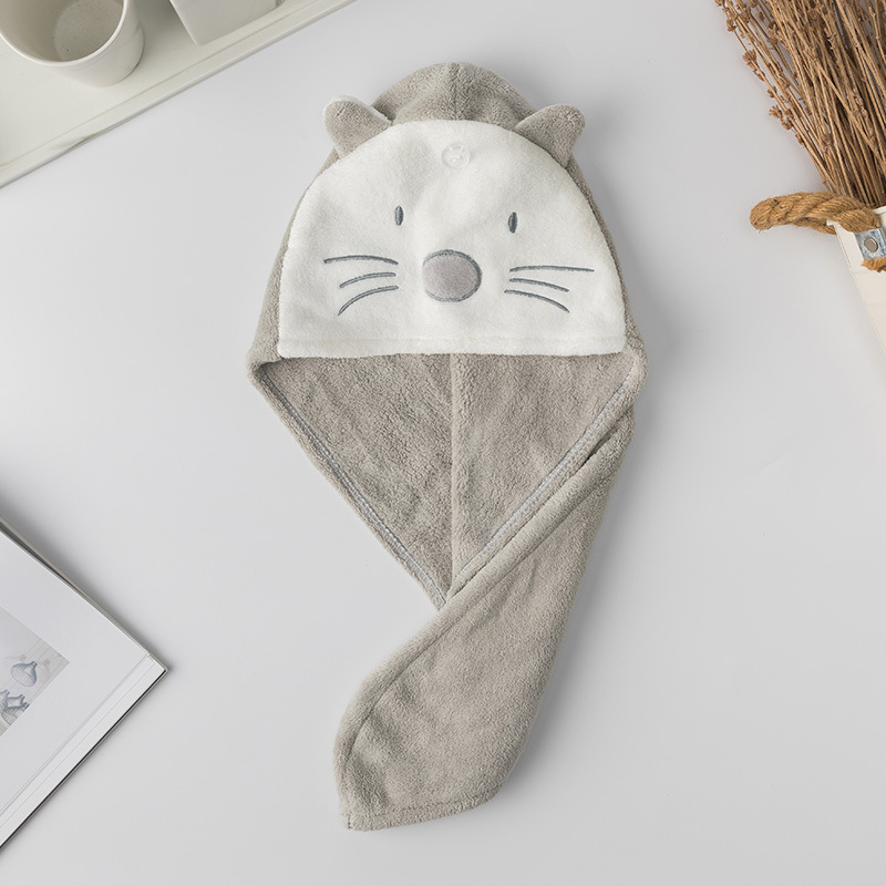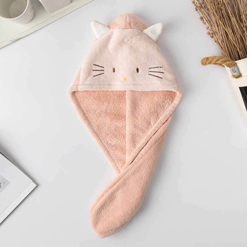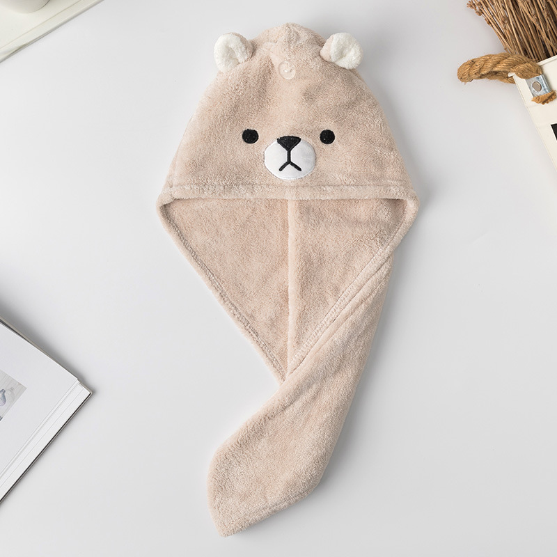 珊瑚绒干发毛巾女柔软吸水加厚可爱卡通刺绣成人浴帽动物干发帽女