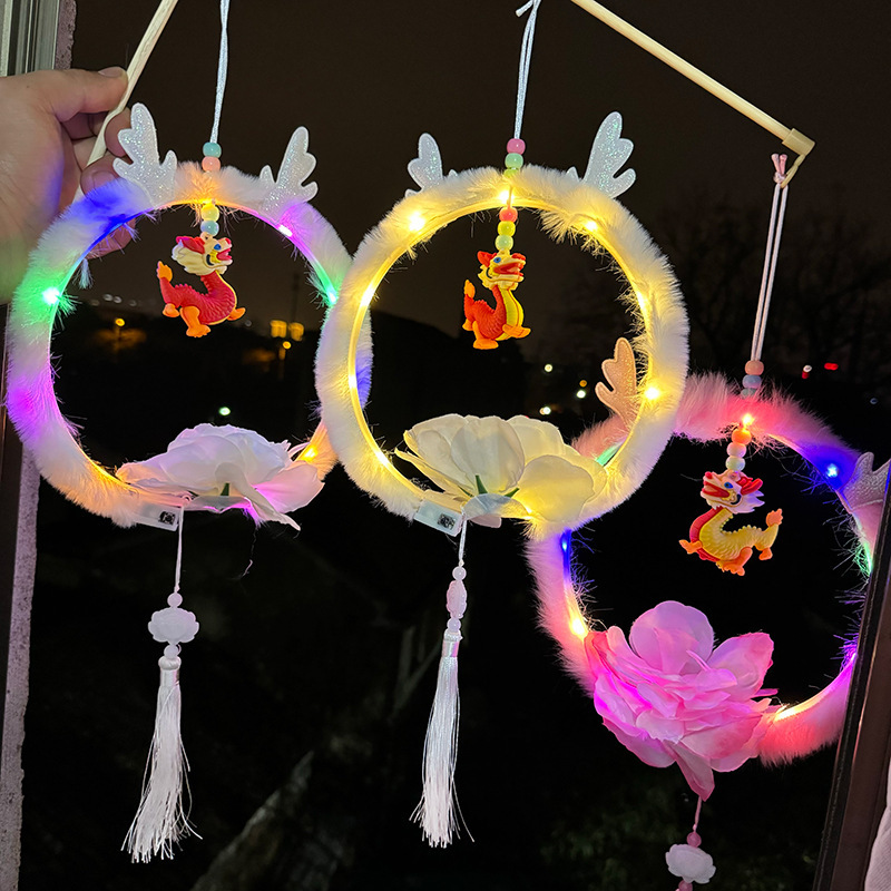 新款发光手提蛇年毛绒灯笼元宵节卡通花灯景区地摊批发小玩具礼品