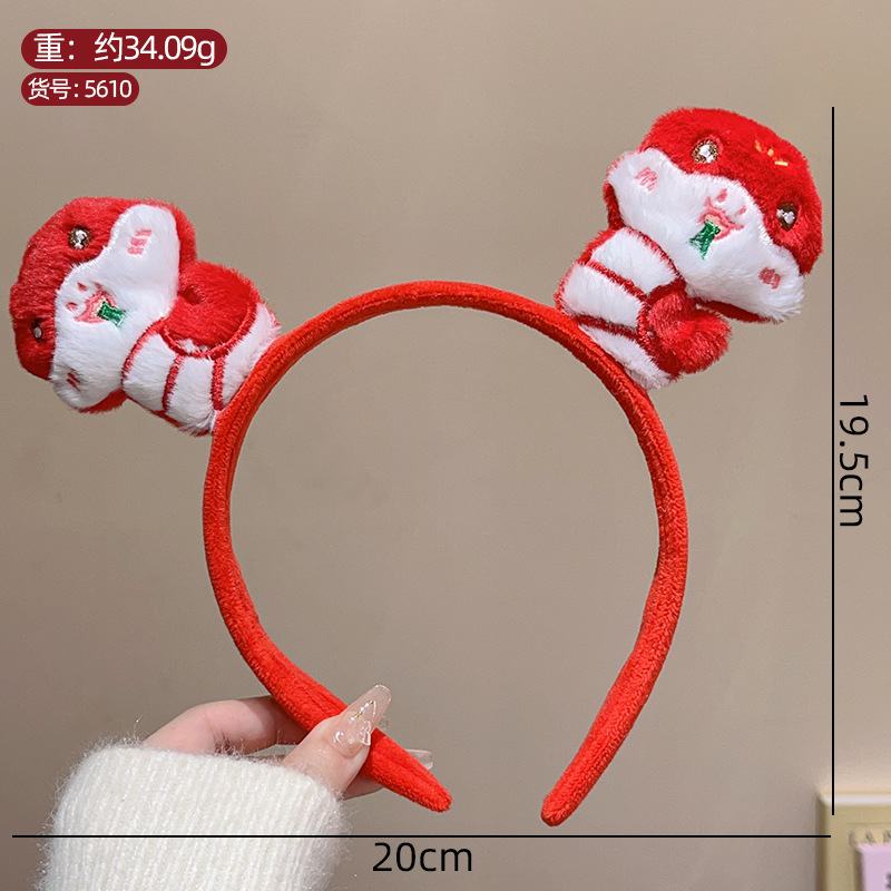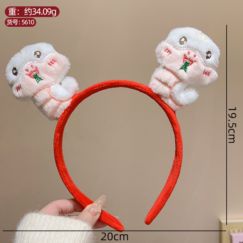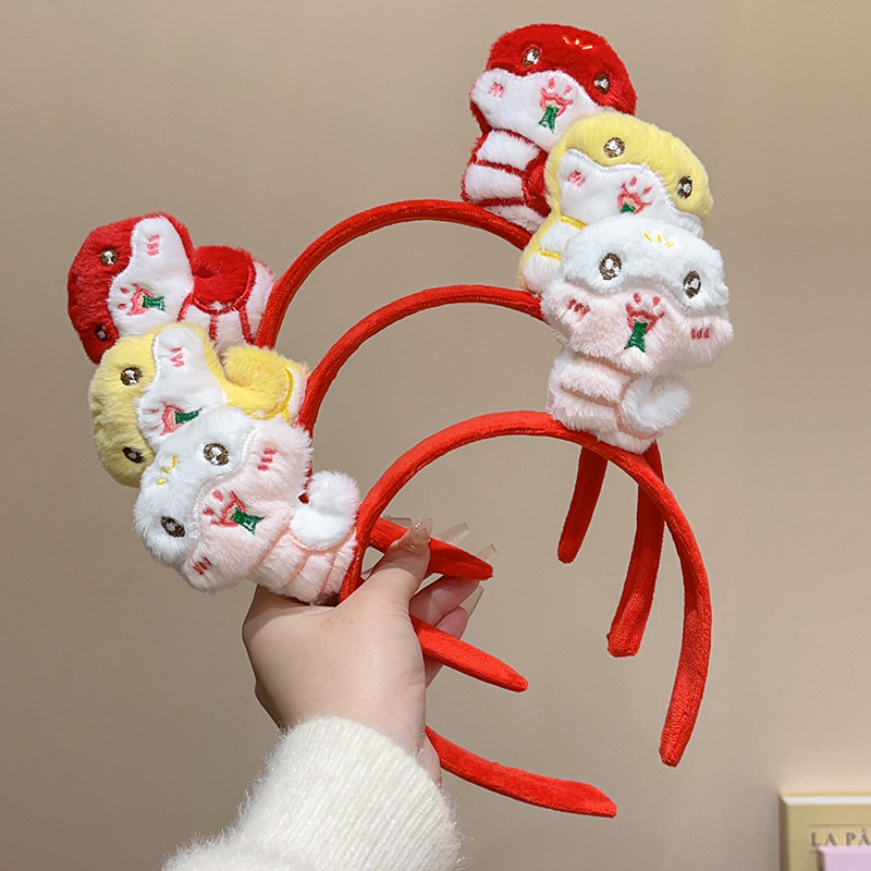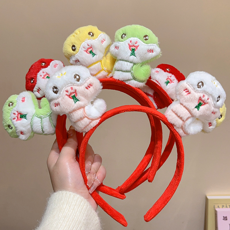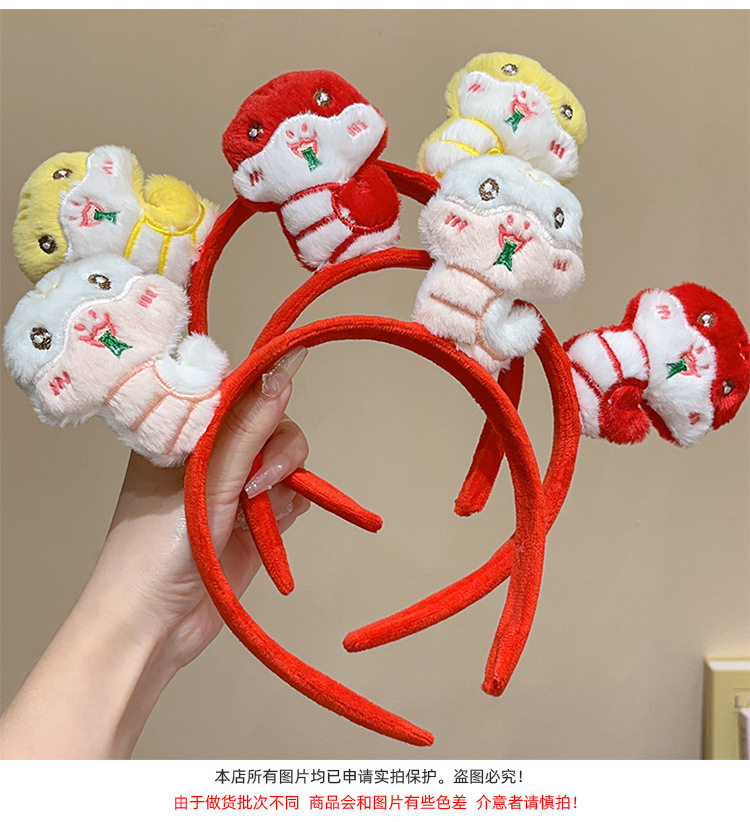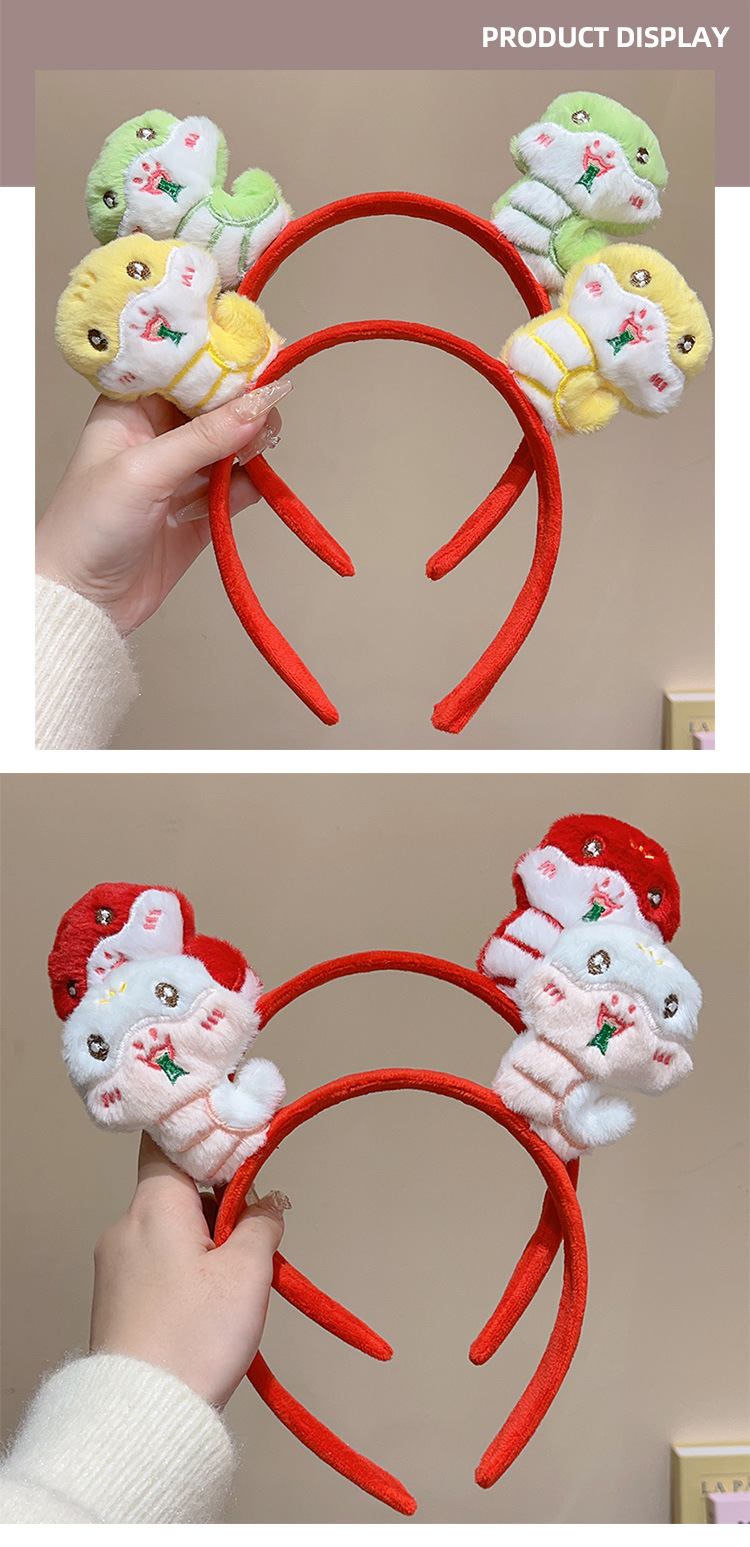 2025年蛇年新年发箍女红色可爱卡通小蛇毛绒头箍冬季过年头饰发饰
