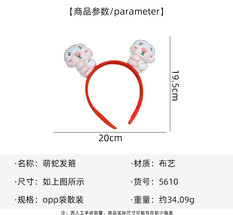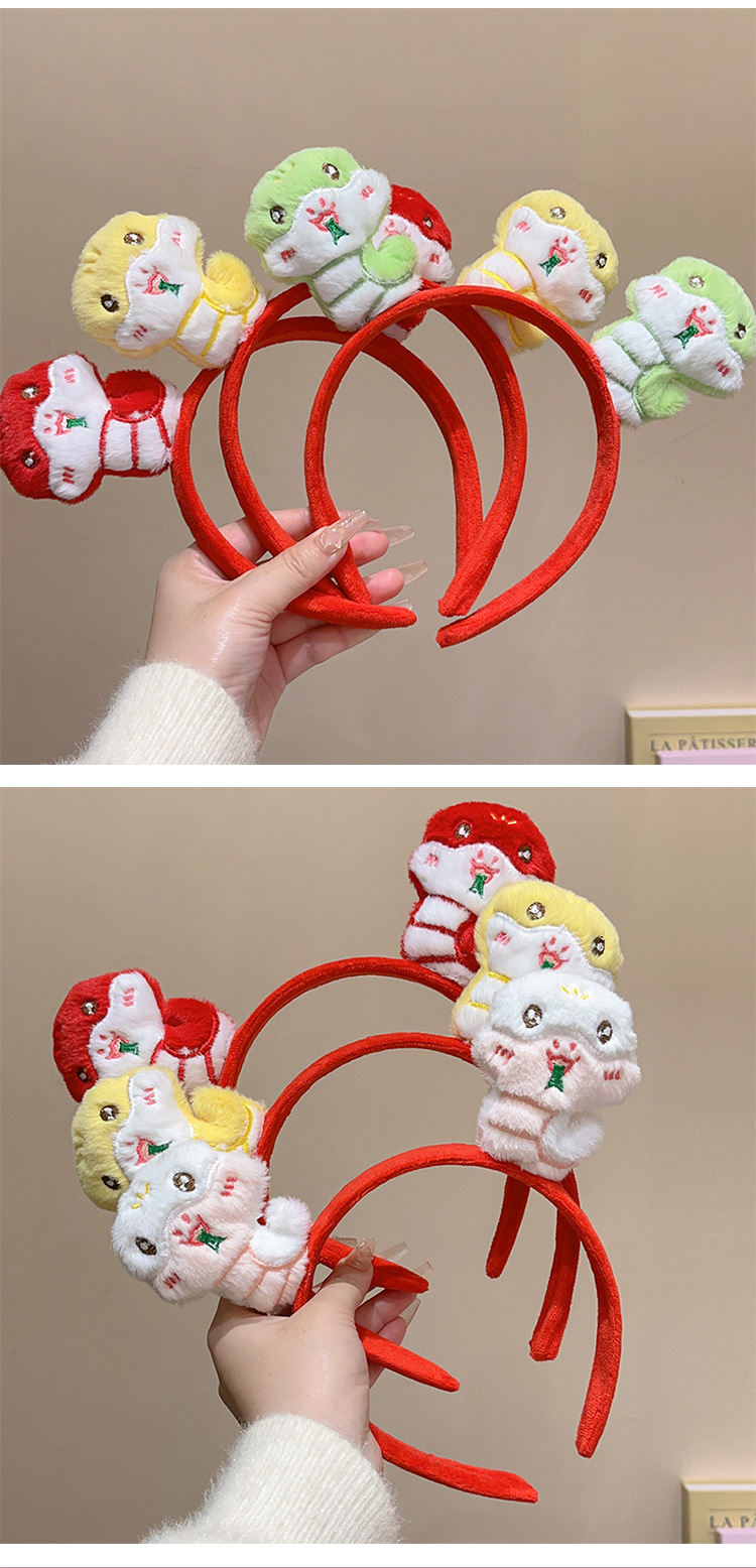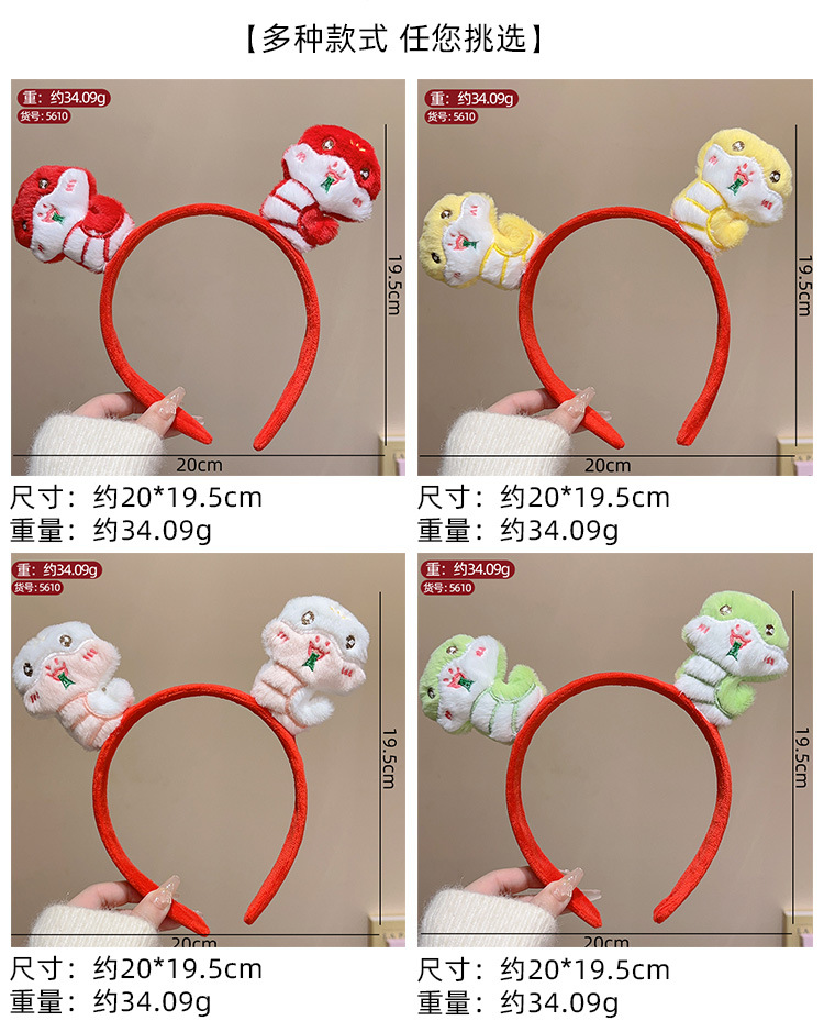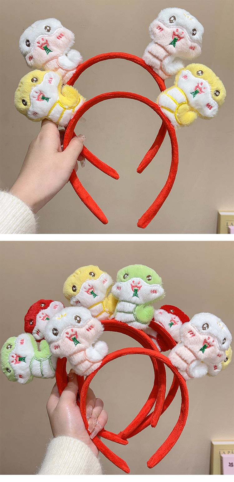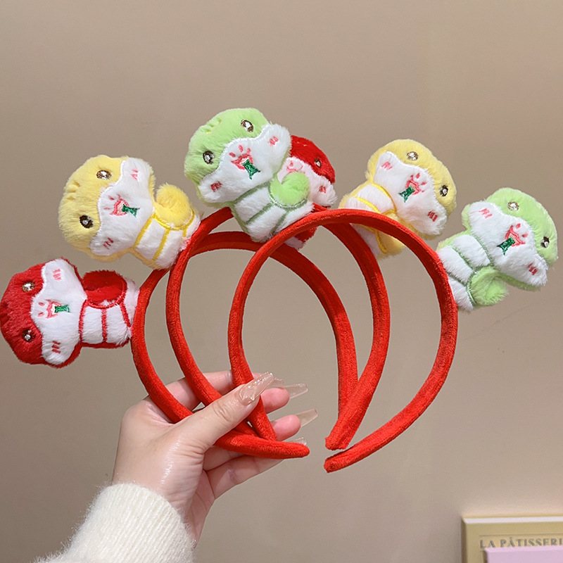 2025年蛇年新年发箍女红色可爱卡通小蛇毛绒头箍冬季过年头饰发饰