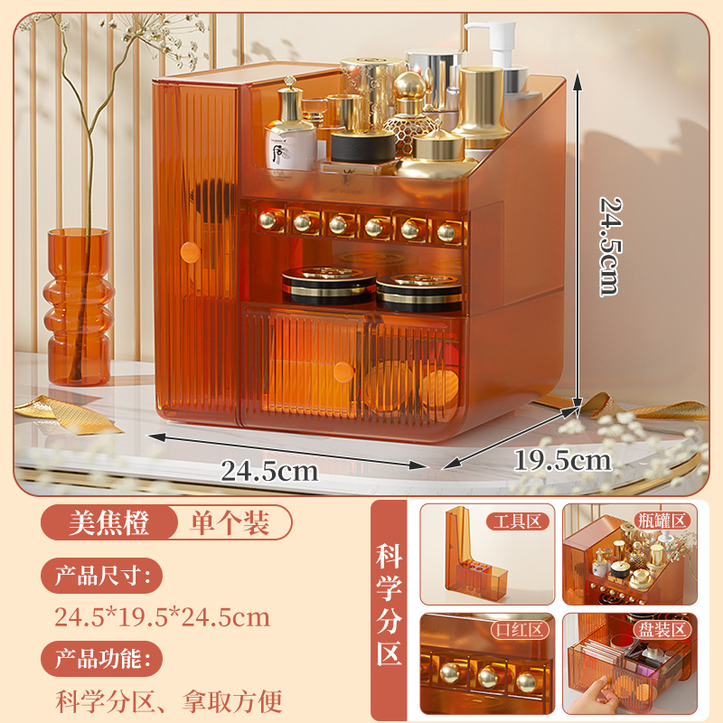 定制化妆品收纳盒防尘梳妆台护肤品收纳箱桌面置物架大容量化妆盒