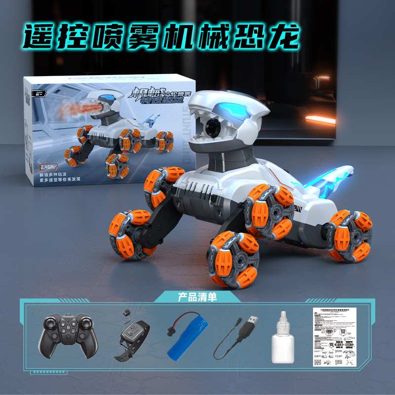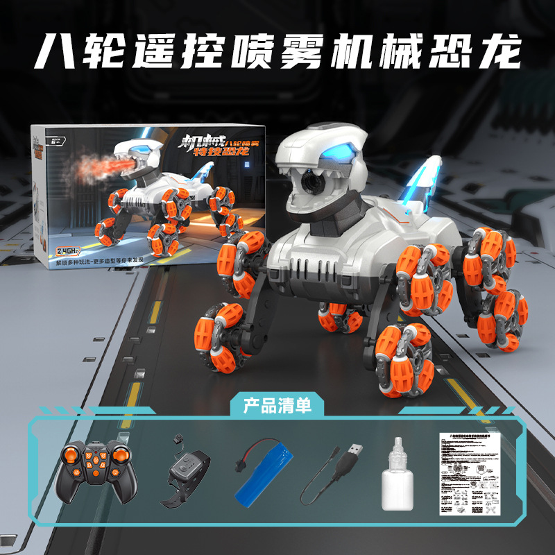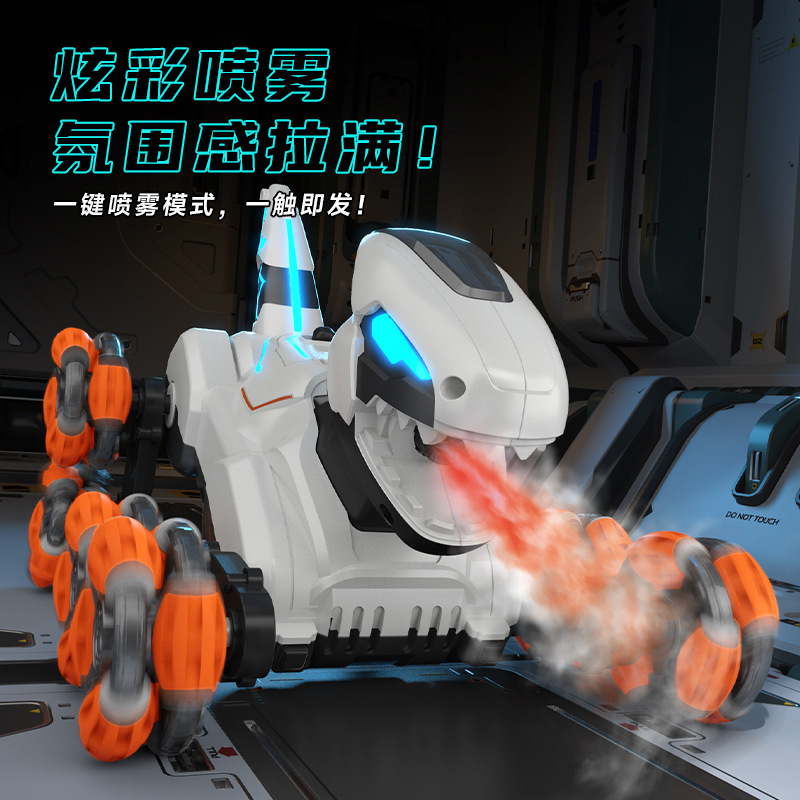 跨境儿童遥控八轮机械恐龙特技车变形喷雾攀爬手势感应电动遥控车