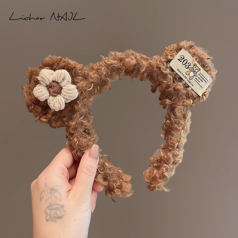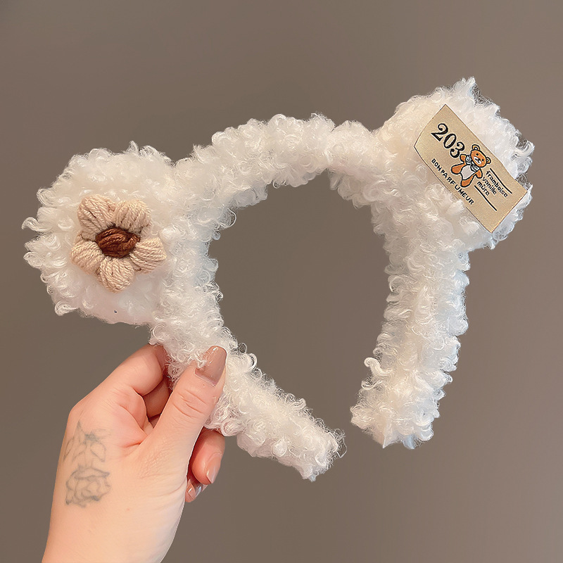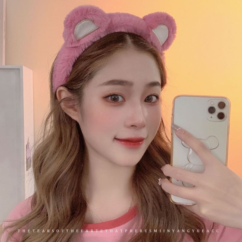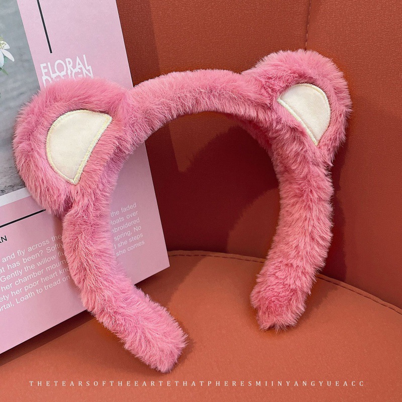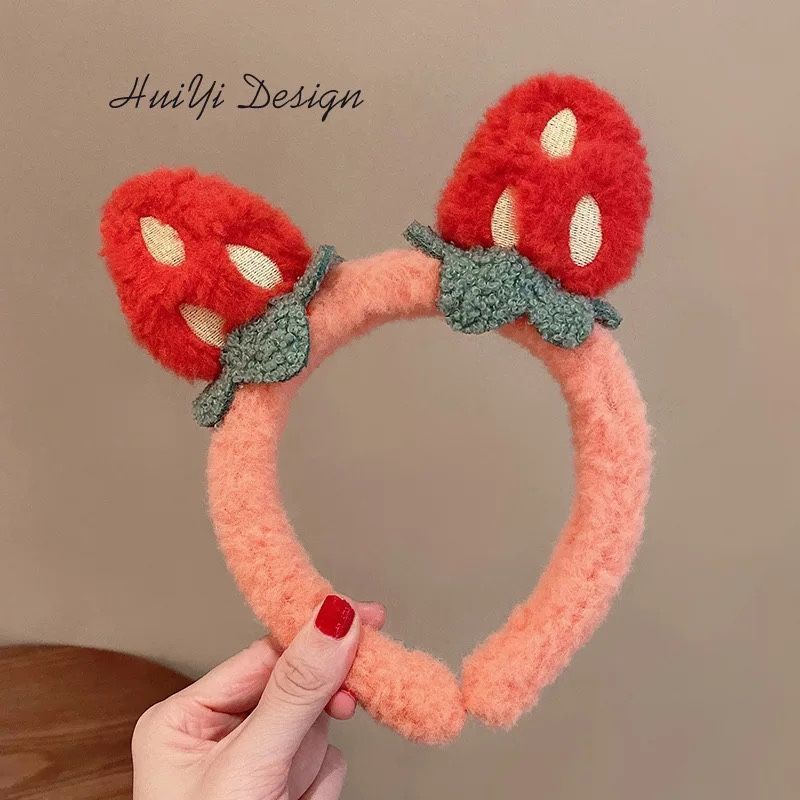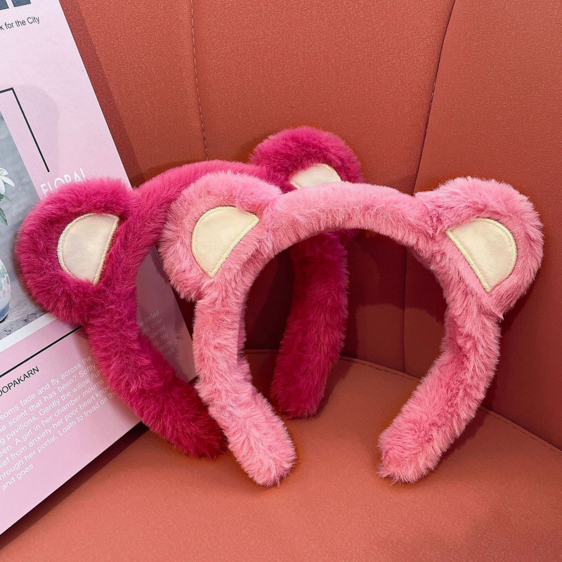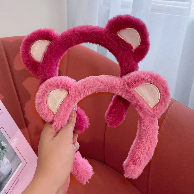 可爱毛茸茸秋冬粉色草莓熊毛绒洗脸发箍网红压发防滑发卡头箍发窟