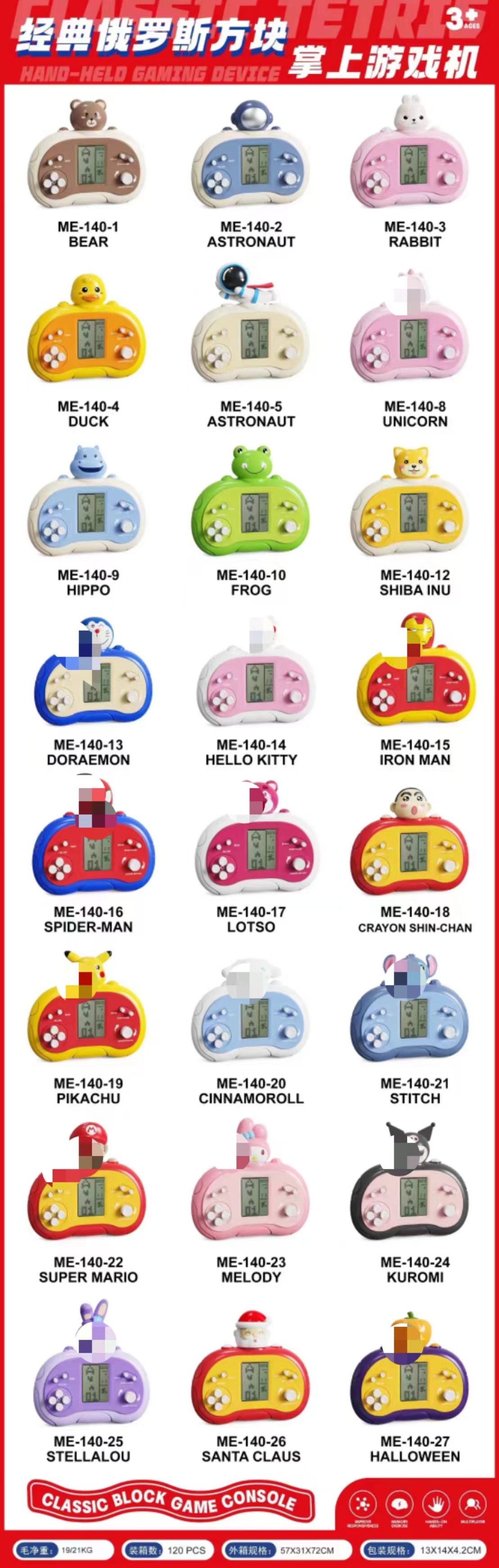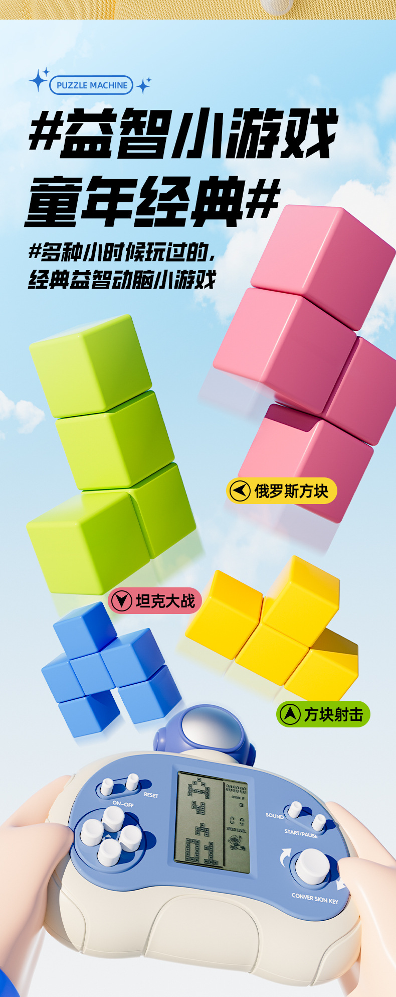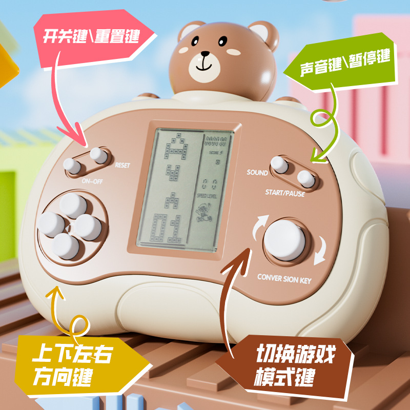 跨境儿童益智玩具掌上游戏机俄罗斯方块卡通多功能掌机益智解压