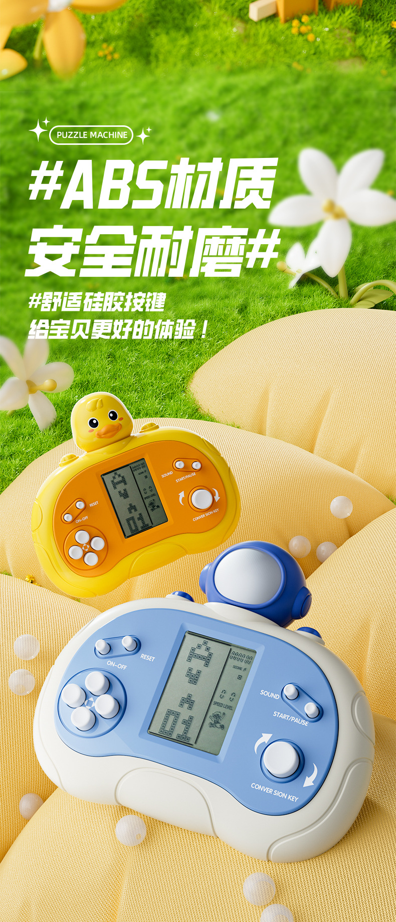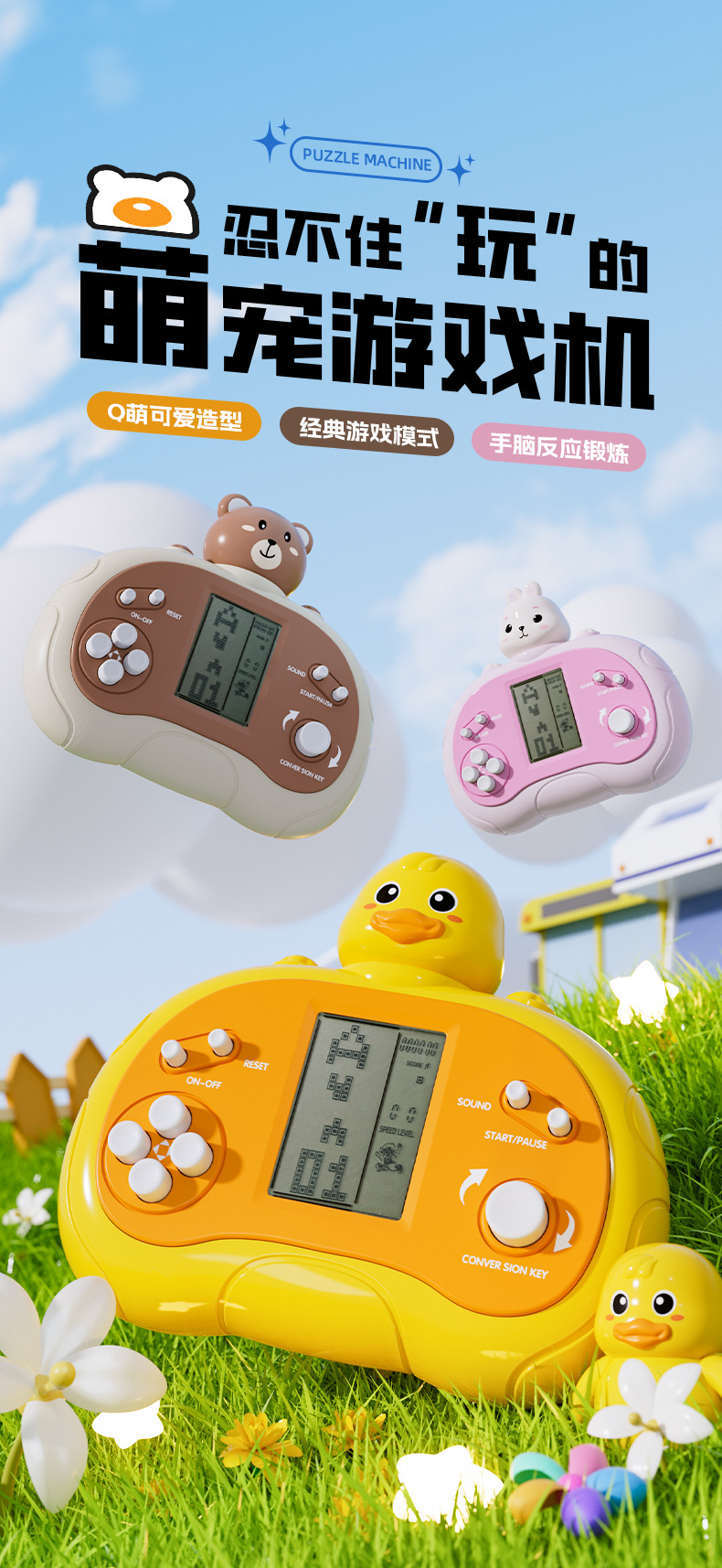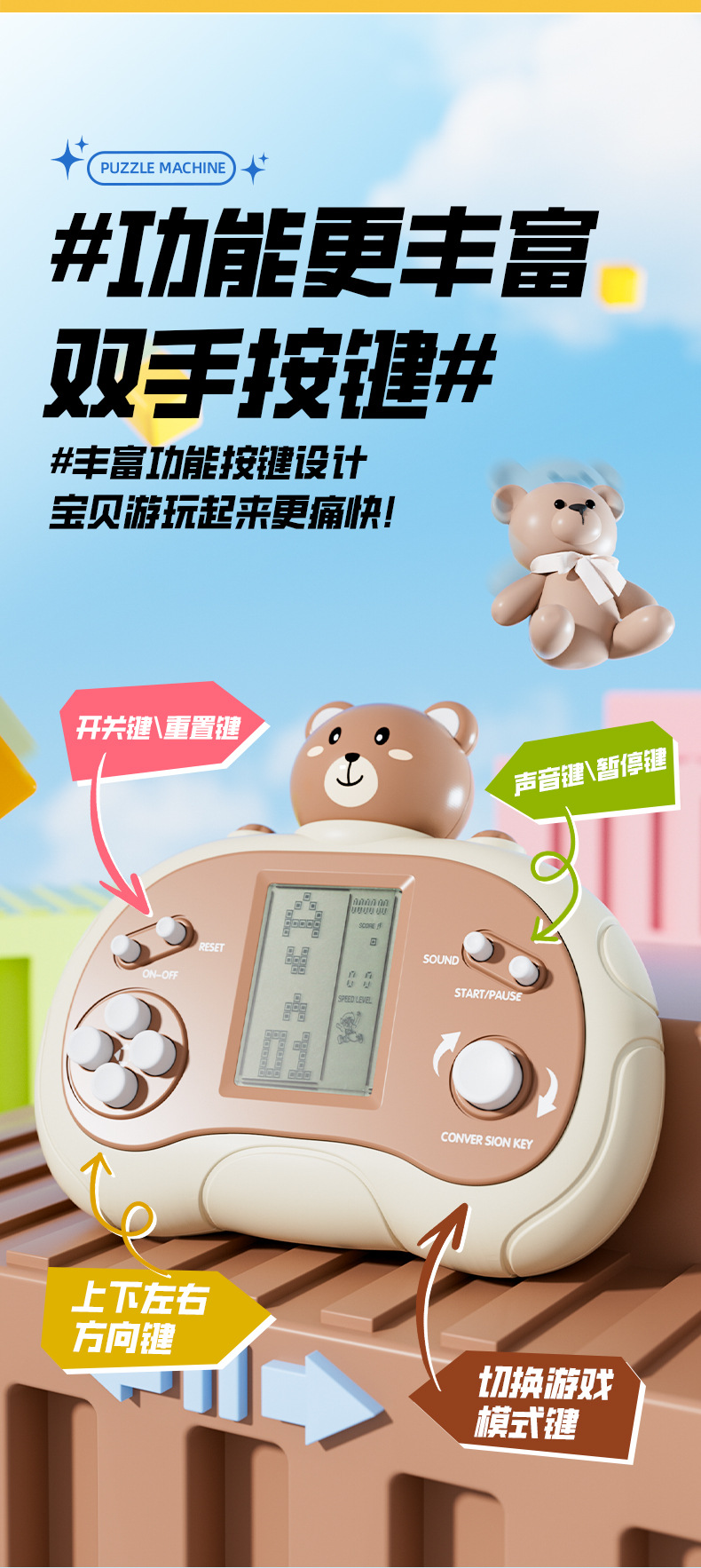 跨境儿童益智玩具掌上游戏机俄罗斯方块卡通多功能掌机益智解压