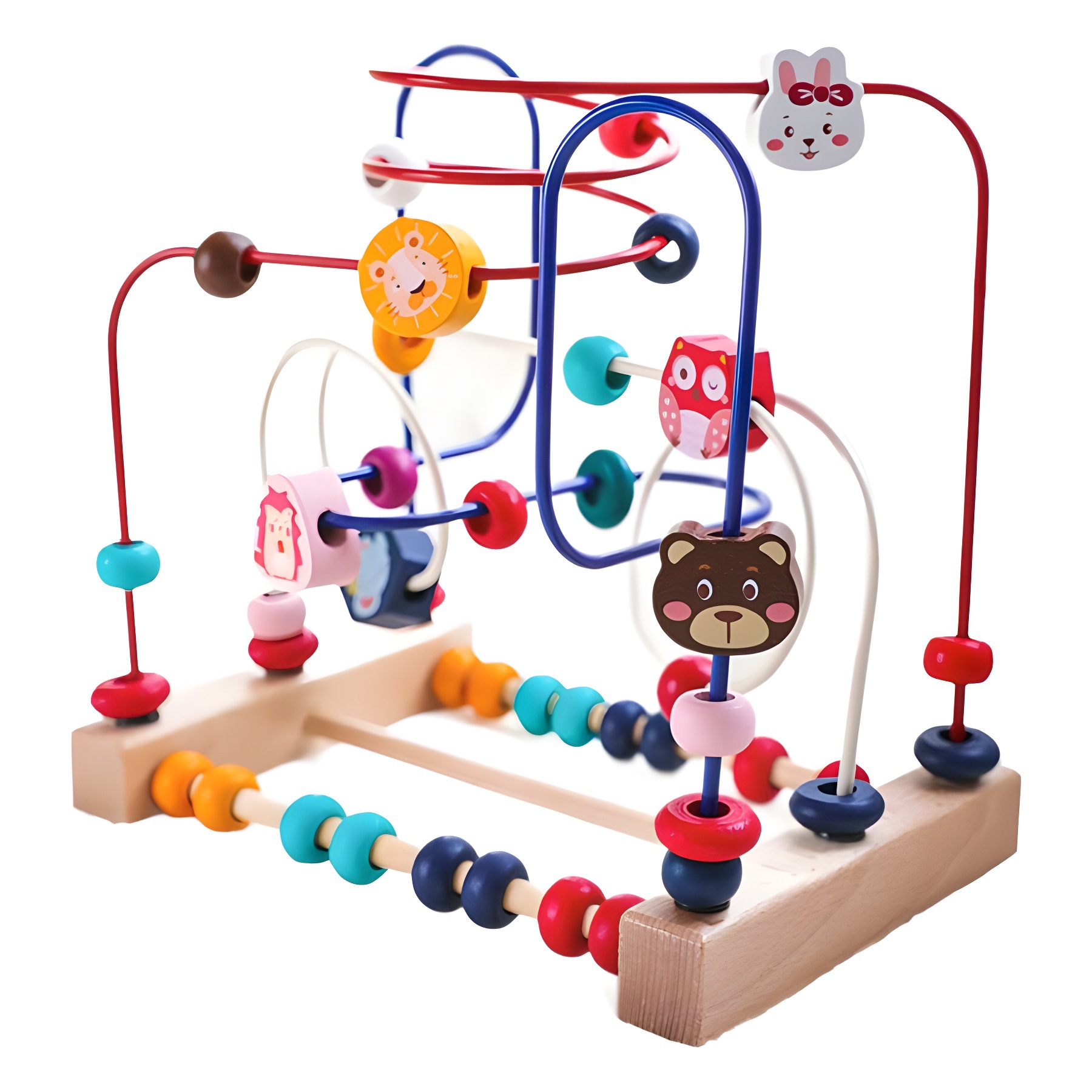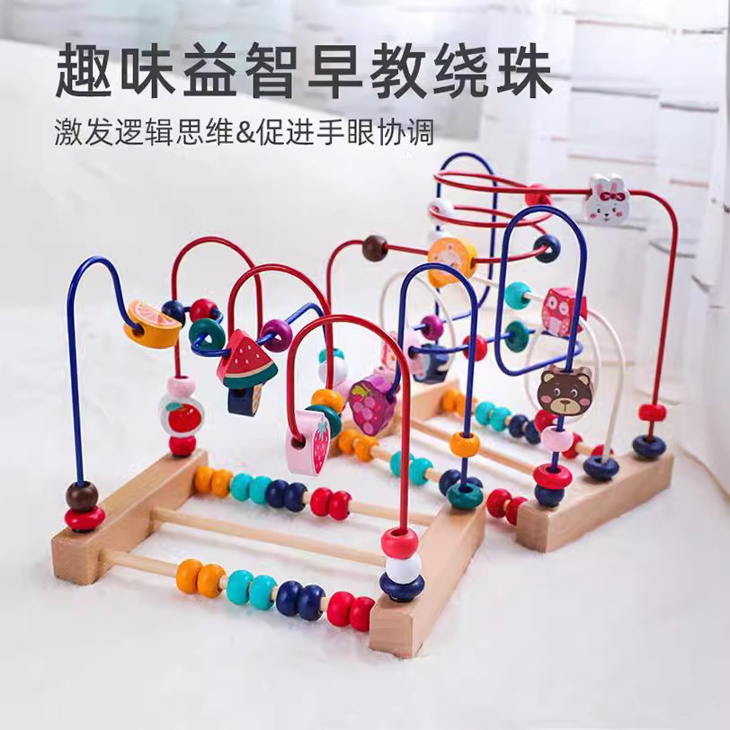 三线动物绕珠 木制儿童早教益智水果积木手眼协调锻炼玩具跨境
