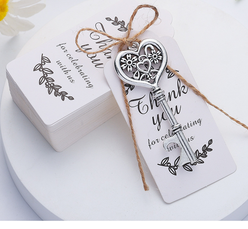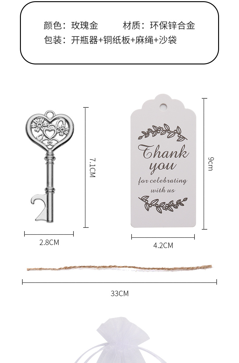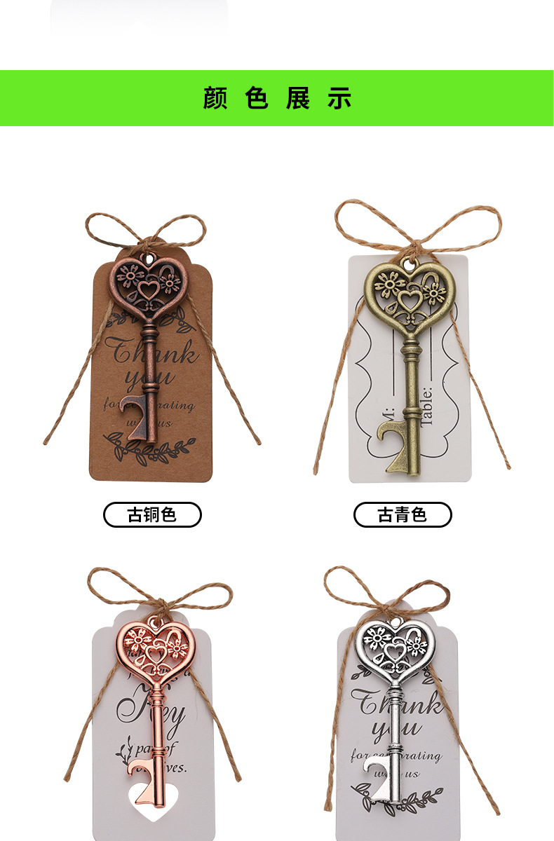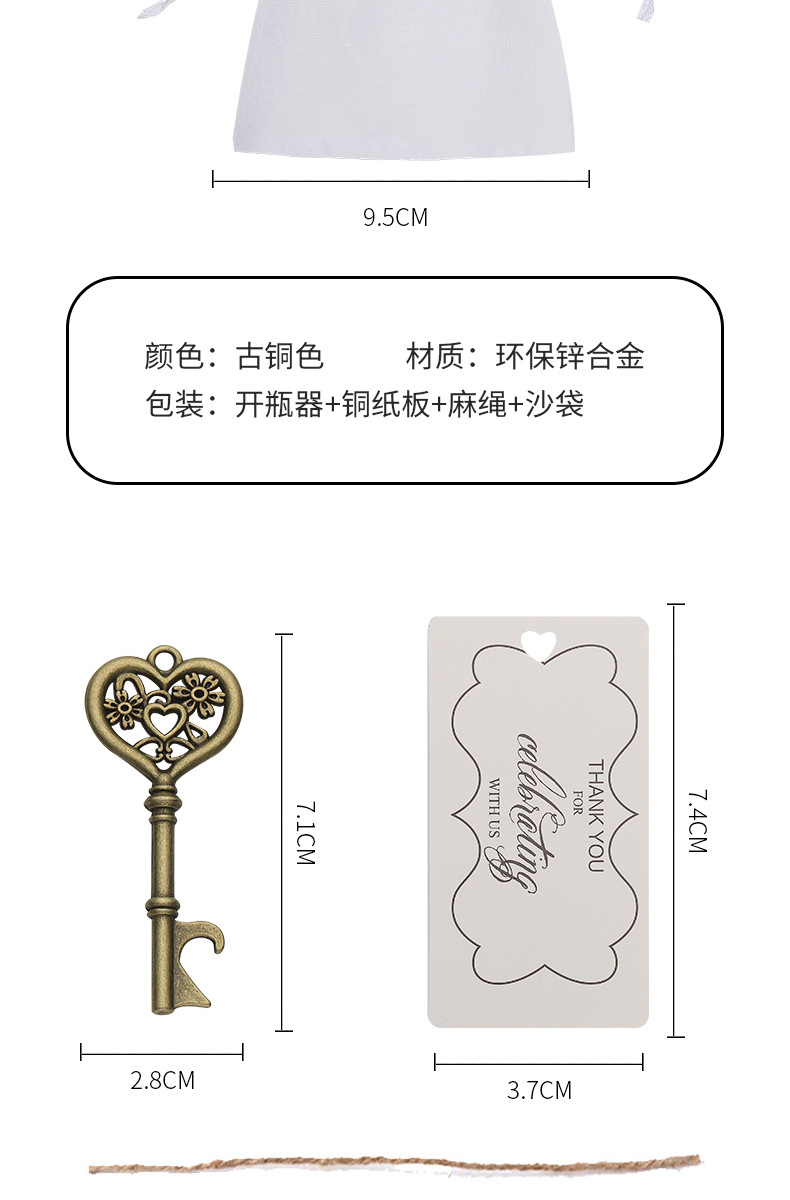 品名:婚庆创意回礼礼品复古钥匙开瓶器配麻绳卡片