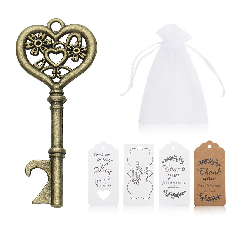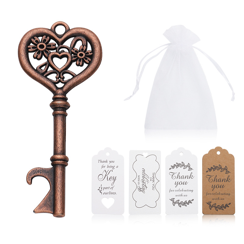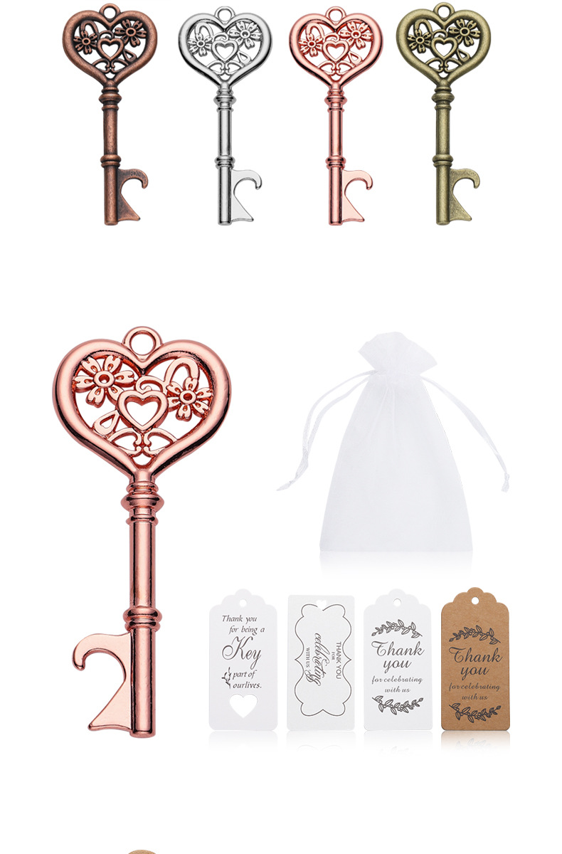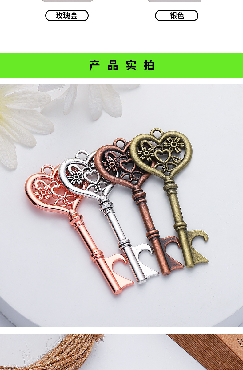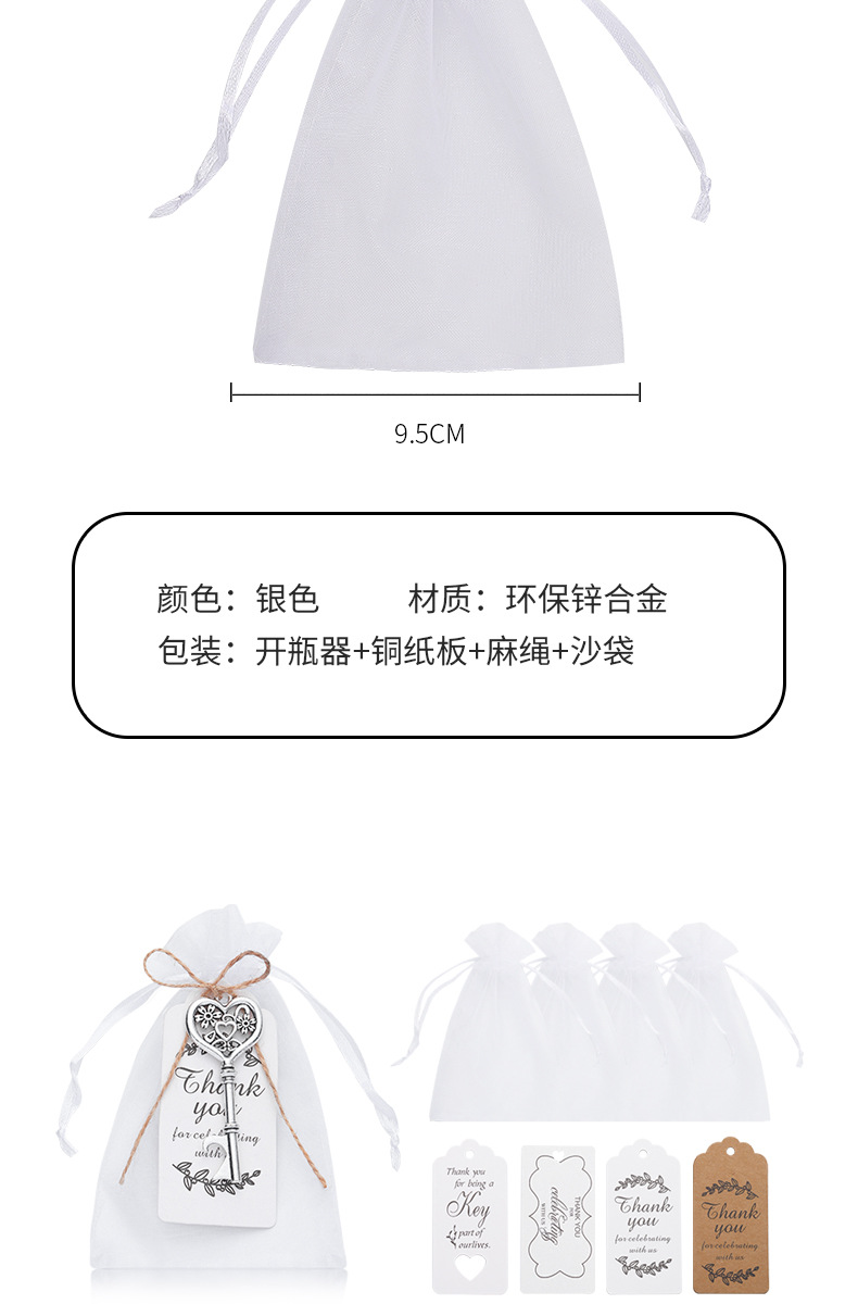 品名:婚庆创意回礼礼品复古钥匙开瓶器配麻绳卡片