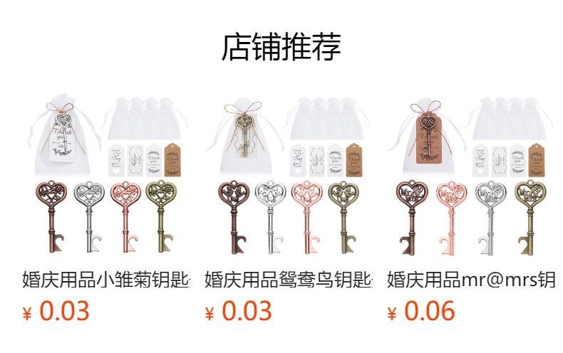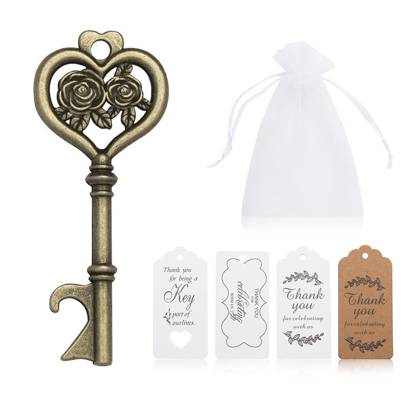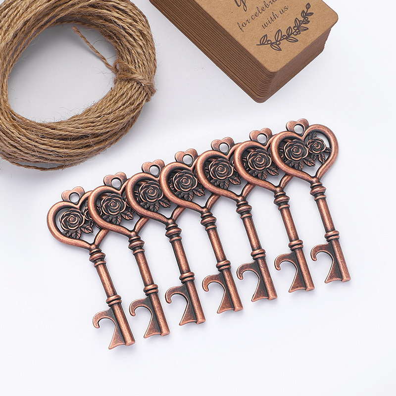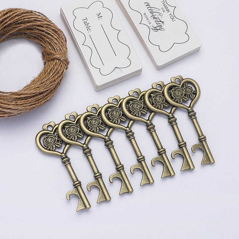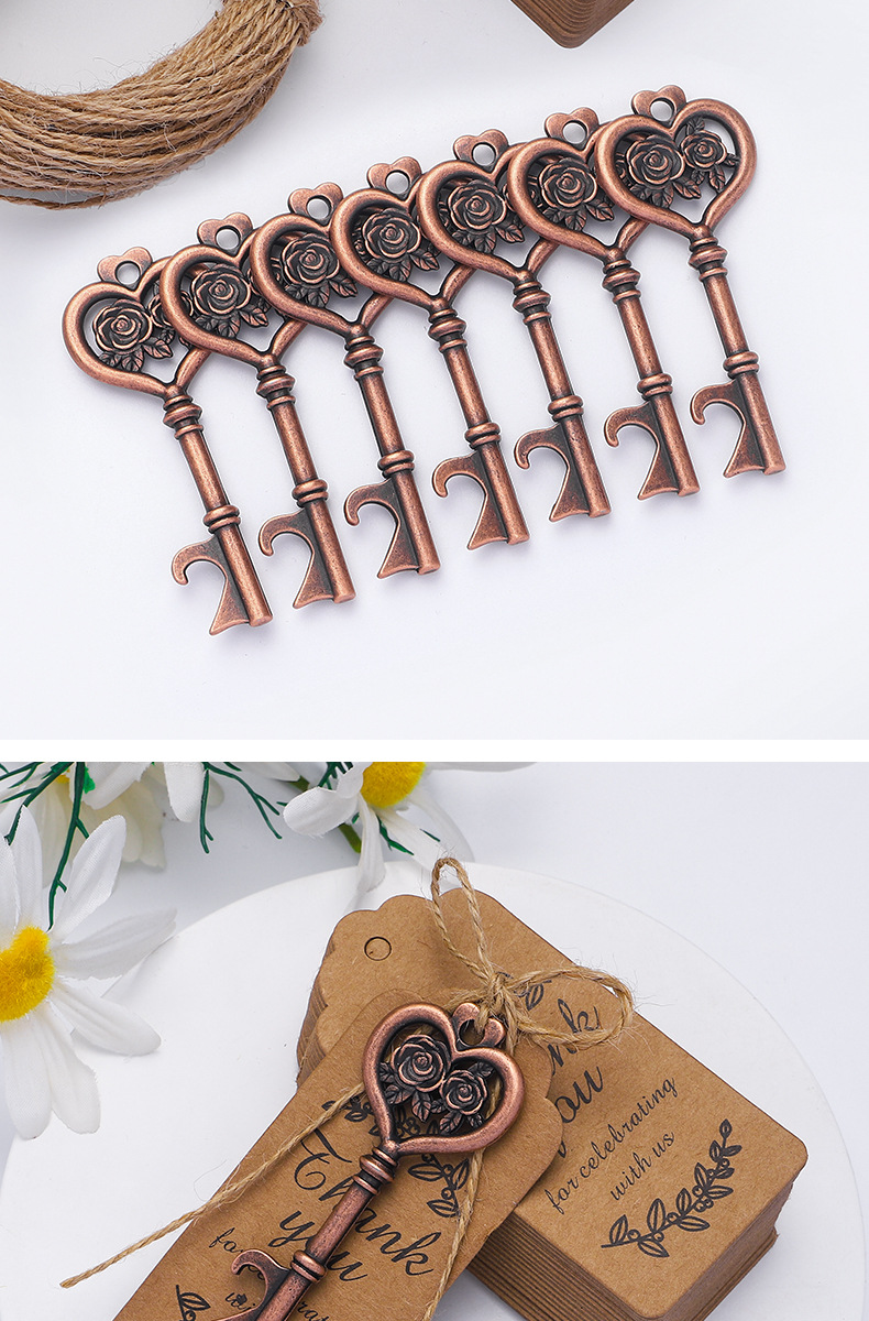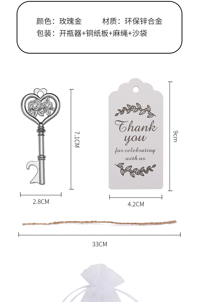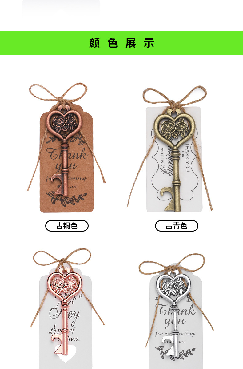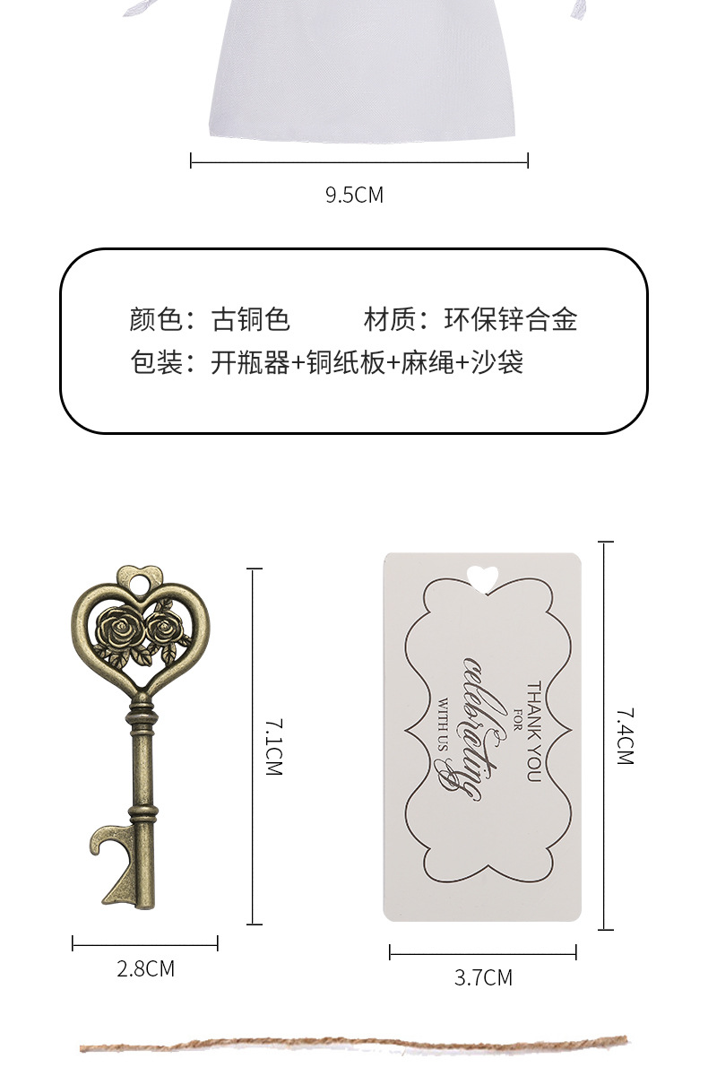 品名:婚庆创意回礼礼品复古钥匙开瓶器配麻绳卡片
