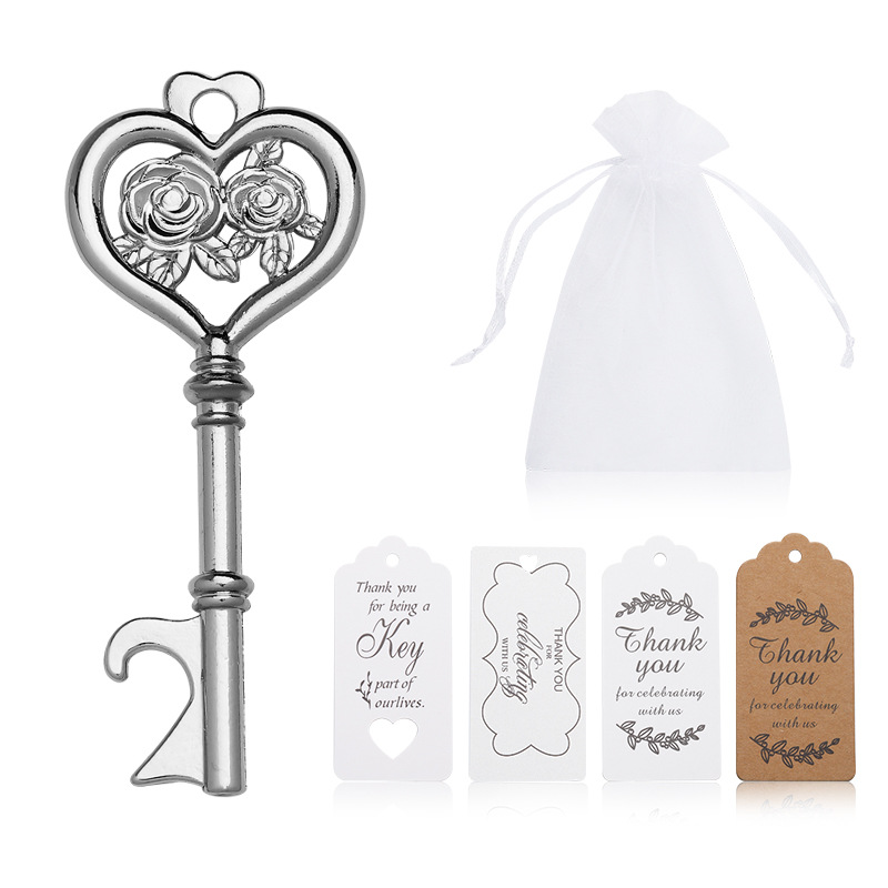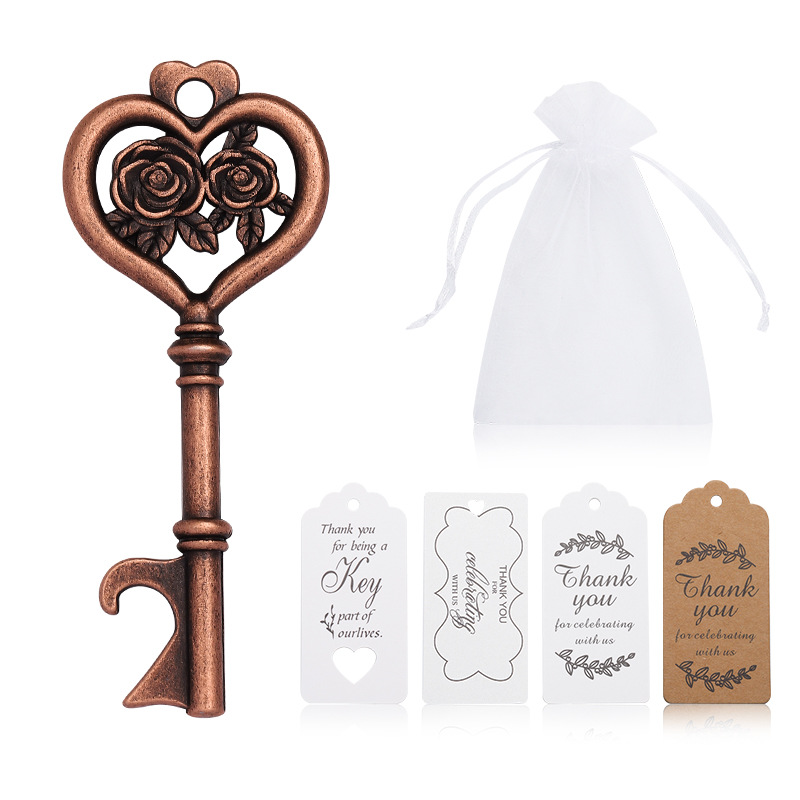 婚庆用品玫瑰款钥匙开瓶器挂件创意酒店婚礼装饰啤酒小挂饰钥匙扣