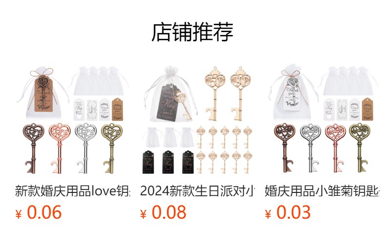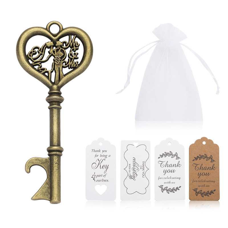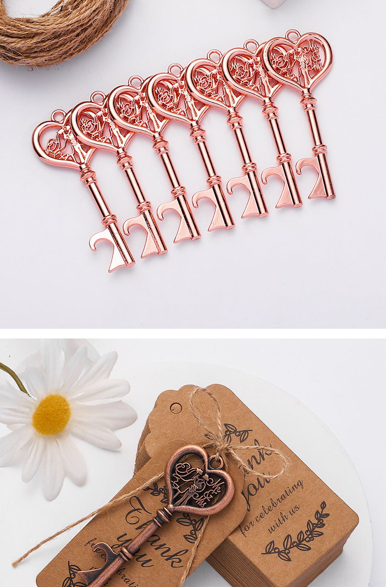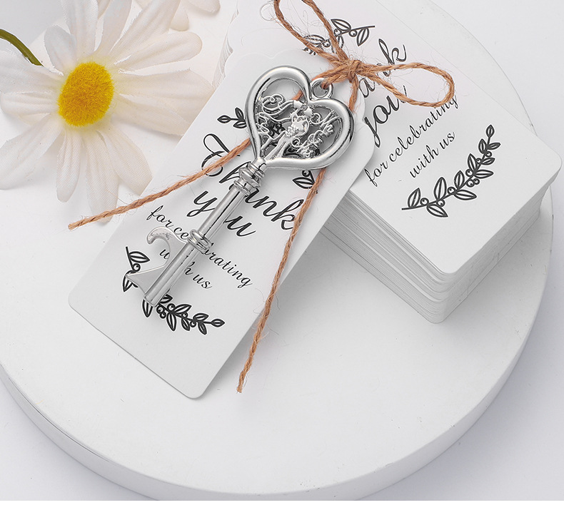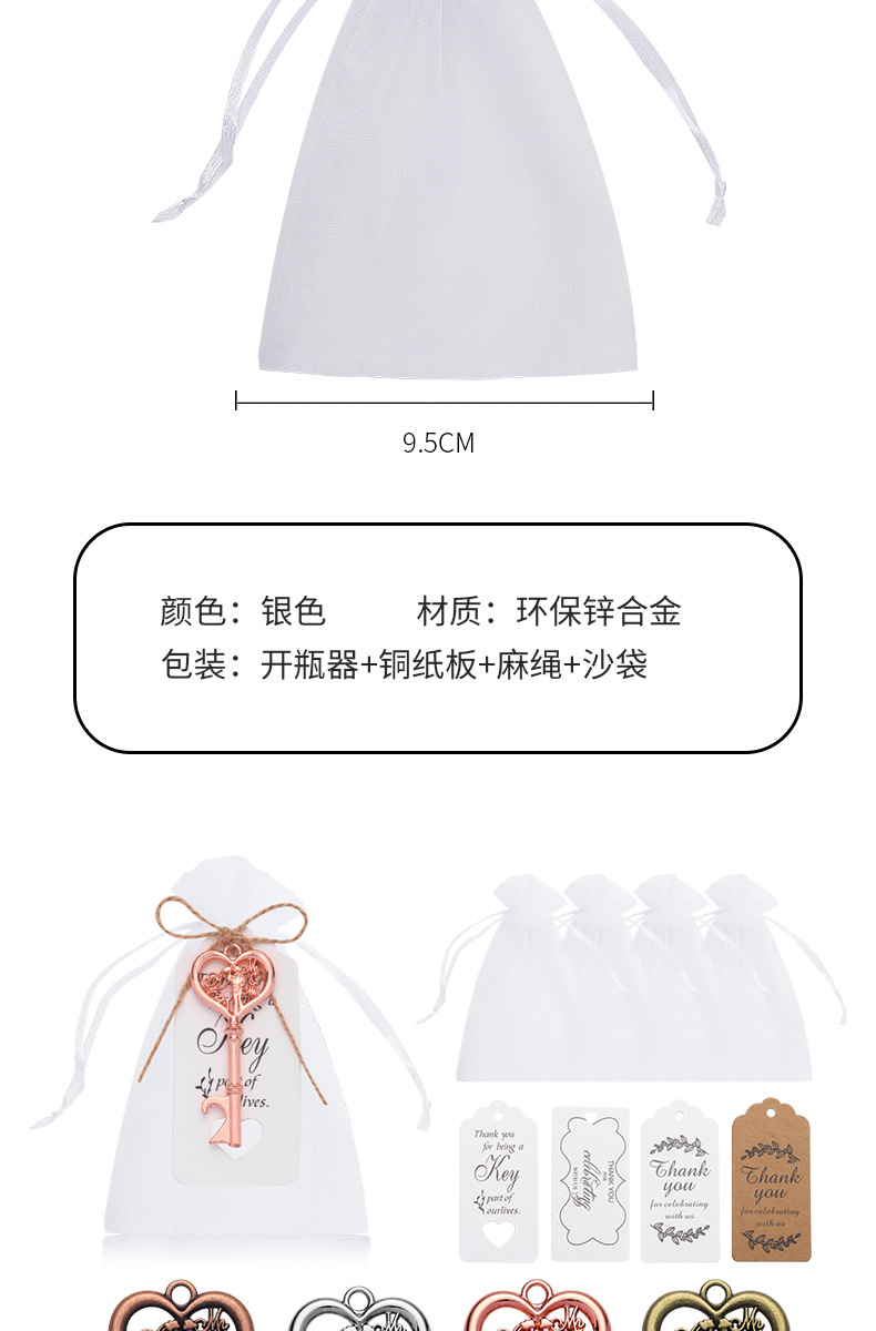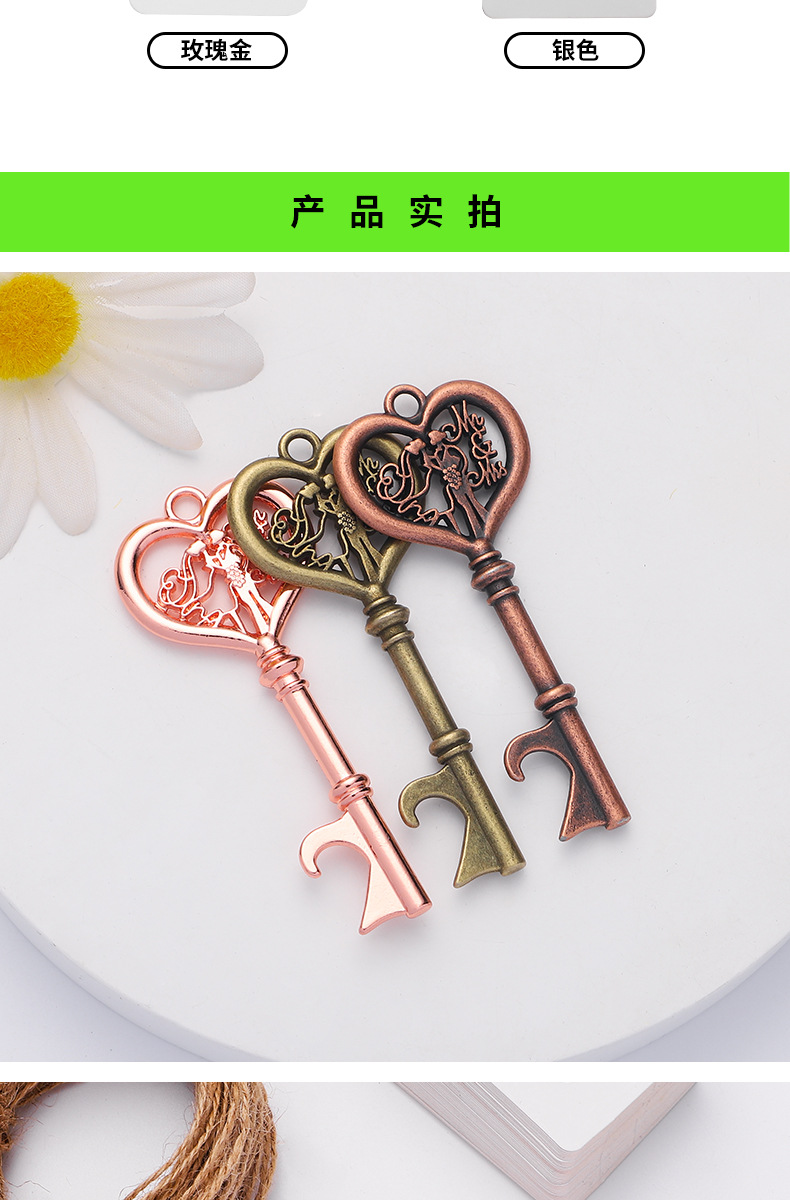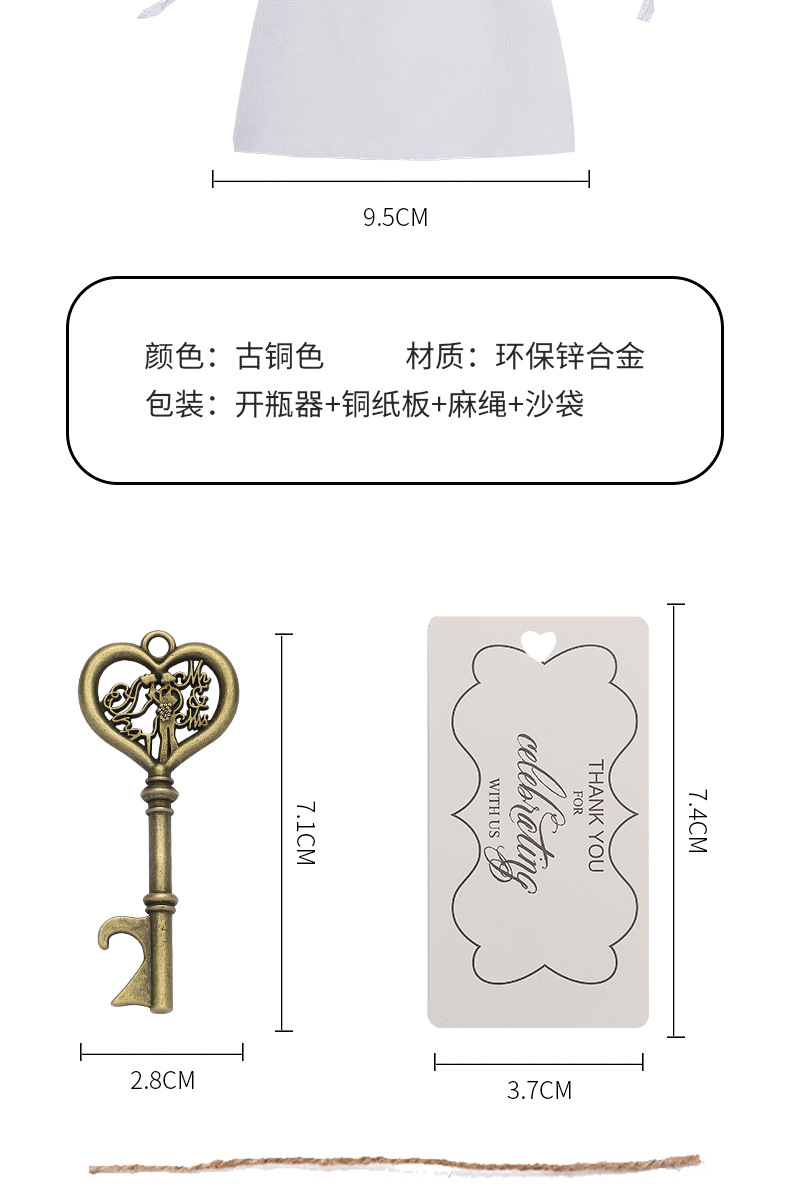 品名:婚庆创意回礼礼品复古钥匙开瓶器配麻绳卡片