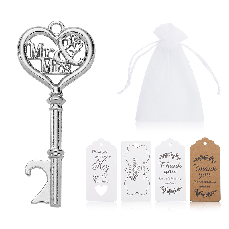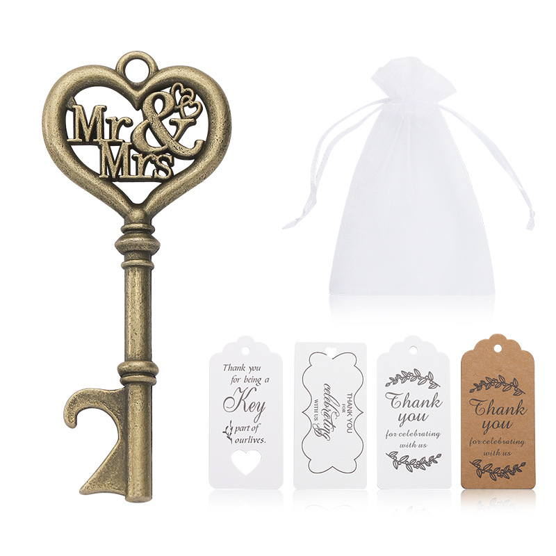 品名:婚庆创意回礼礼品复古钥匙开瓶器配麻绳卡片