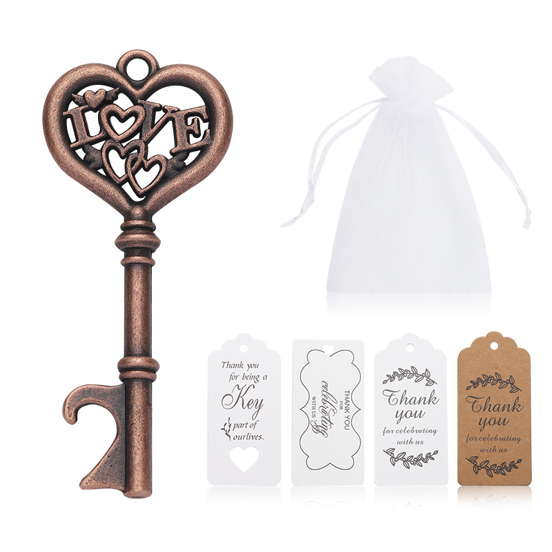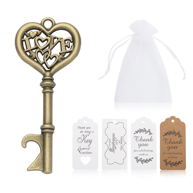 品名:婚庆创意回礼礼品复古钥匙开瓶器配麻绳卡片