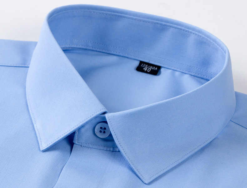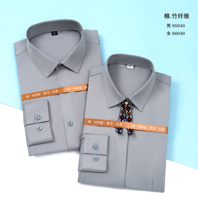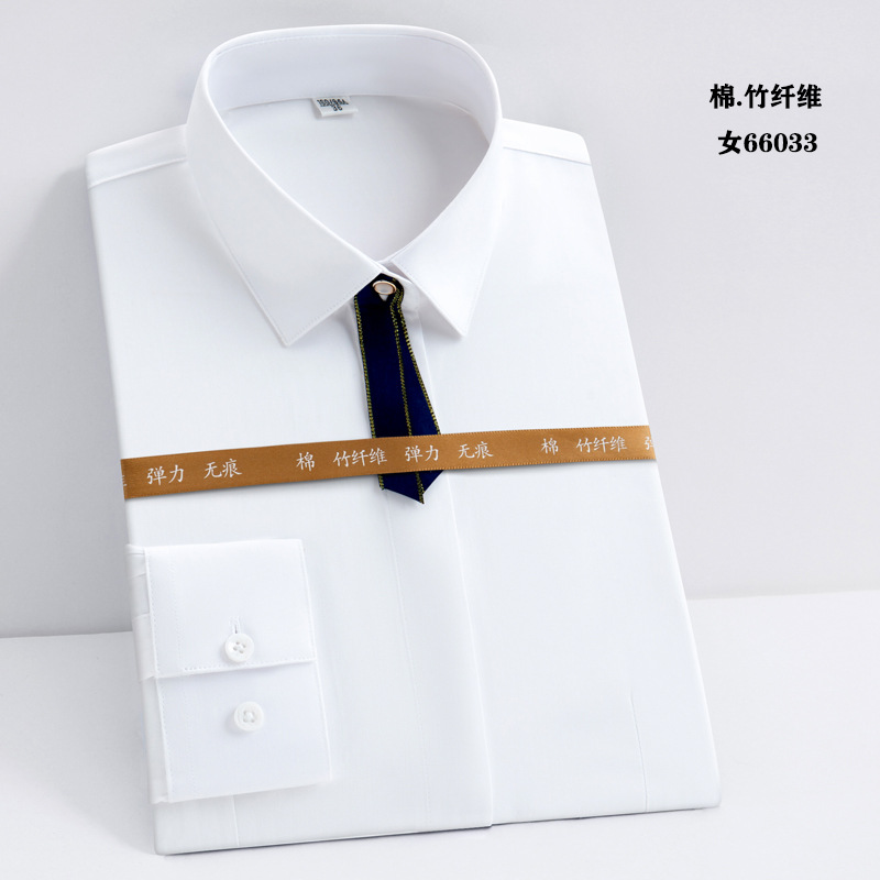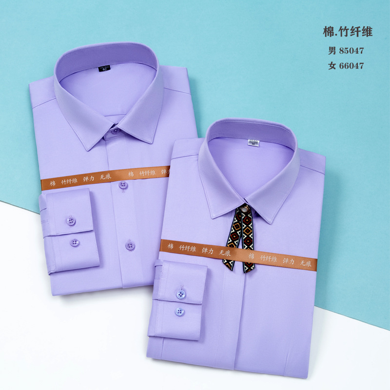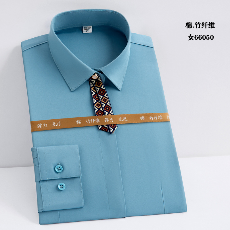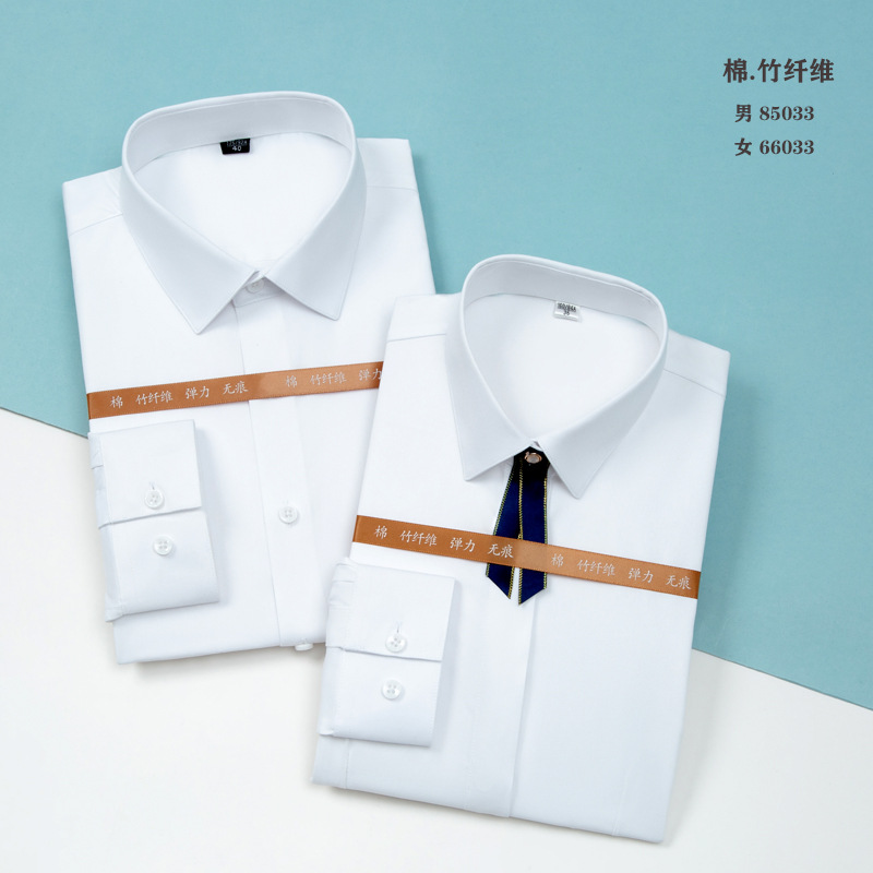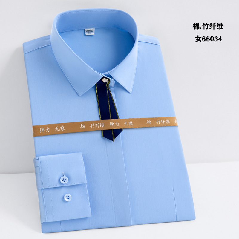白衬衫职业男女同款长袖衬衫蓝色修身绣logo竹纤维长弹力长袖衬衫