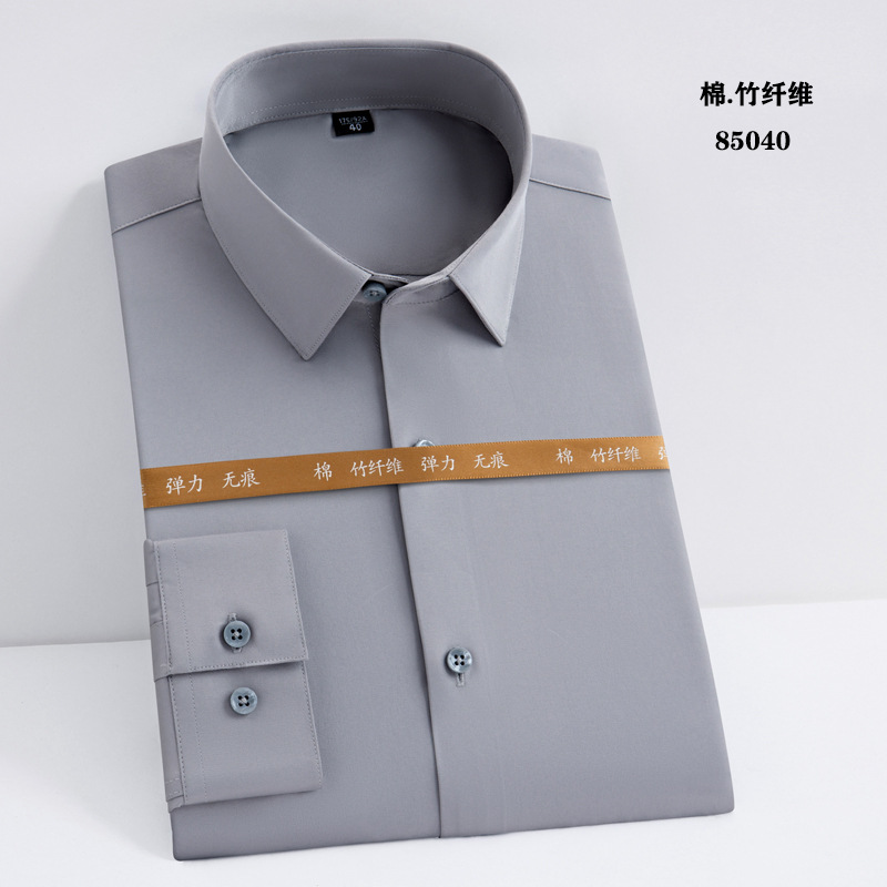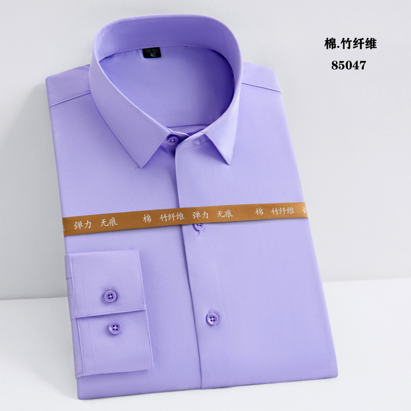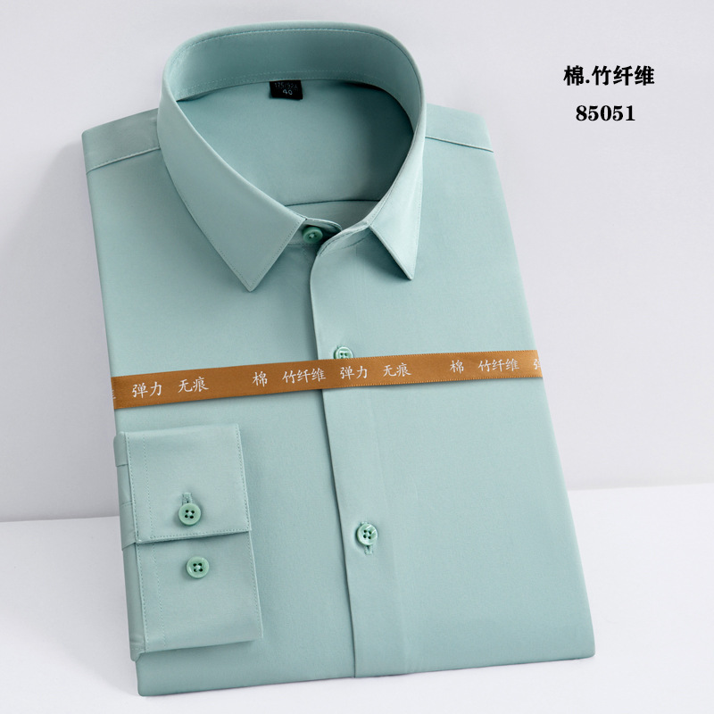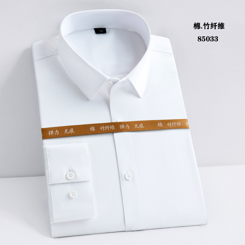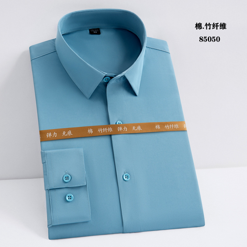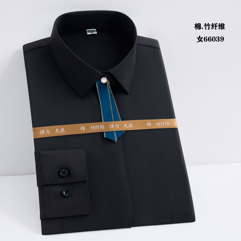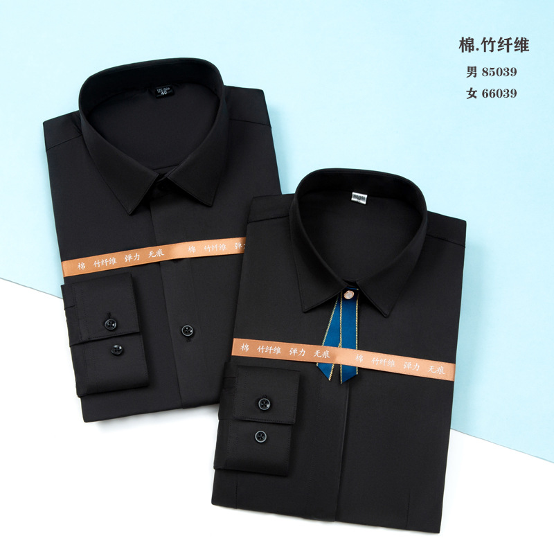 白衬衫职业男女同款长袖衬衫蓝色修身绣logo竹纤维长弹力长袖衬衫