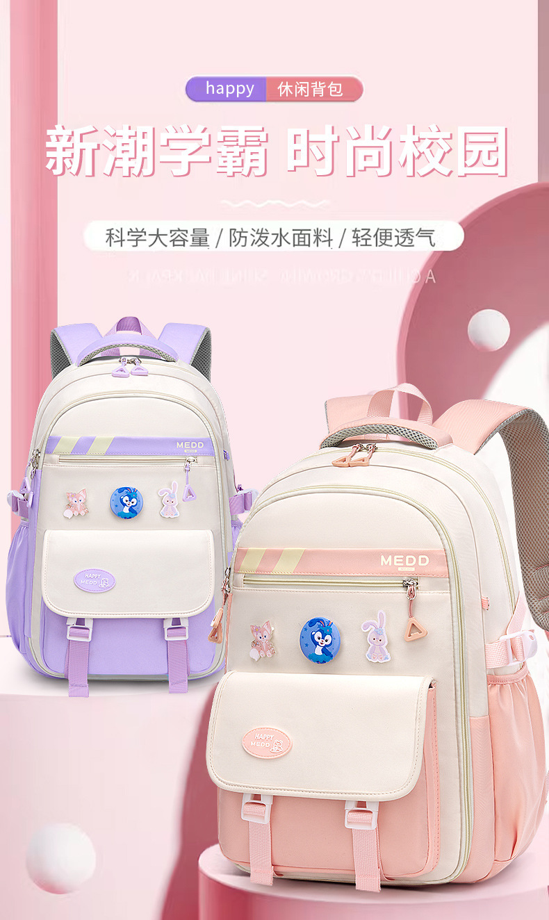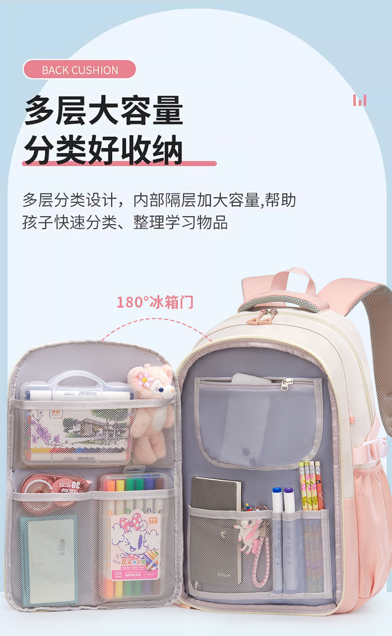 网红爆款冰箱门3-6年级初高中生书包女防水大容量轻便减负双肩包