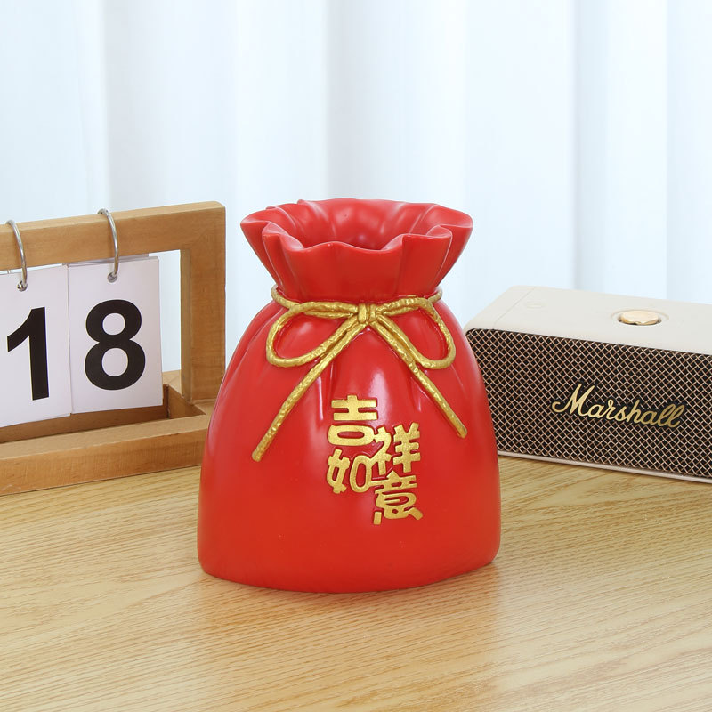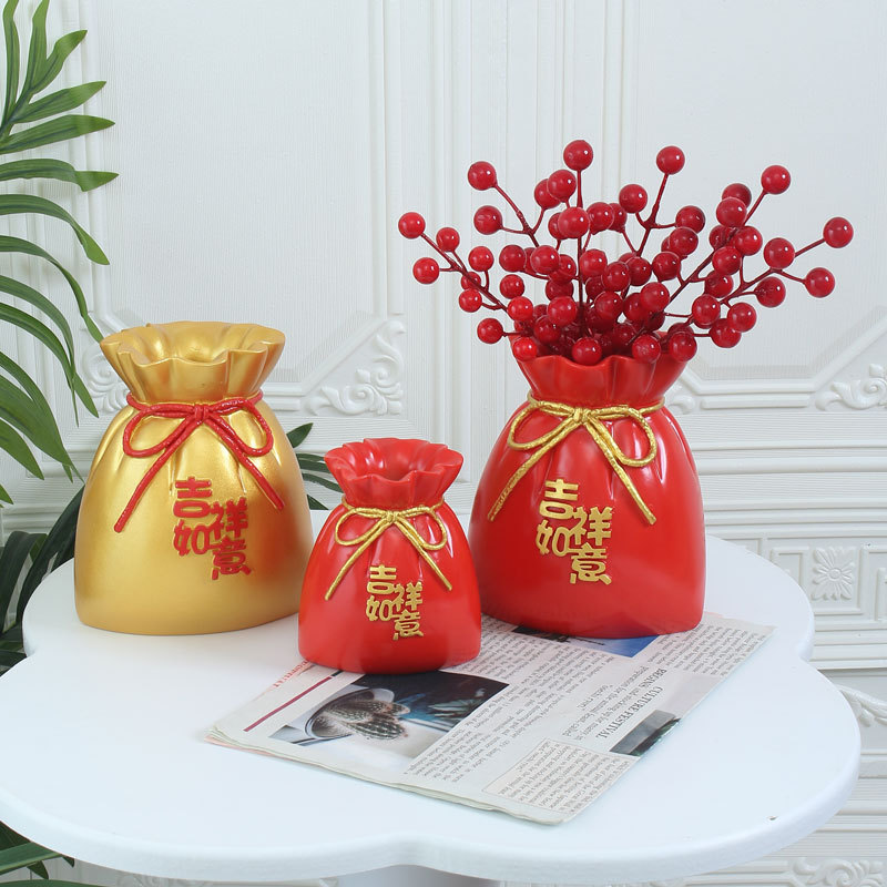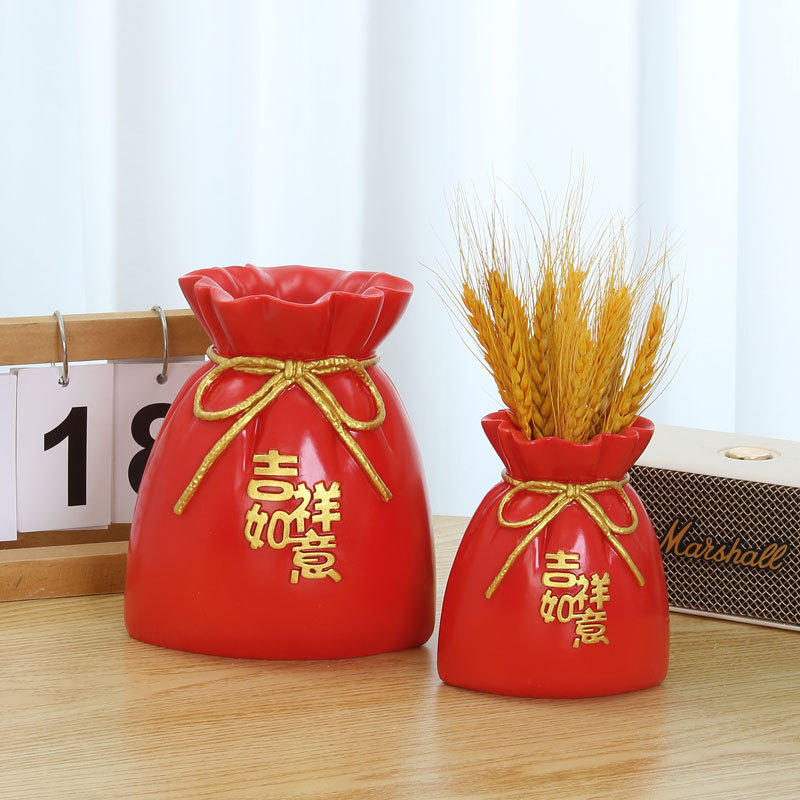 喜庆麦穗红果花瓶吉祥如意福袋干花瓶客厅玄关装饰摆件乔迁小礼品