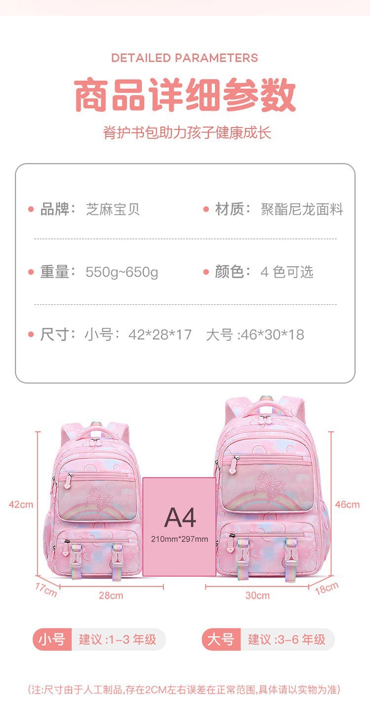 低价促销款1-3-6年级小学生书包女防水轻便减负大容量儿童双肩包