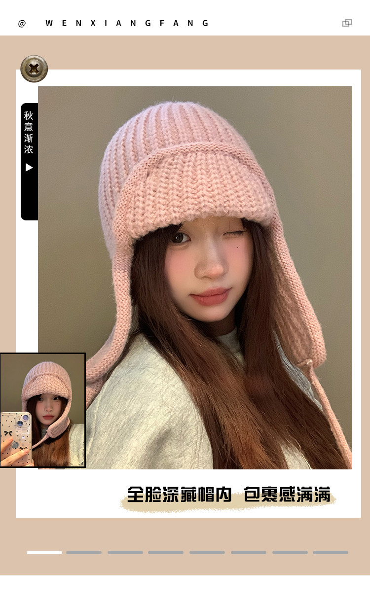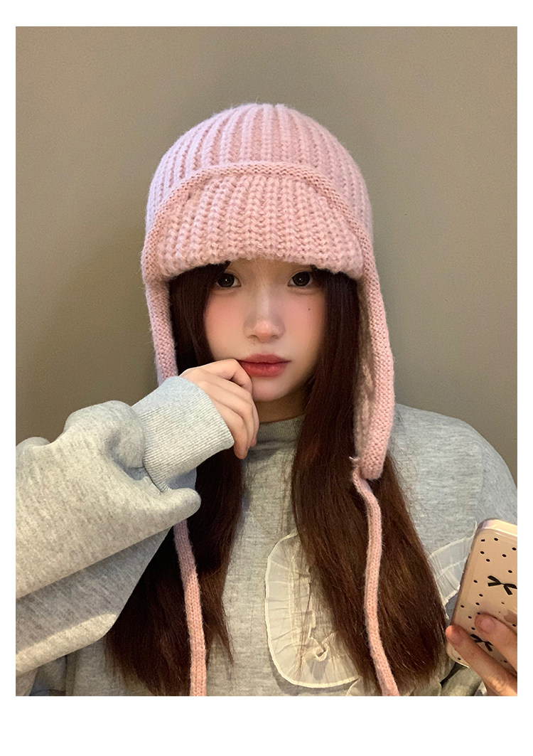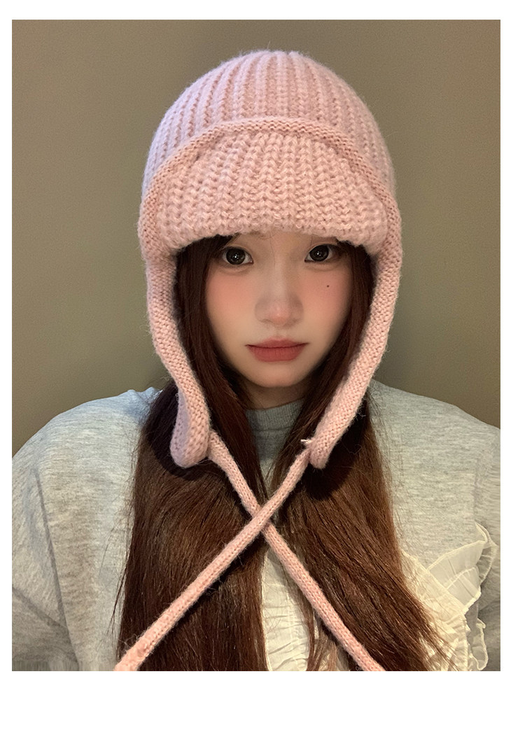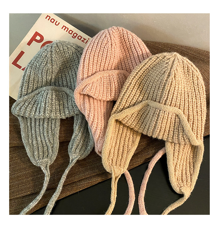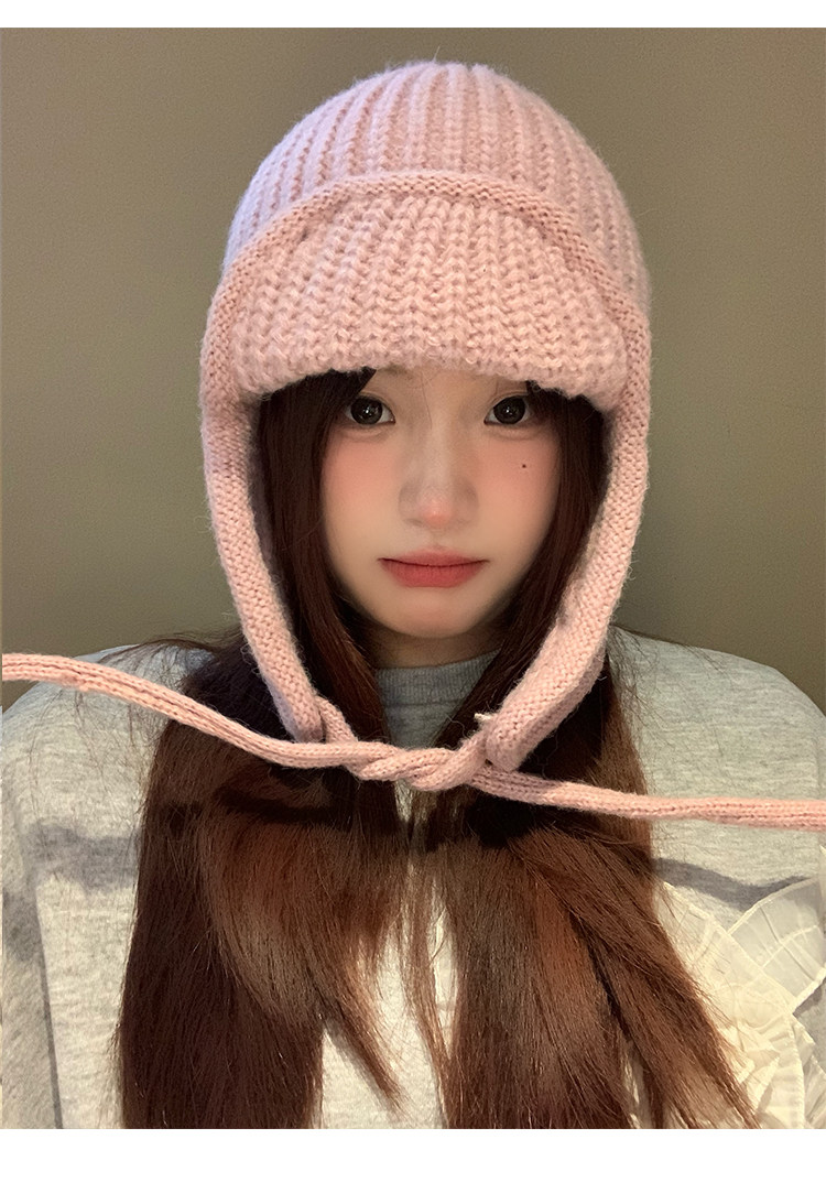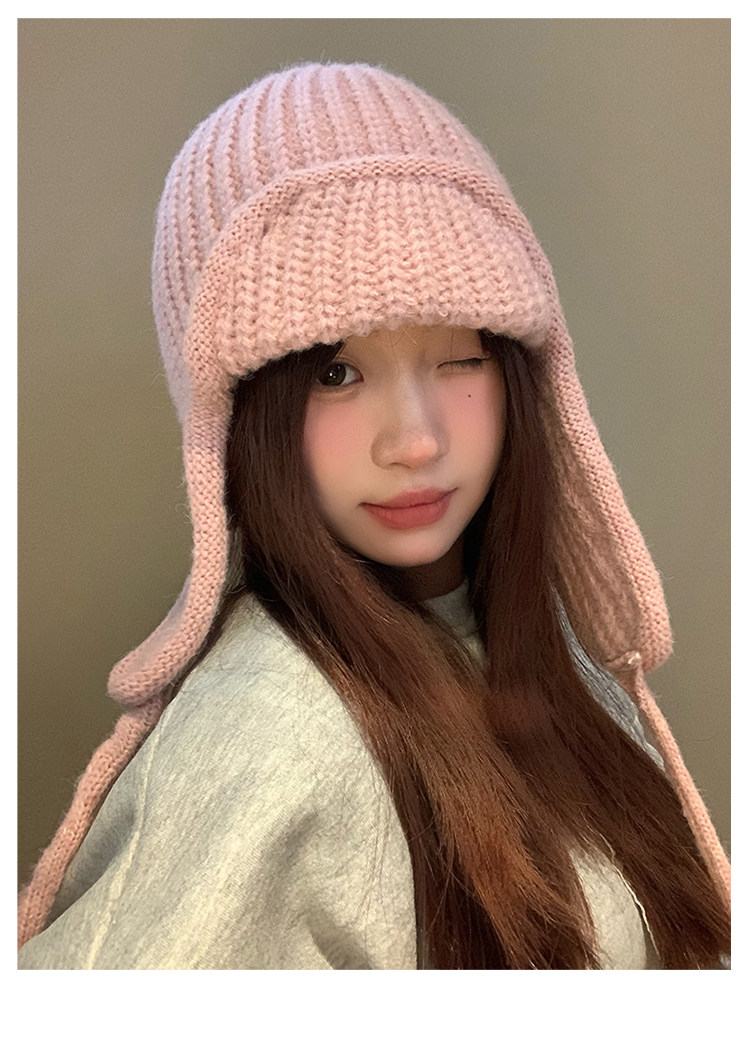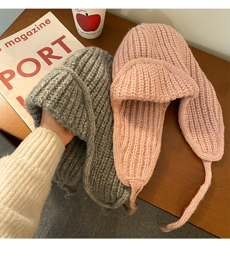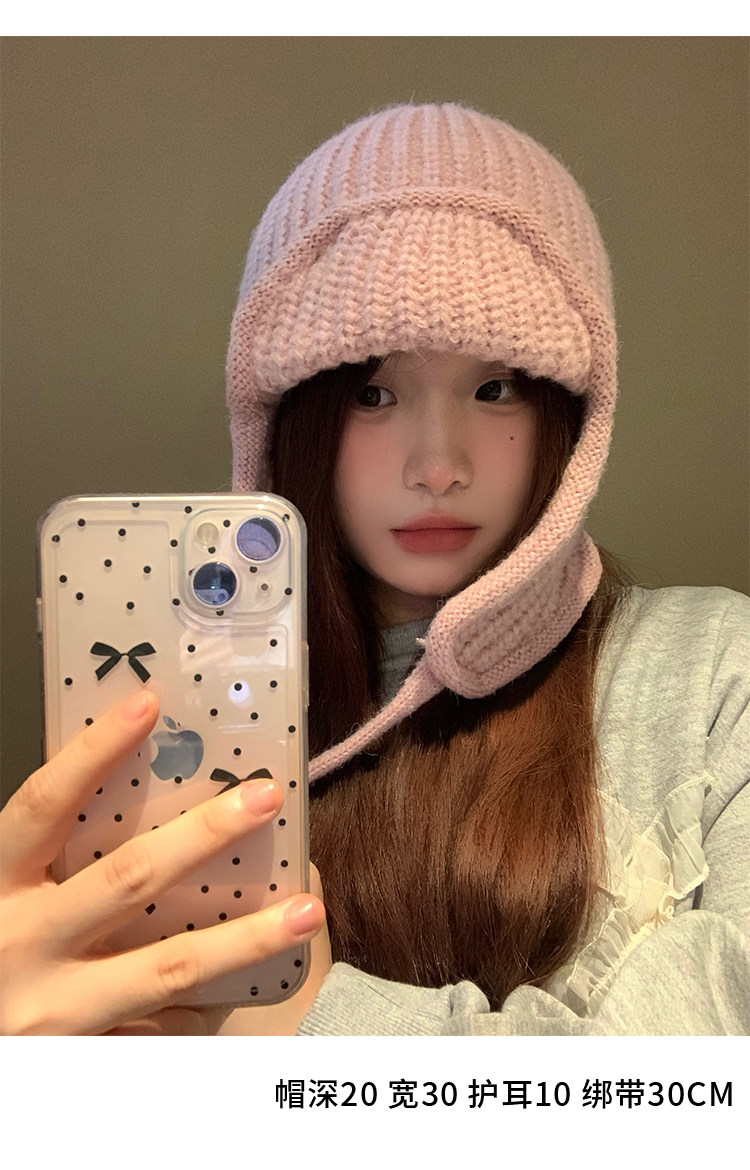 粉色针织毛线帽女2024秋冬护耳飞行帽保暖百搭显脸小滑雪雷锋帽子