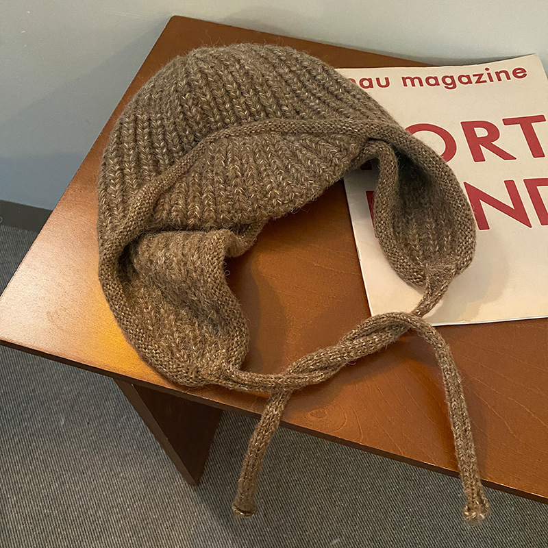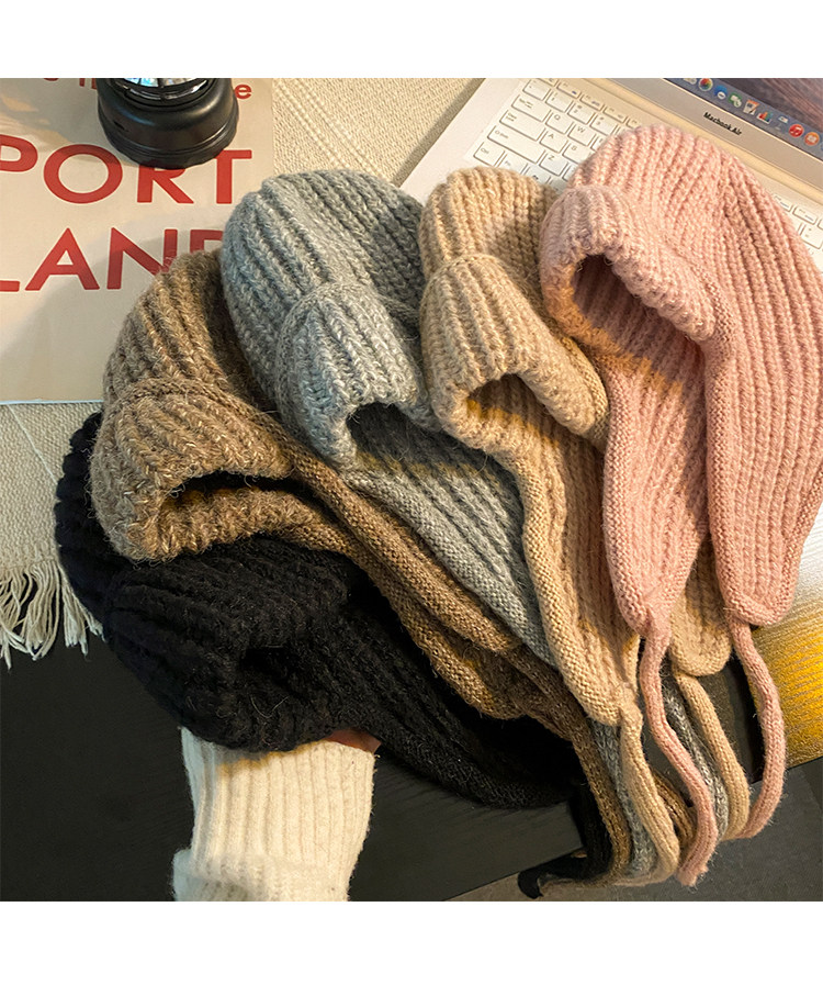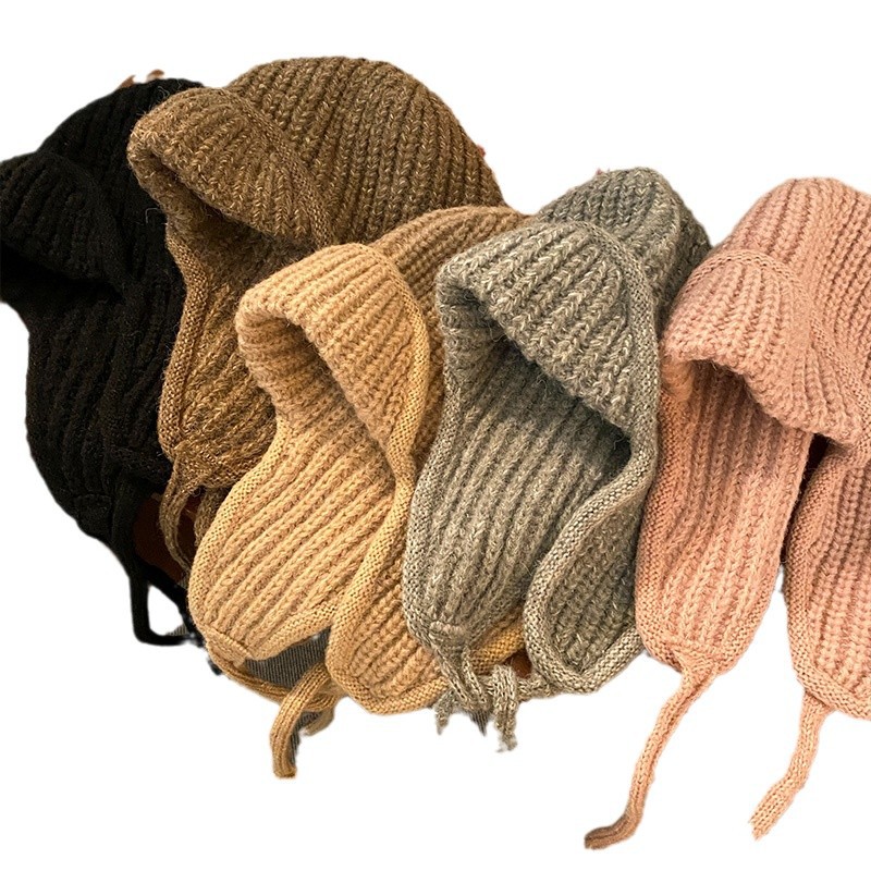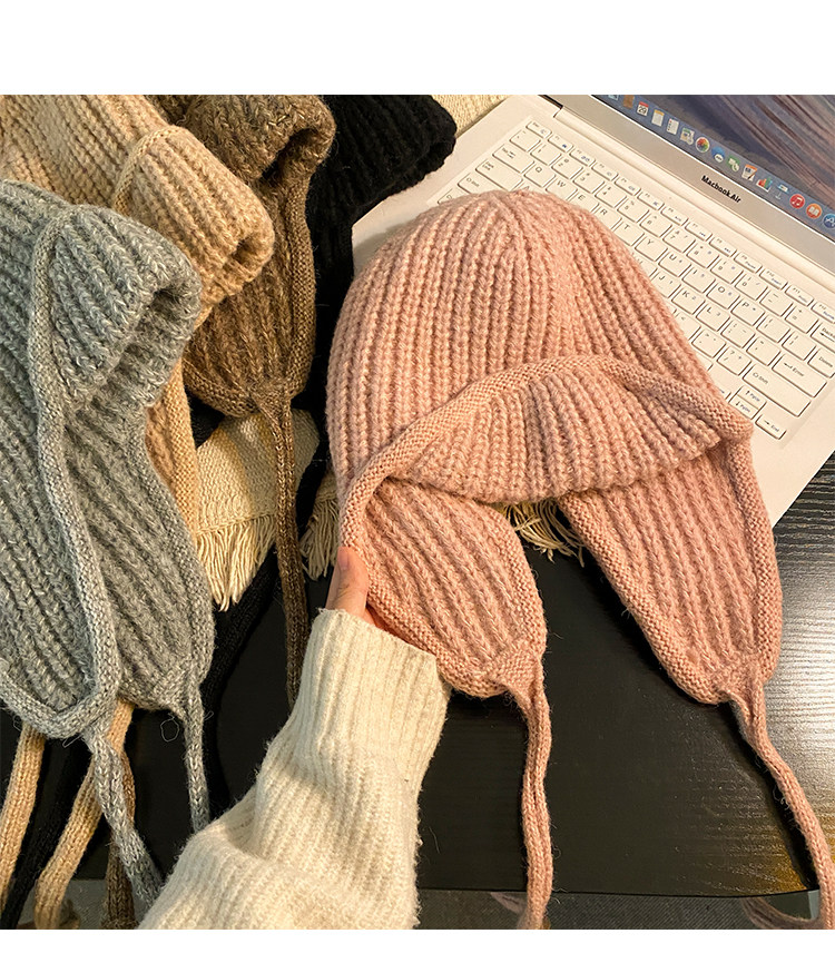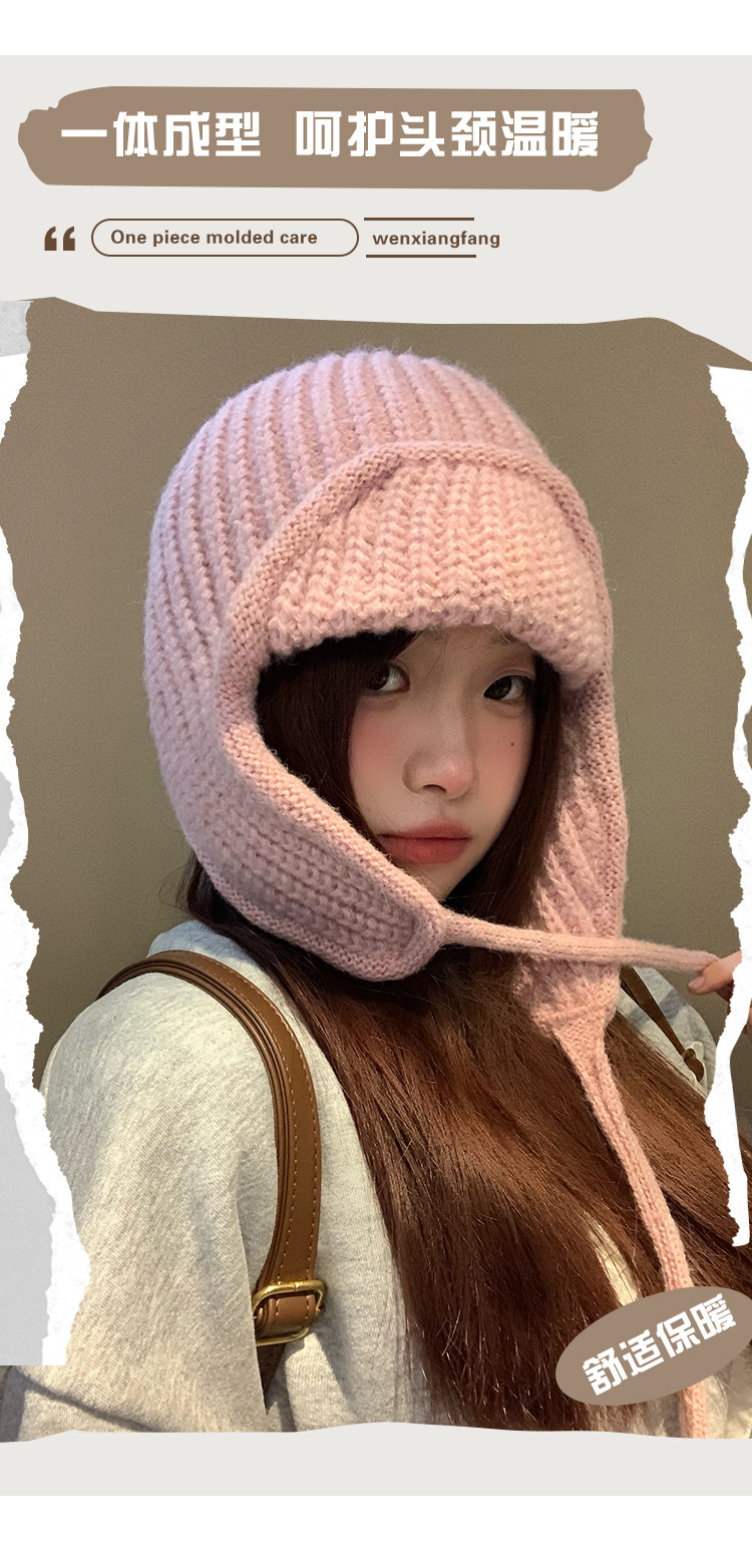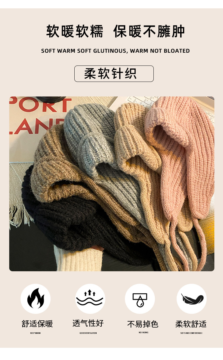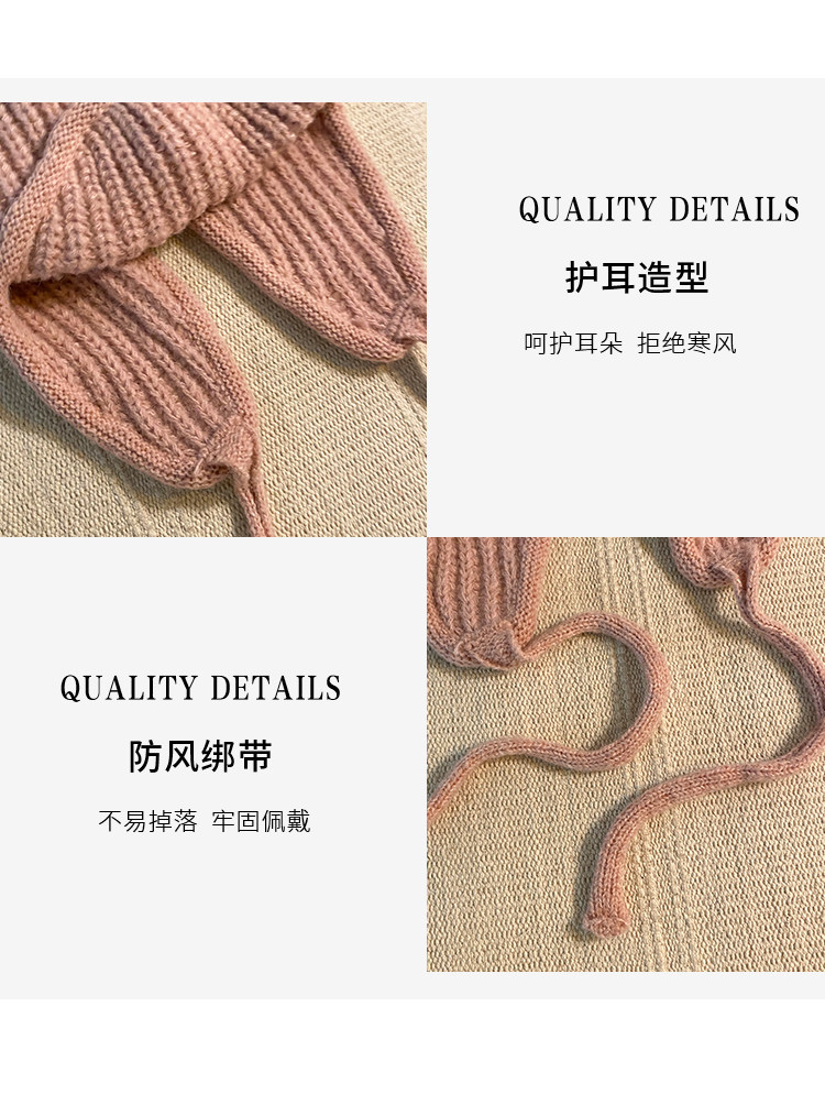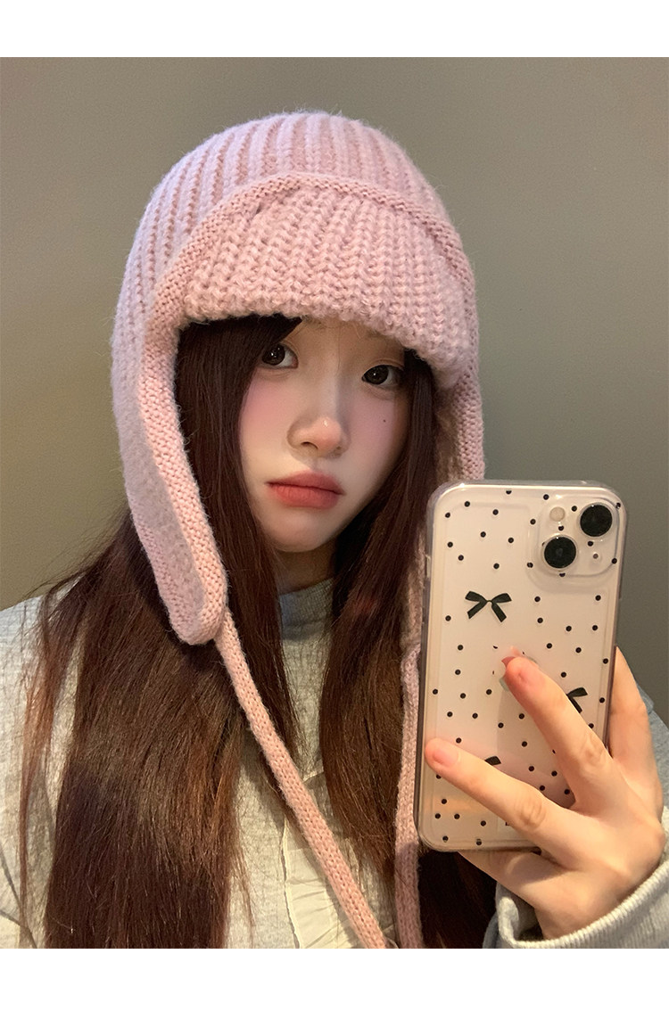 粉色针织毛线帽女2024秋冬护耳飞行帽保暖百搭显脸小滑雪雷锋帽子