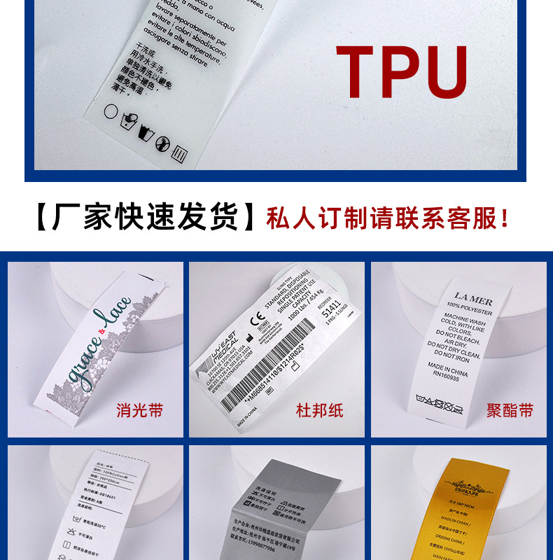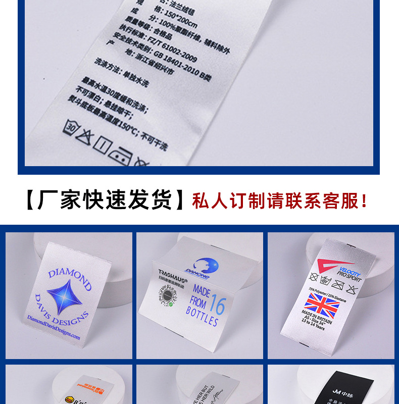工厂定做丝印缎带水洗标柔版服装洗水标印唛服饰水洗唛包邮