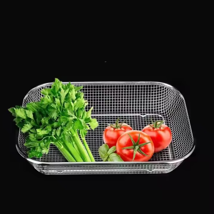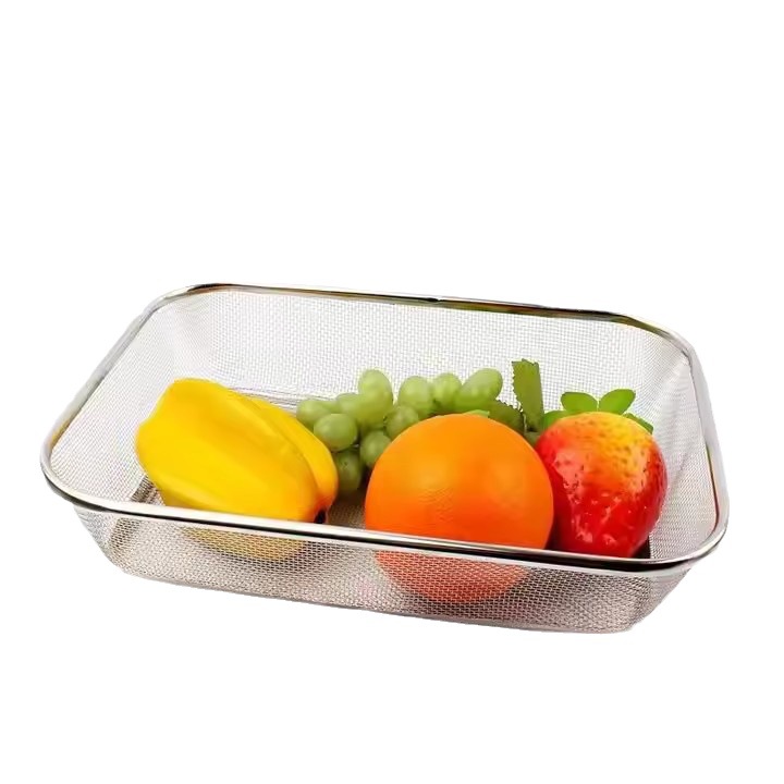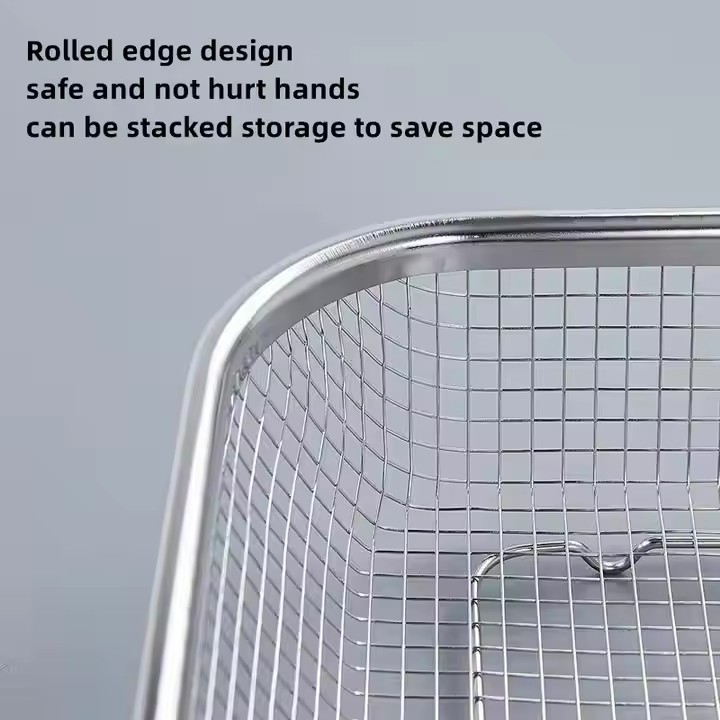 304不锈钢长方形网篮厚钢丝网筛厨房洗菜篮水果滤水篮碗筷沥水篮