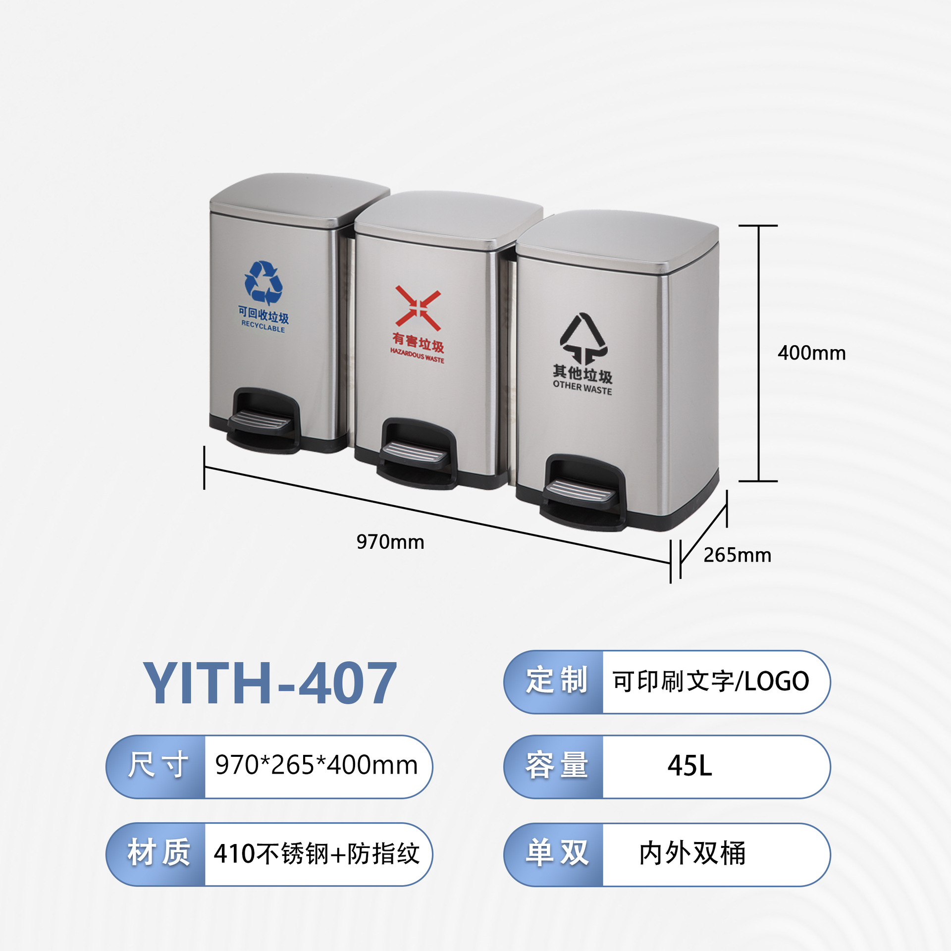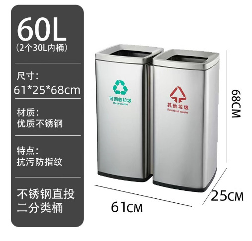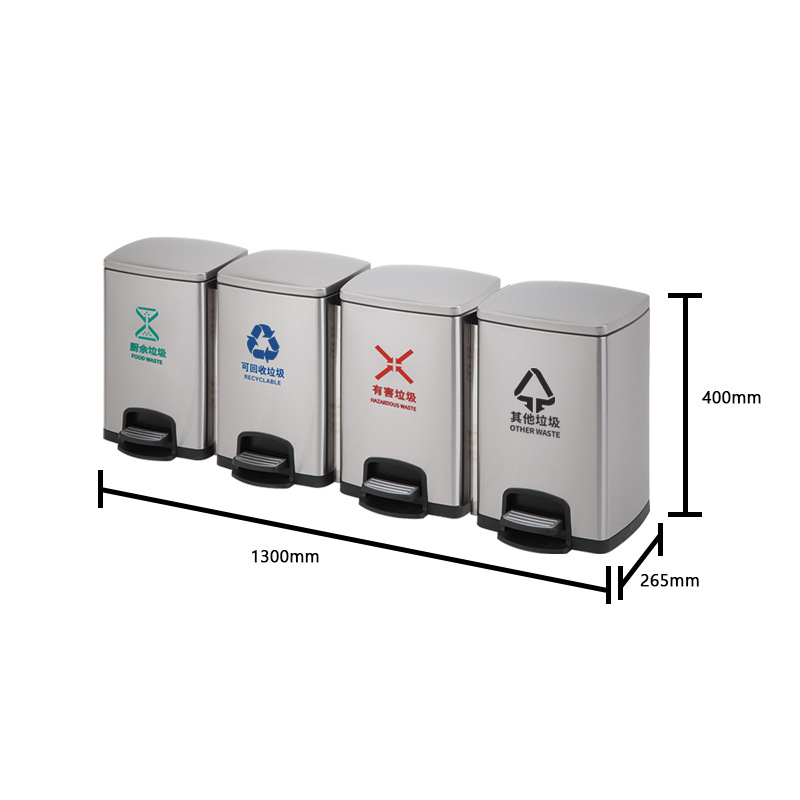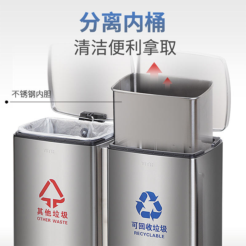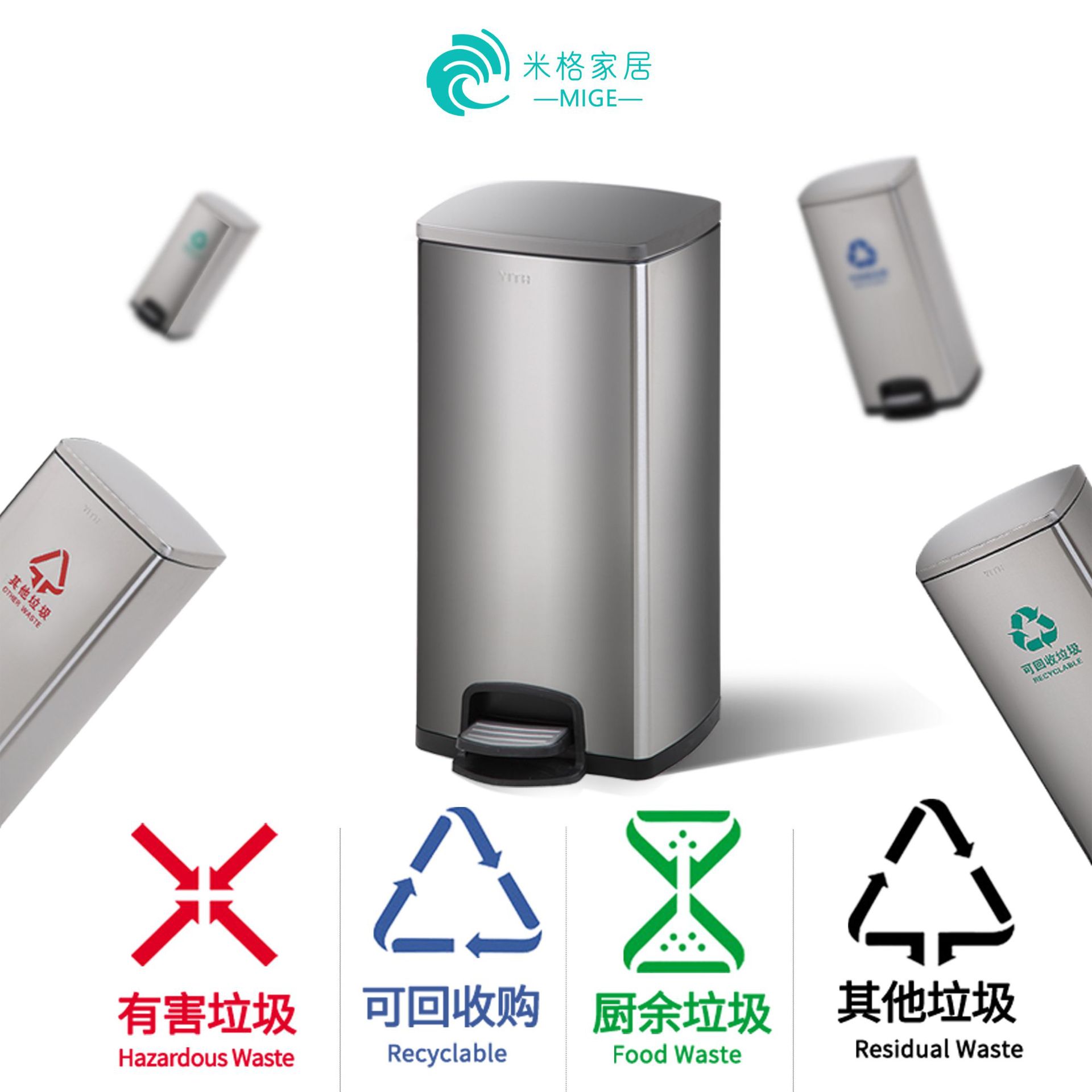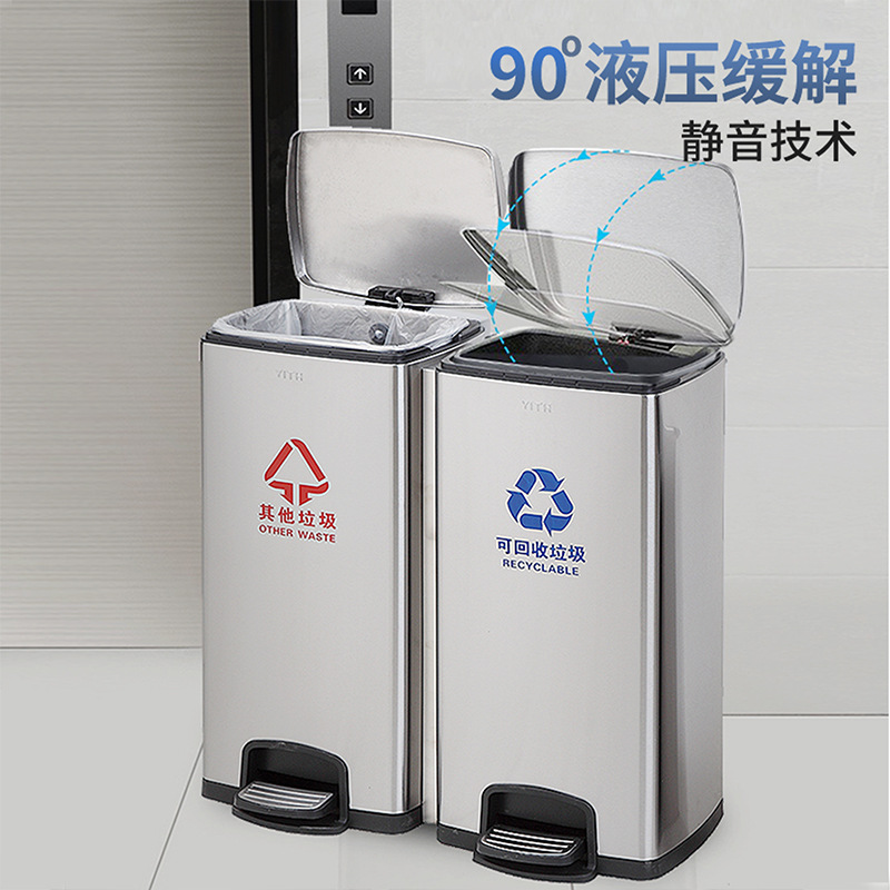 佛山酒店不锈钢脚踩式垃圾桶商用办公室垃圾箱多分类款式垃圾筒