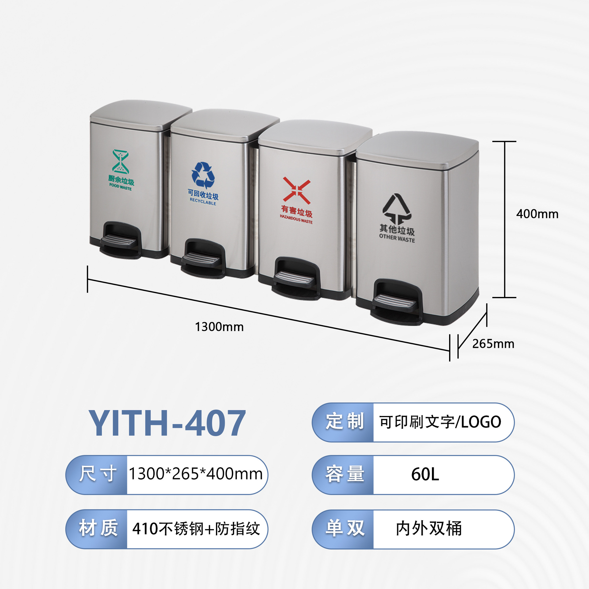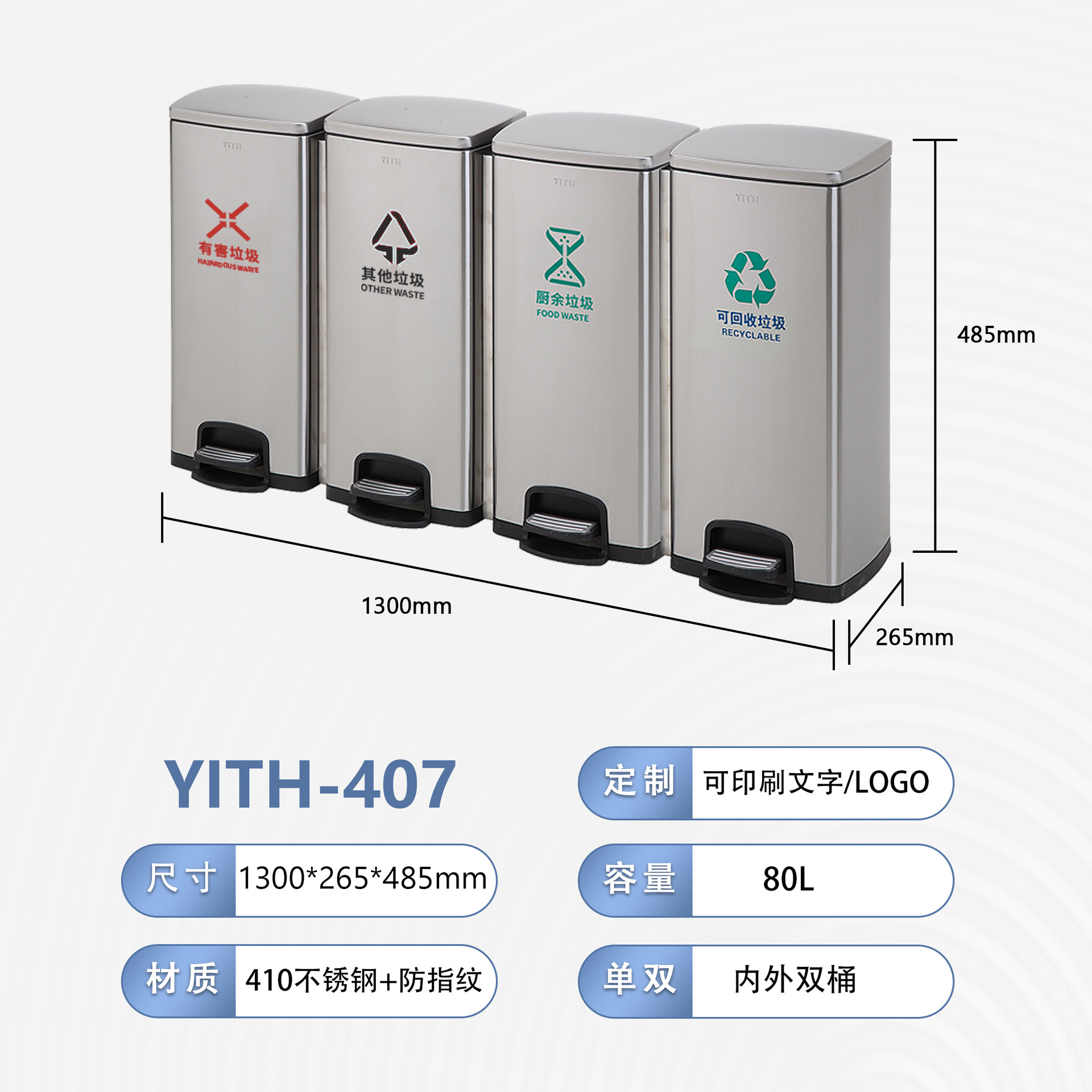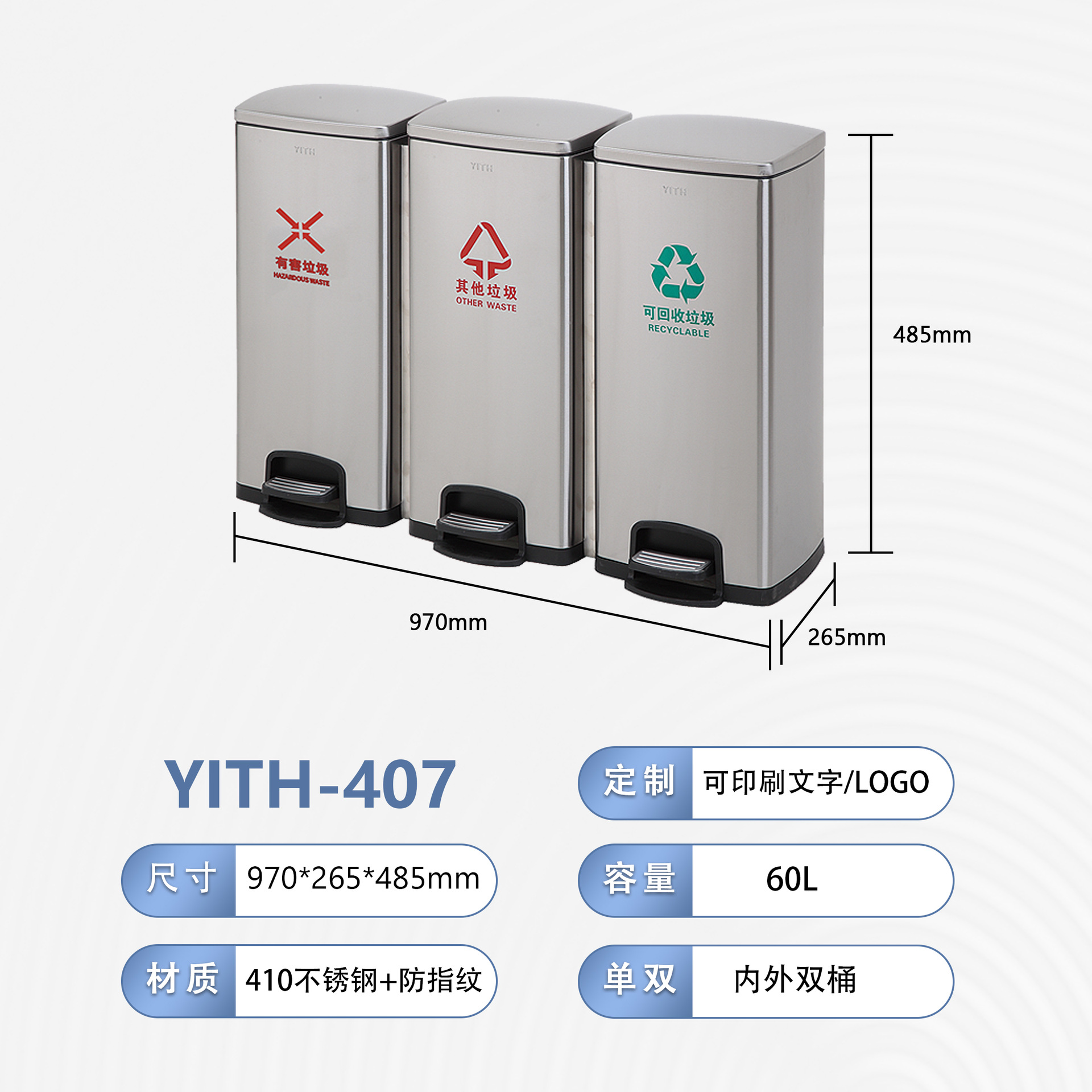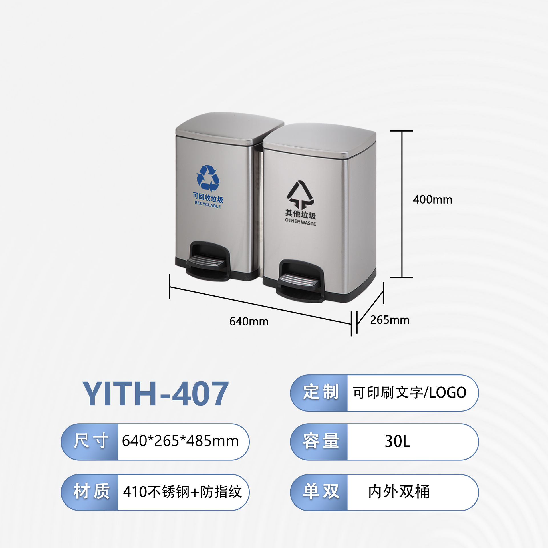 佛山酒店不锈钢脚踩式垃圾桶商用办公室垃圾箱多分类款式垃圾筒