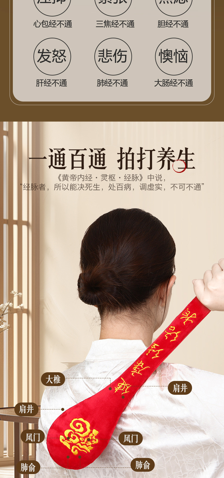 加长经络养生福字锤按摩经络全身拍打器老年健康专用多功能按摩捶